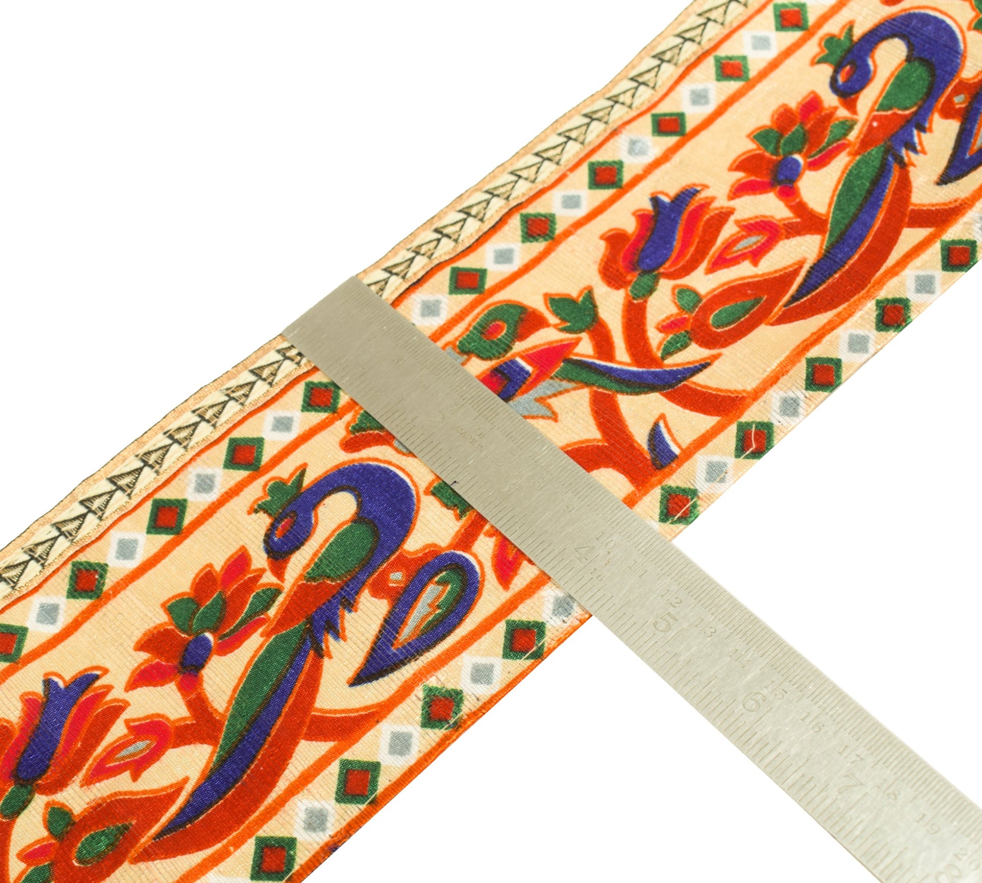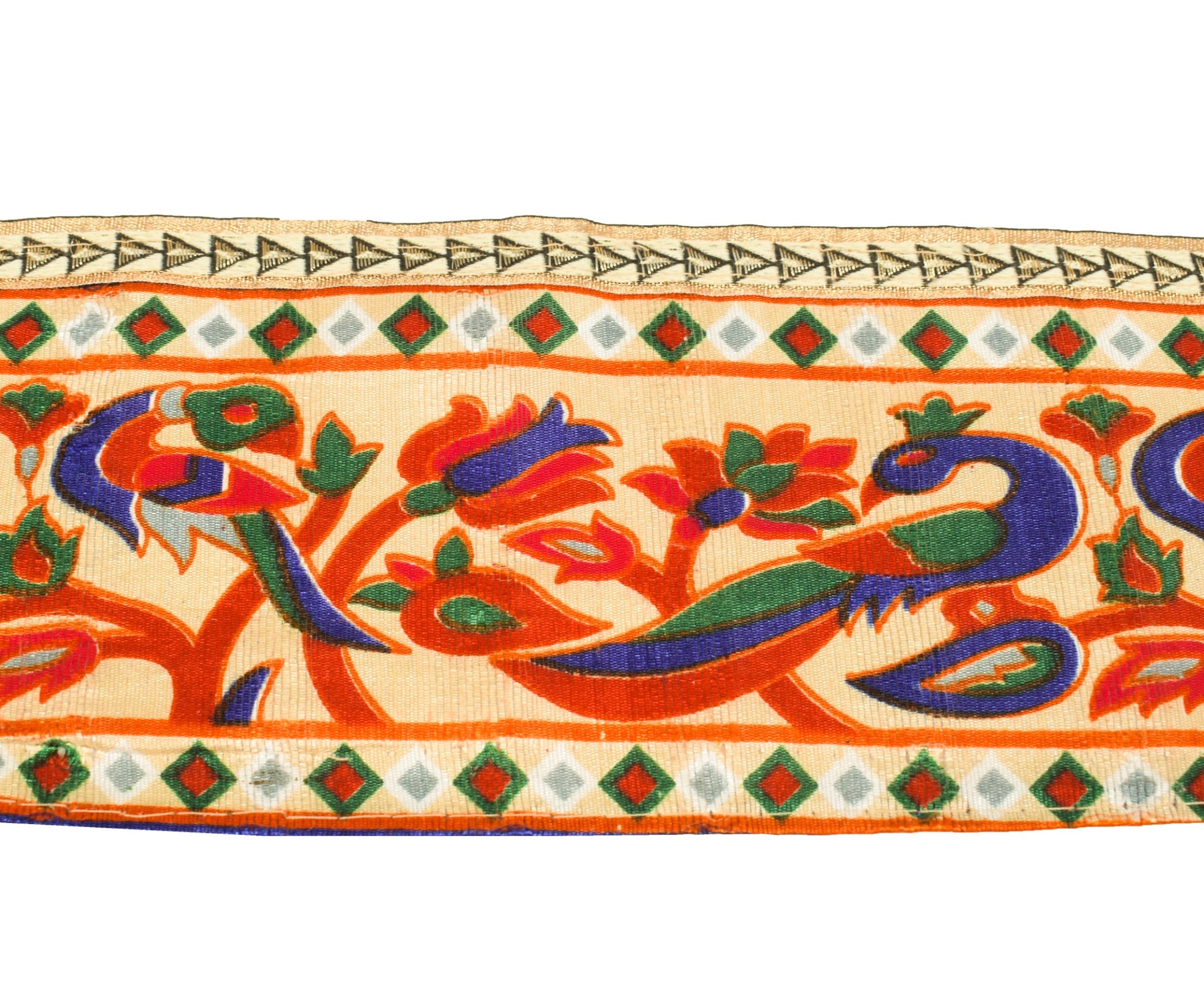 Sushila Vintage Peacock Print Saree Border Art Silk Craft SewingTrim Lace Ribbon