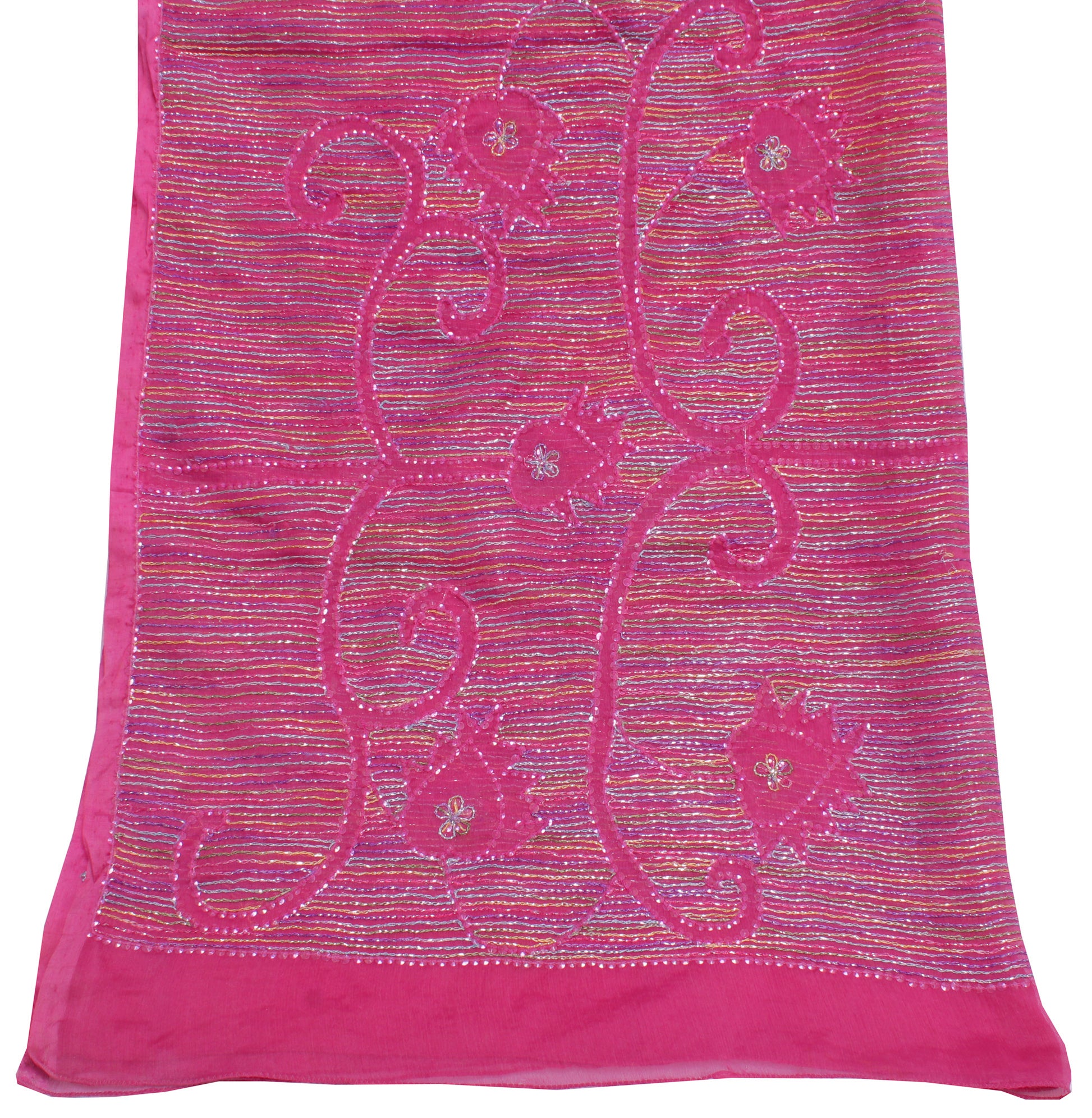 Make a lasting impression with this handcrafted Pink Floral Dupatta, Scarf, Indian Long Stole, Veil, or Hijab, ideal for adding a touch of sophistication to any outfit. Made from premium Blend Chiffon Silk, this piece features intricate Sequins Embroidered work, adding a touch of traditional charm to any outfit. The Pink base beautifully complements the delicate Floral detailing, creating a truly timeless accessory.