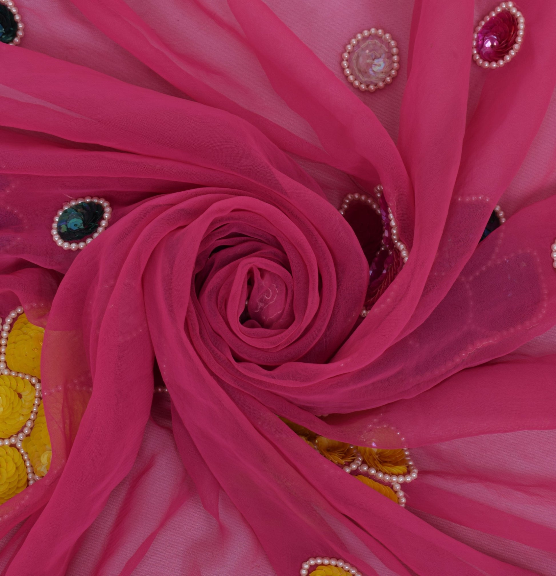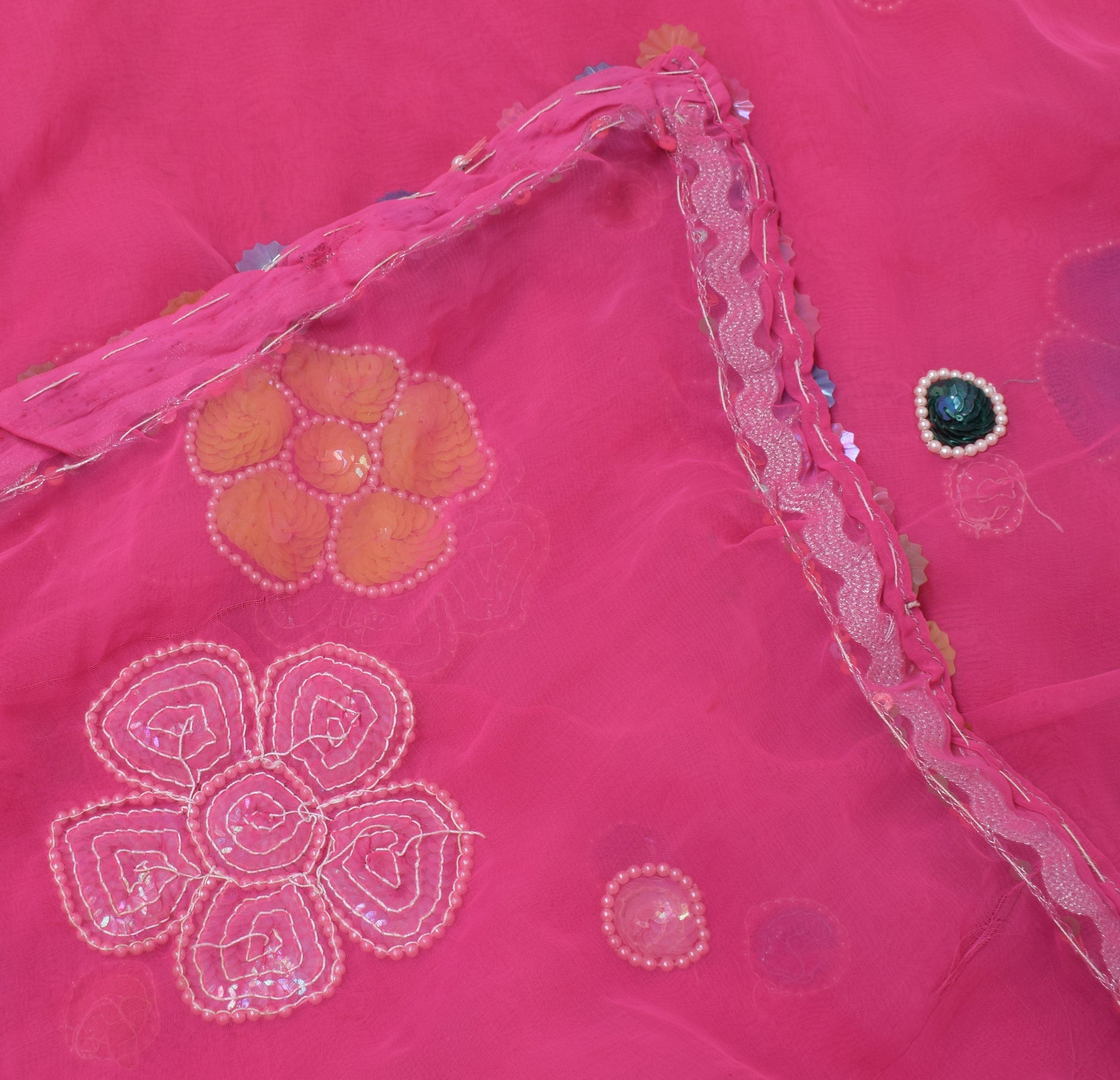 Elevate your style with this intricately crafted Pink Floral Dupatta, Scarf, Indian Long Stole, Veil, or Hijab, perfect for special occasions and everyday elegance. Made from premium Blend Georgette Silk, this piece features intricate Sequins Embroidered work, adding a touch of traditional charm to any outfit. The Pink base beautifully complements the delicate Floral detailing, creating a truly timeless accessory.