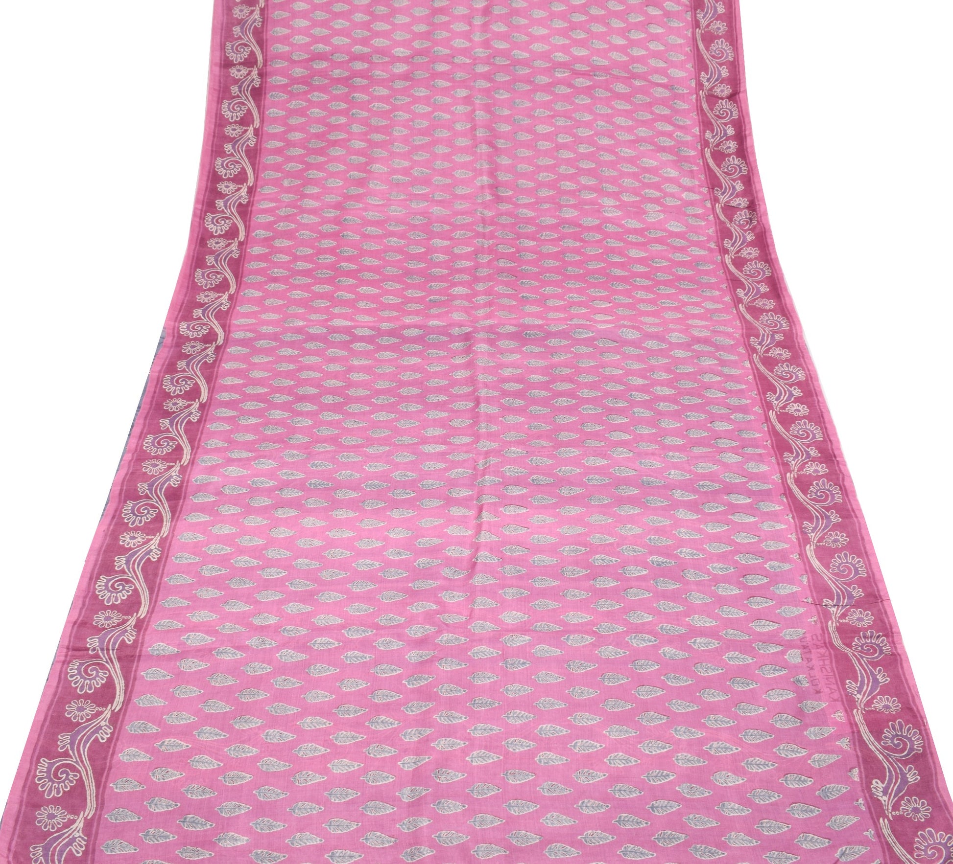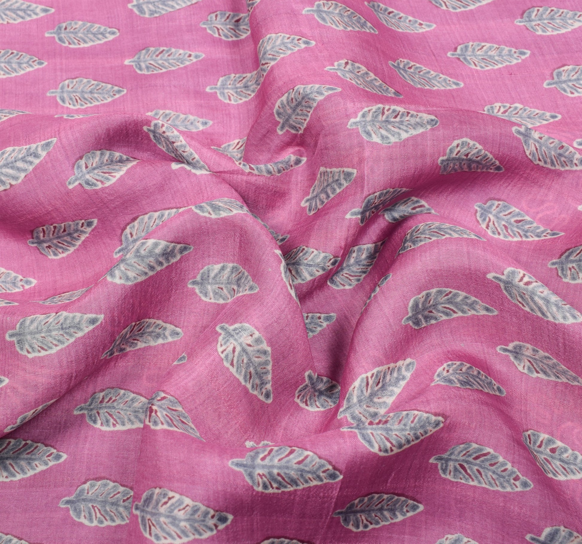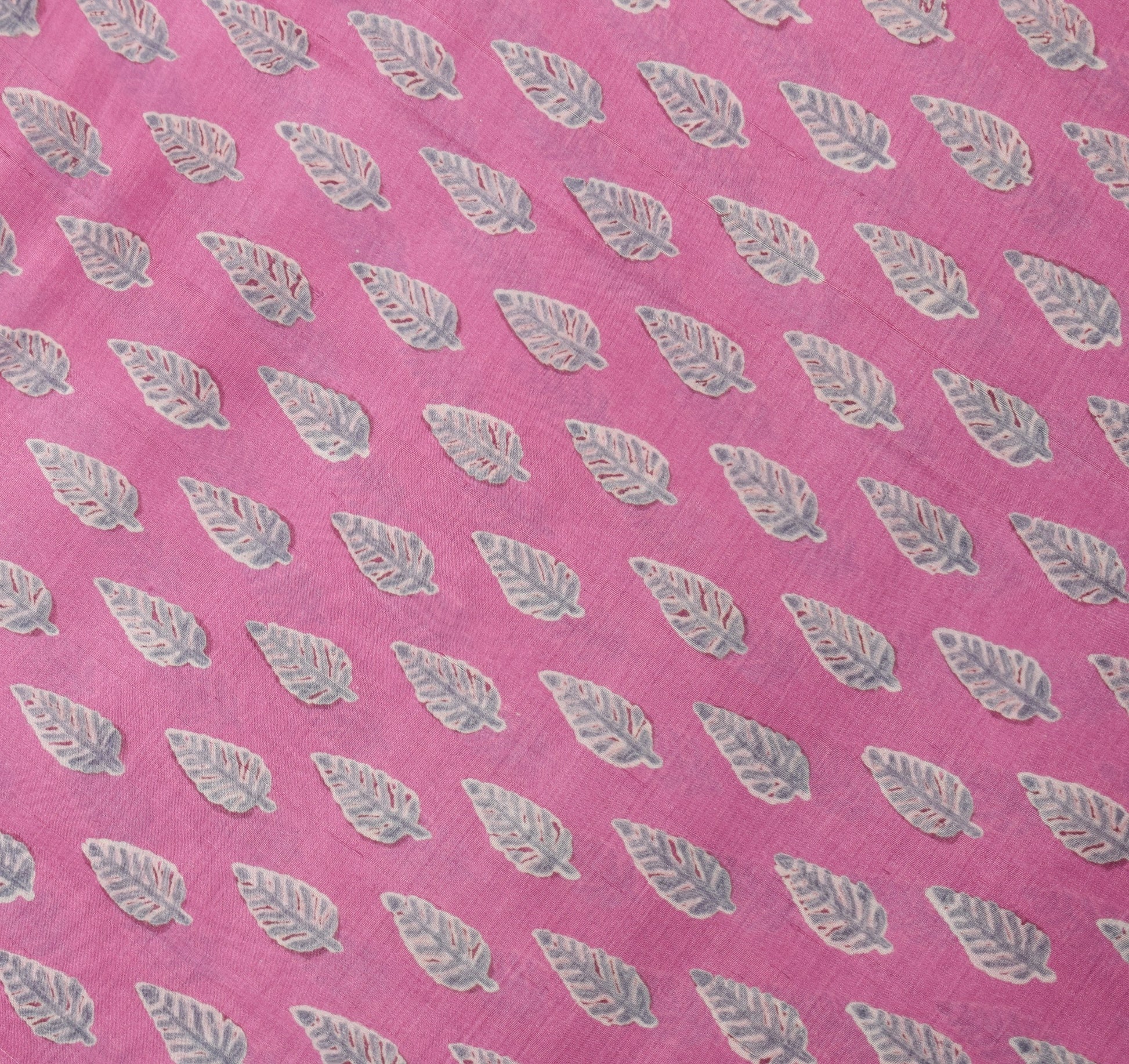 Sushila Vintage Pink Gray Saree 100% Pure Silk Leaves Printed Soft Craft Fabric