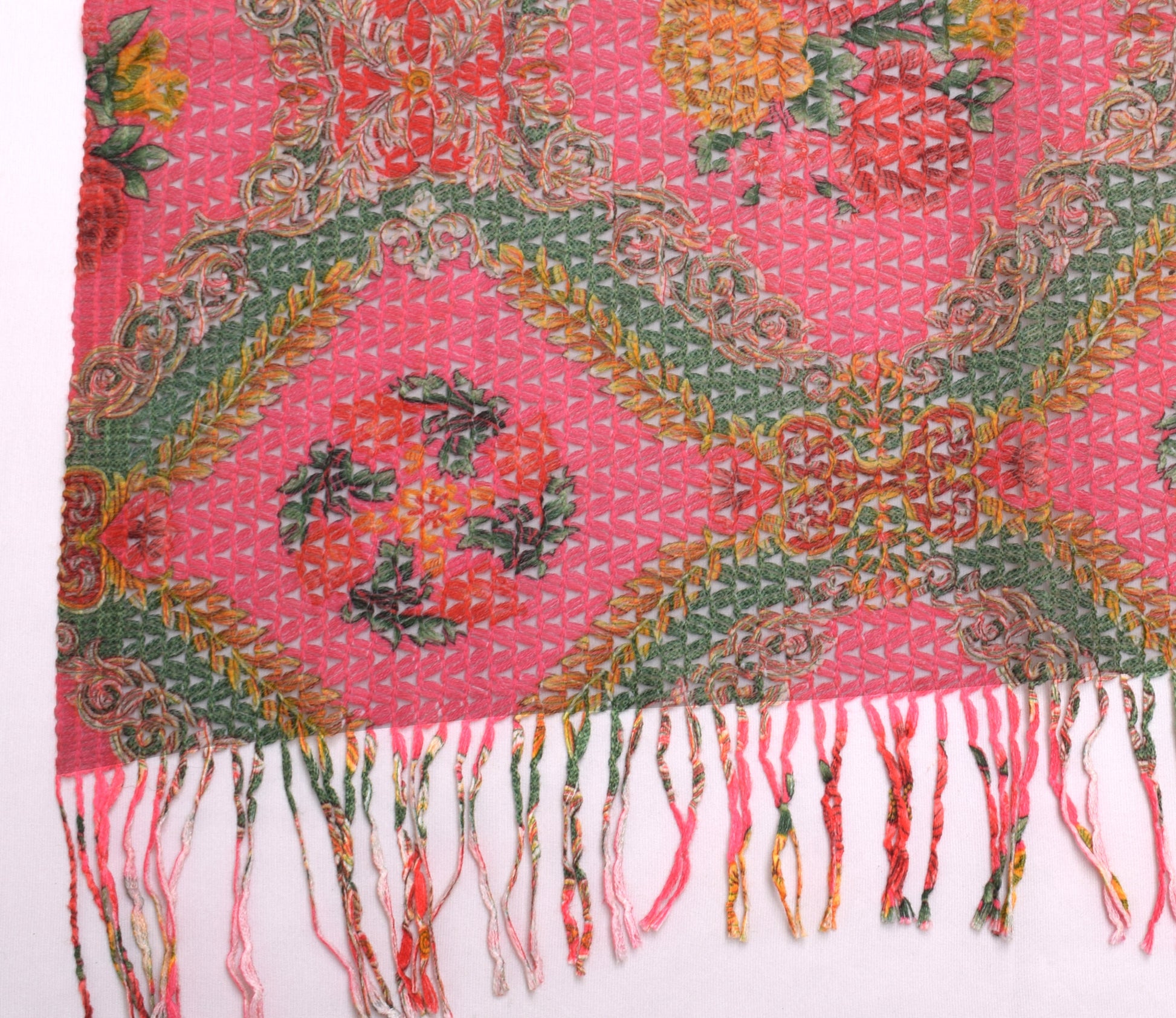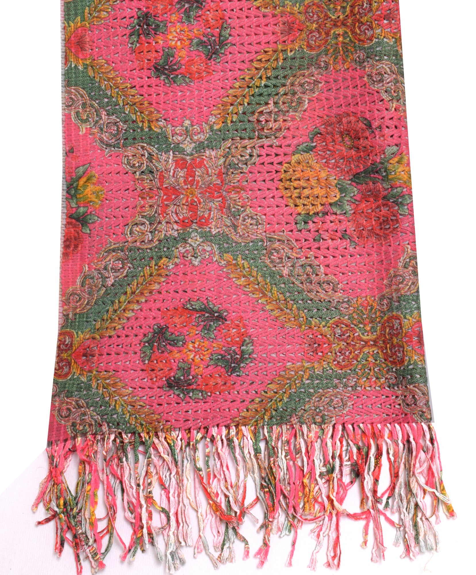 Sushila Vintage Pink Indian Dupatta Blend Woolen Floral Long Stole Veil Scarves