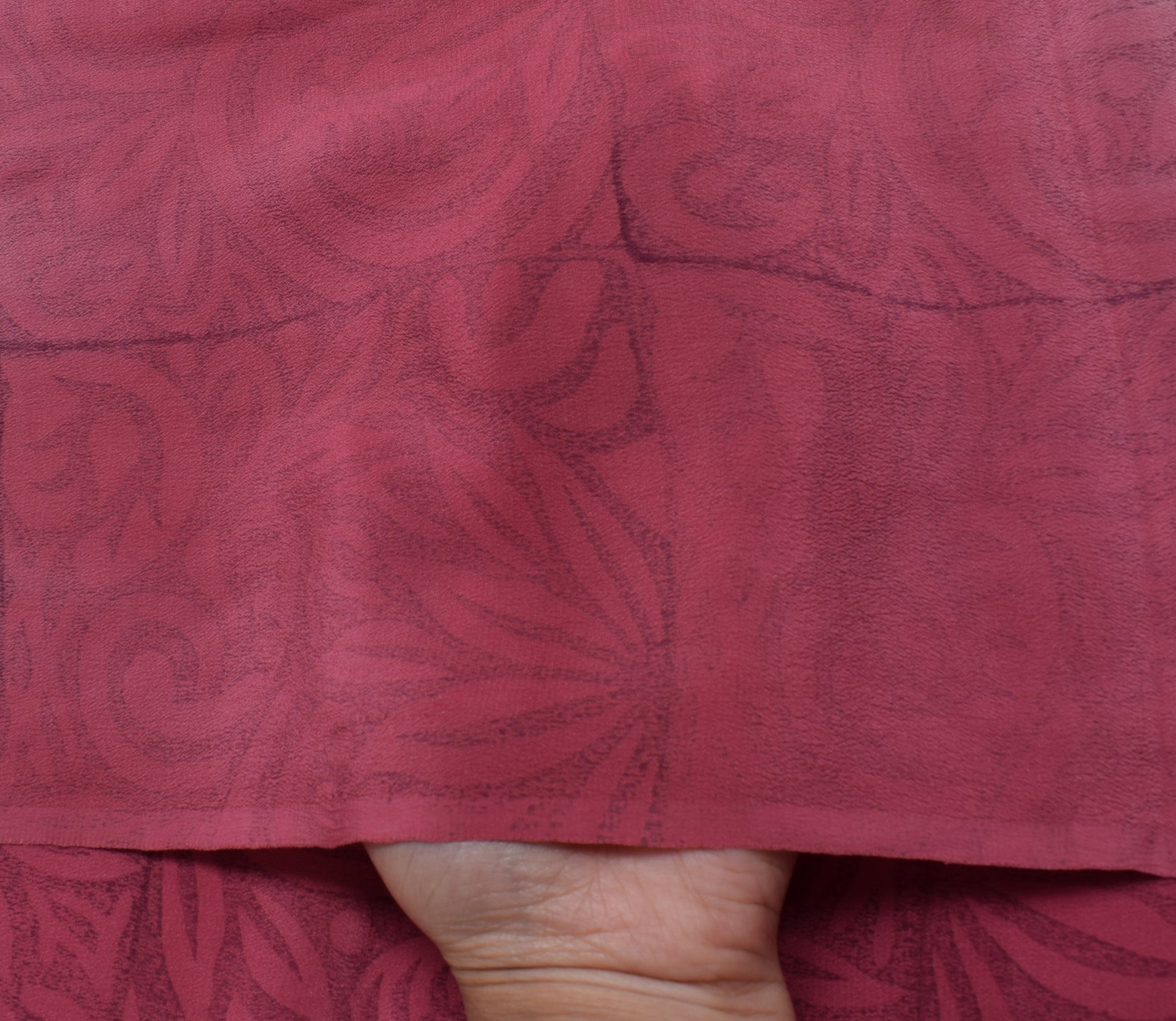 Add classic charm to your collection with this pink 100% pure crepe silk saree, highlighted by its floral motif and fine printed artistry. Crafted from pure, breathable 100% pure crepe silk, this sarI boasts a luxurious drape and enduring appeal. Measuring roughly 192 inch in length and 43 inch in width, it offers versatile styling—whether worn traditionally or repurposed into bespoke dresses, home décor, or creative crafts. Weighing about 331 grams (actual product weight), it falls gracefully, making it ideal for anyone who appreciates the charm of vintage textiles.