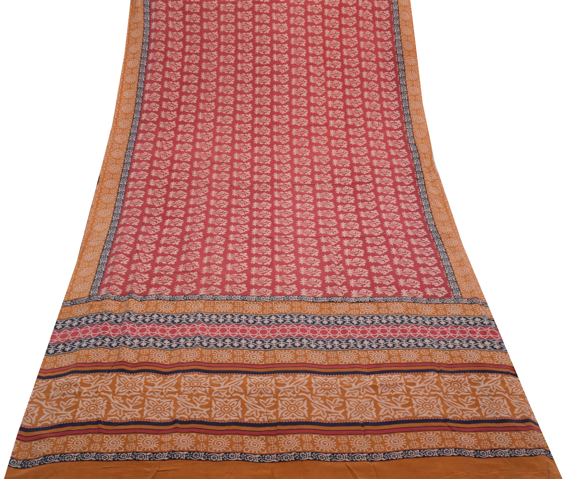 Sushila Vintage Pink Saree 100% Pure Crepe Silk Printed Floral Soft Fabric
