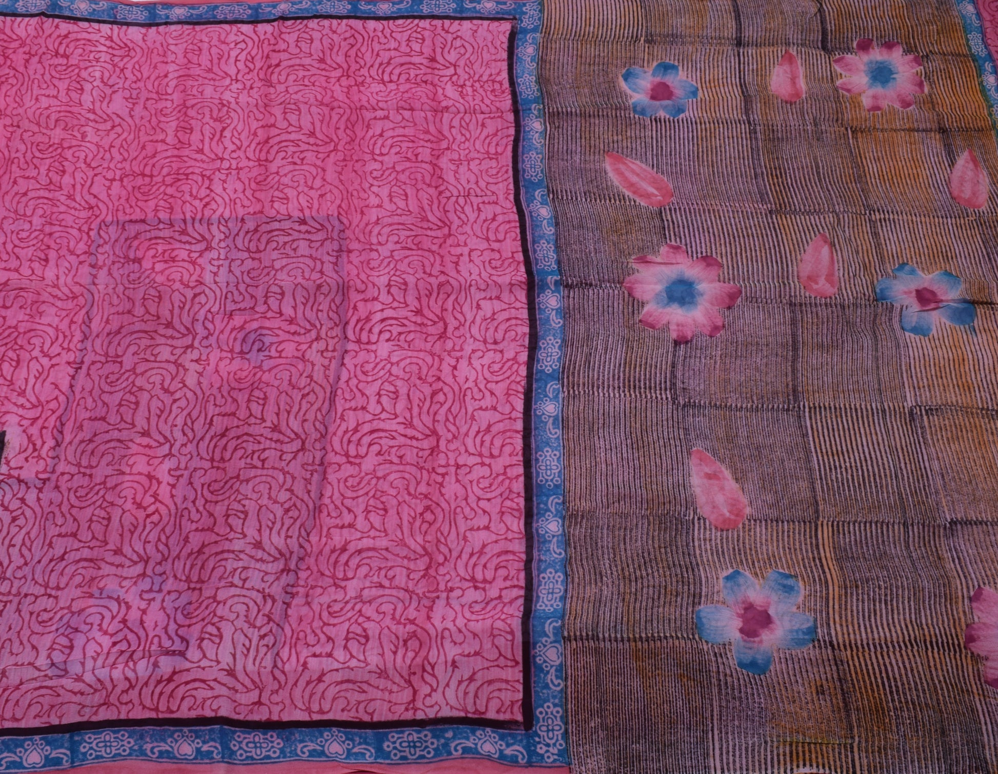 Sushila Vintage Pink Saree 100% Pure Georgette Silk Printed 5 Yard Craft Fabric