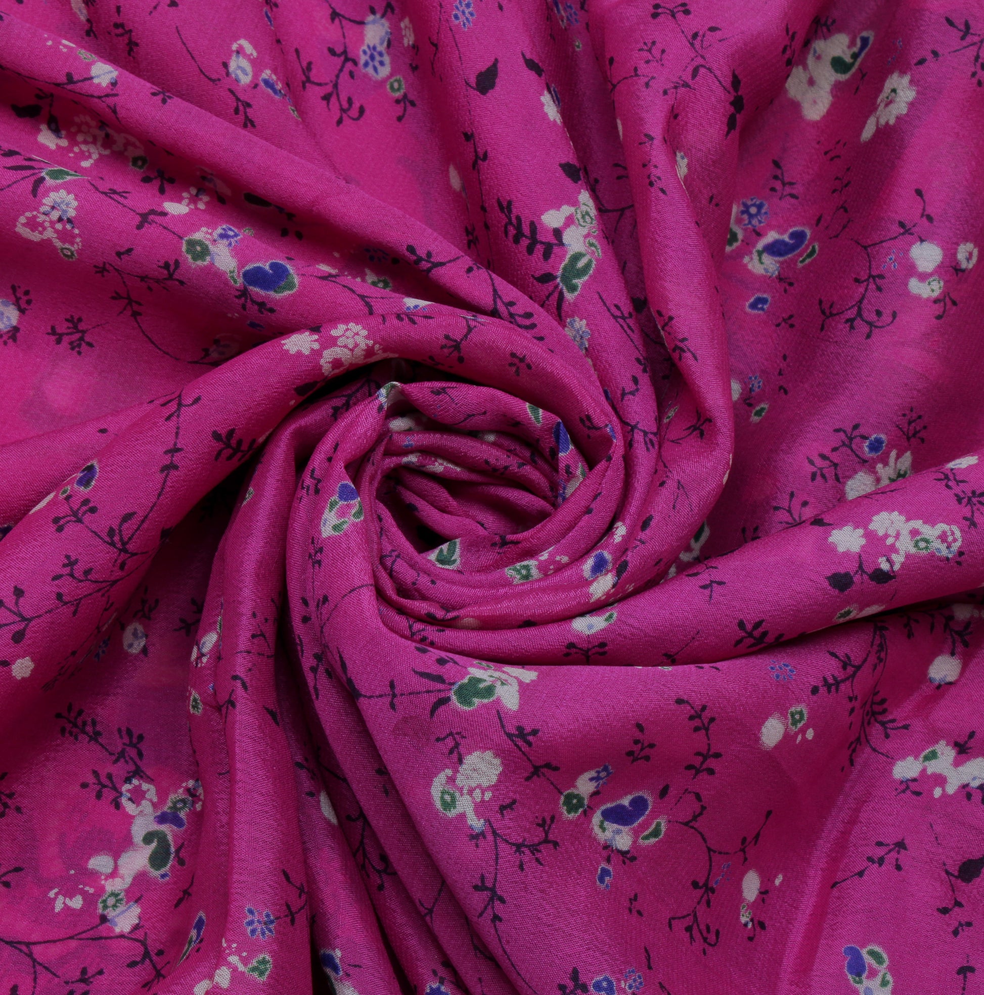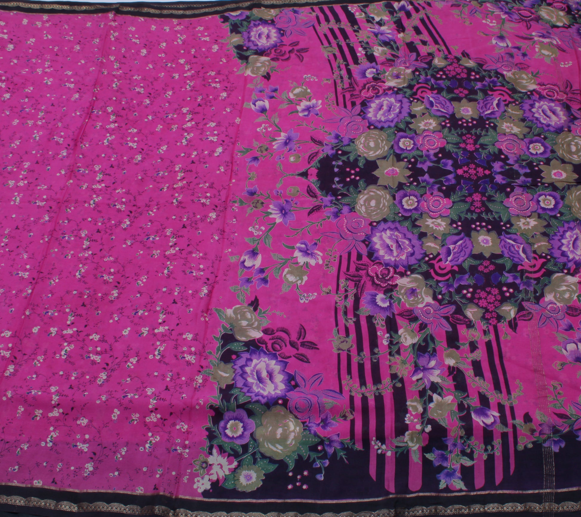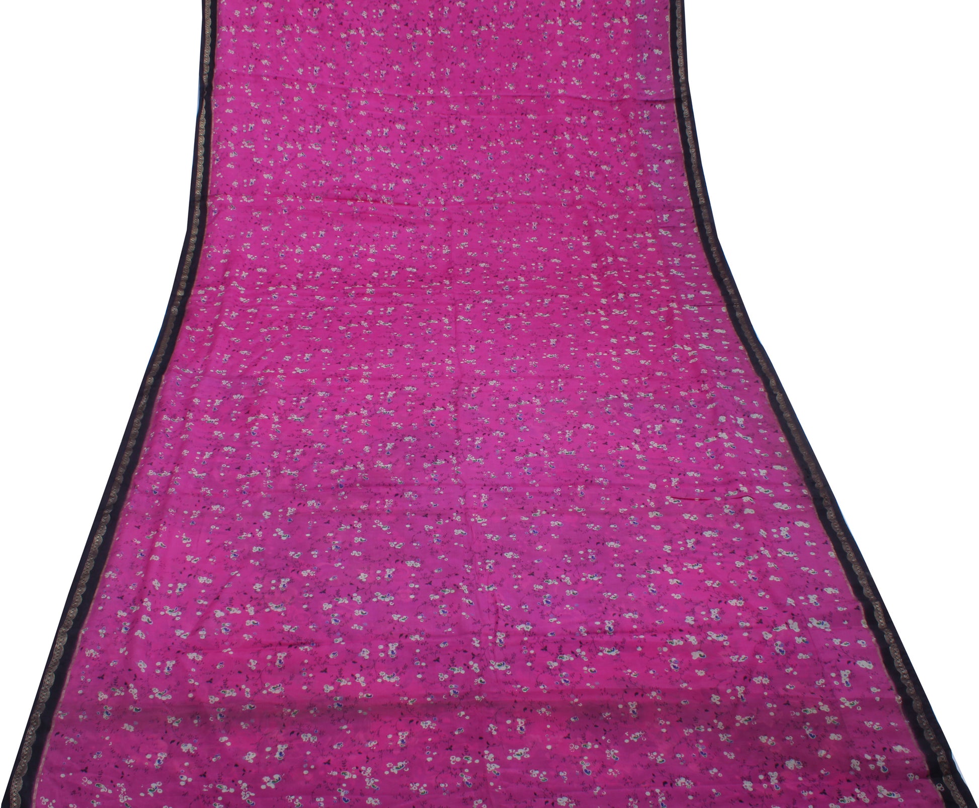 Sushila Vintage Pink Saree 100% Pure Georgette Silk Printed Floral Craft Fabric
