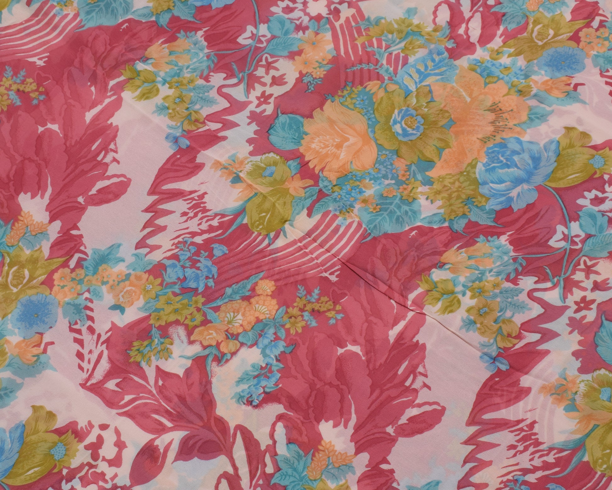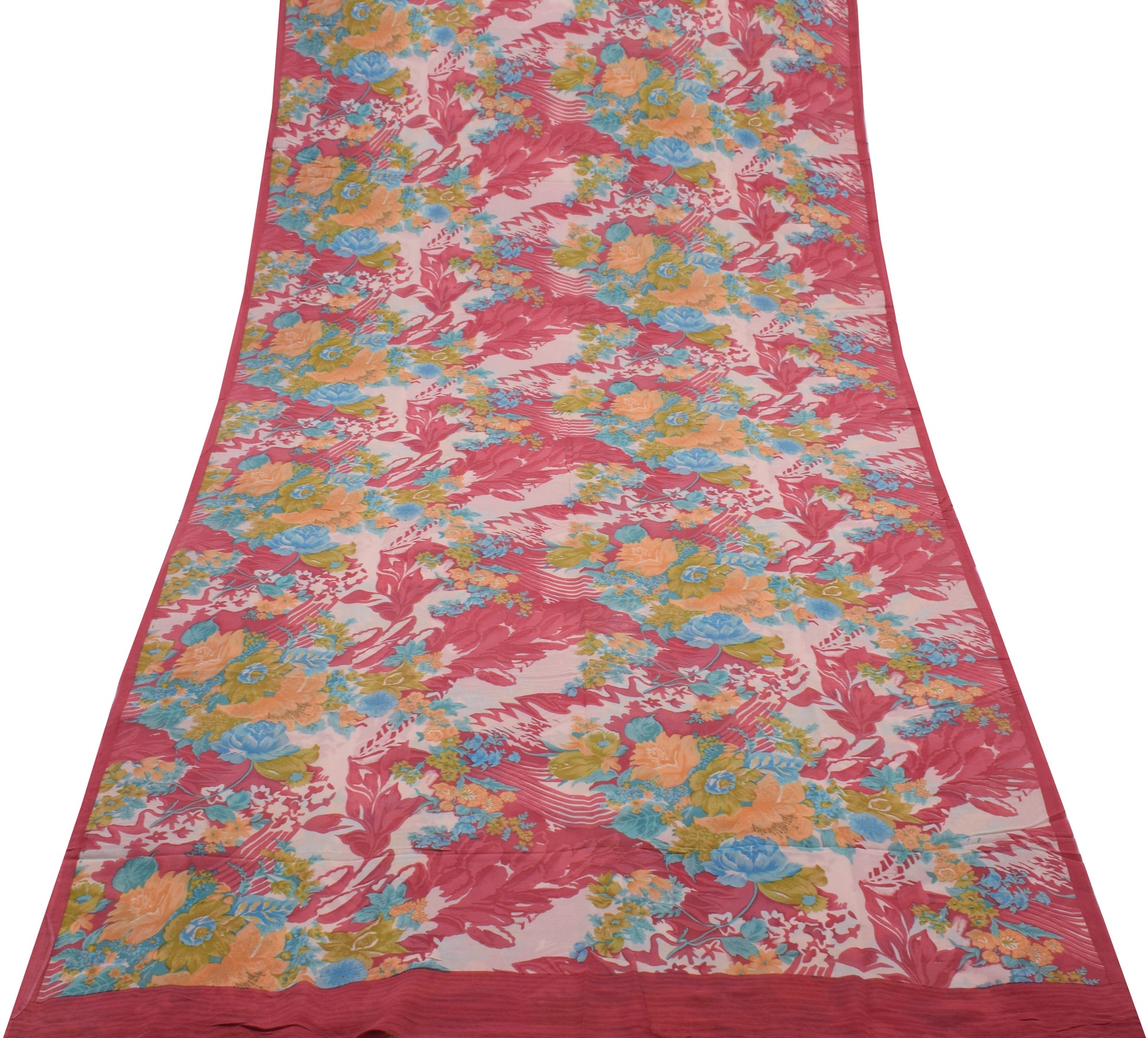 Sushila Vintage Pink Saree 100% Pure Georgette Silk Printed Floral Craft Fabric