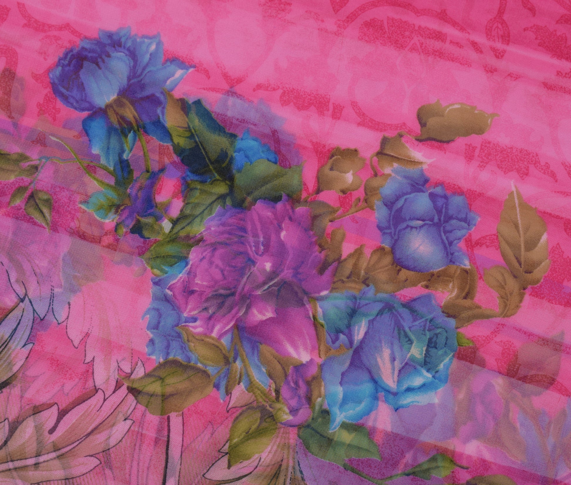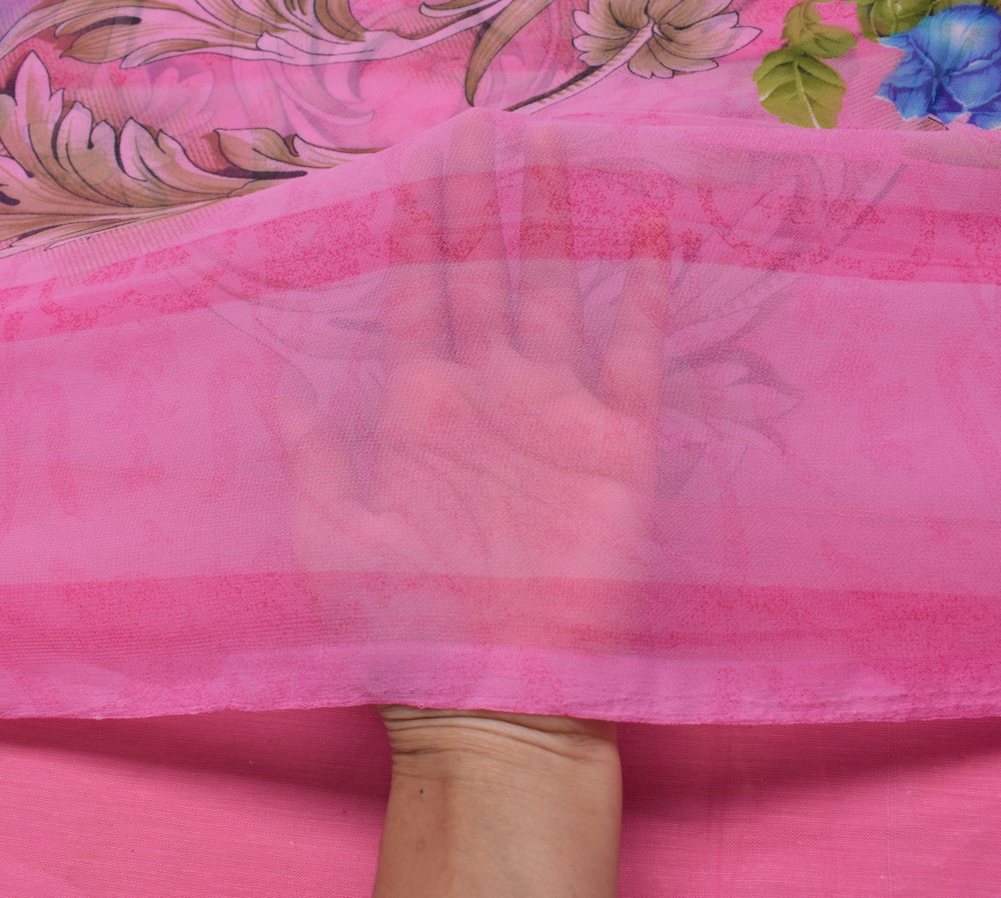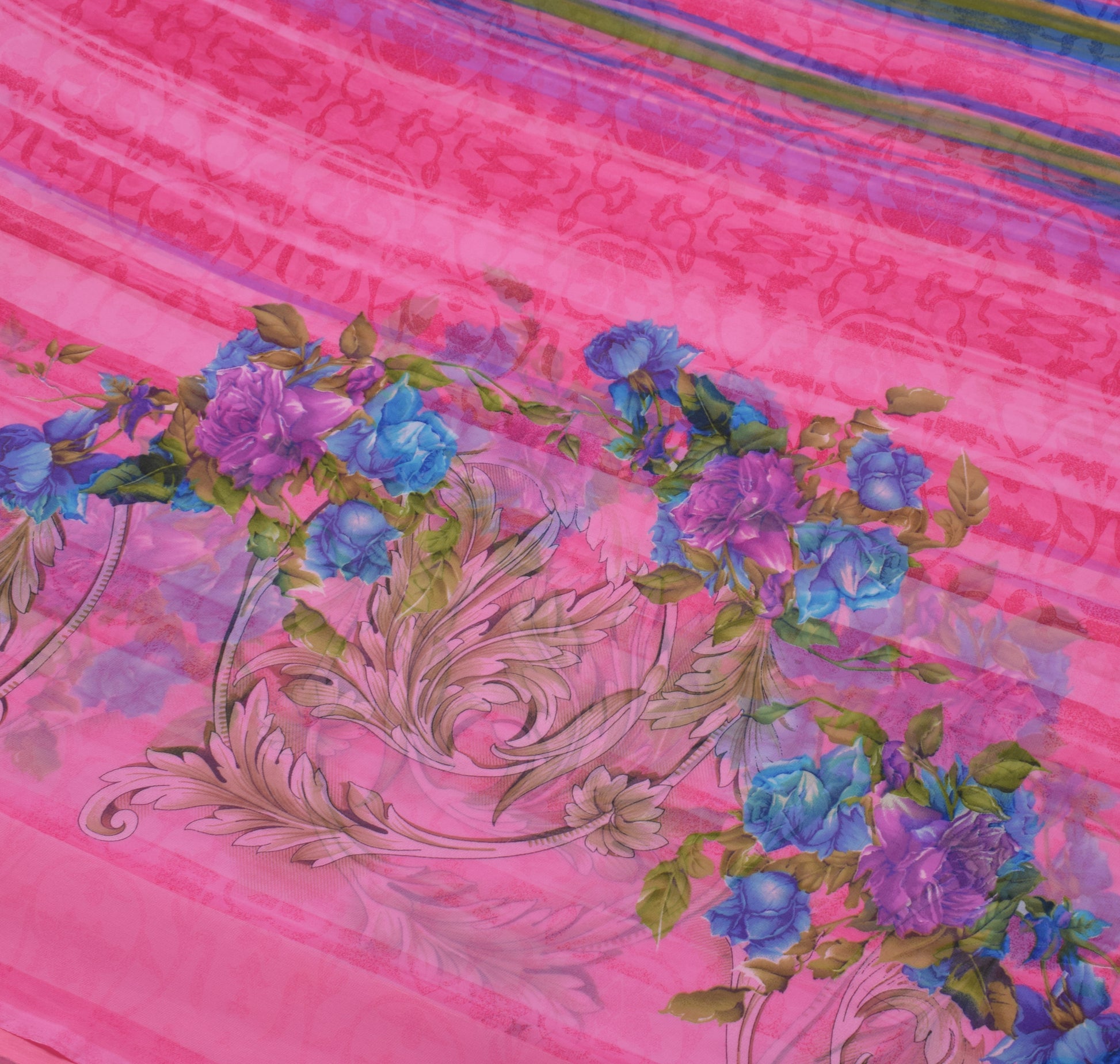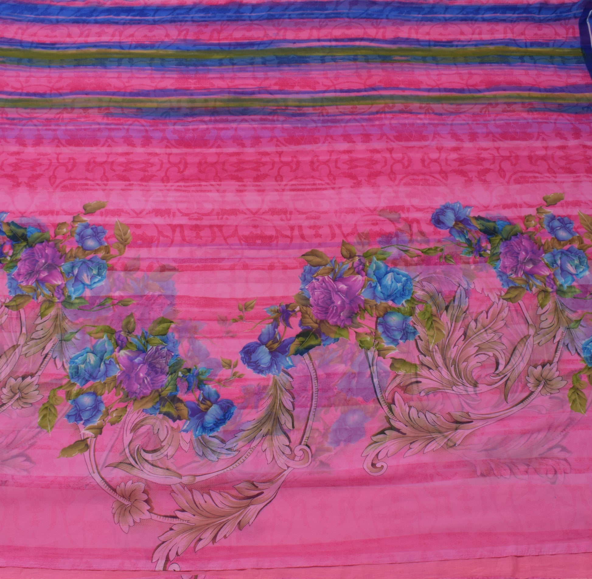 Sushila Vintage Pink Saree Blend Georgette Silk Printed Floral Craft Fabric