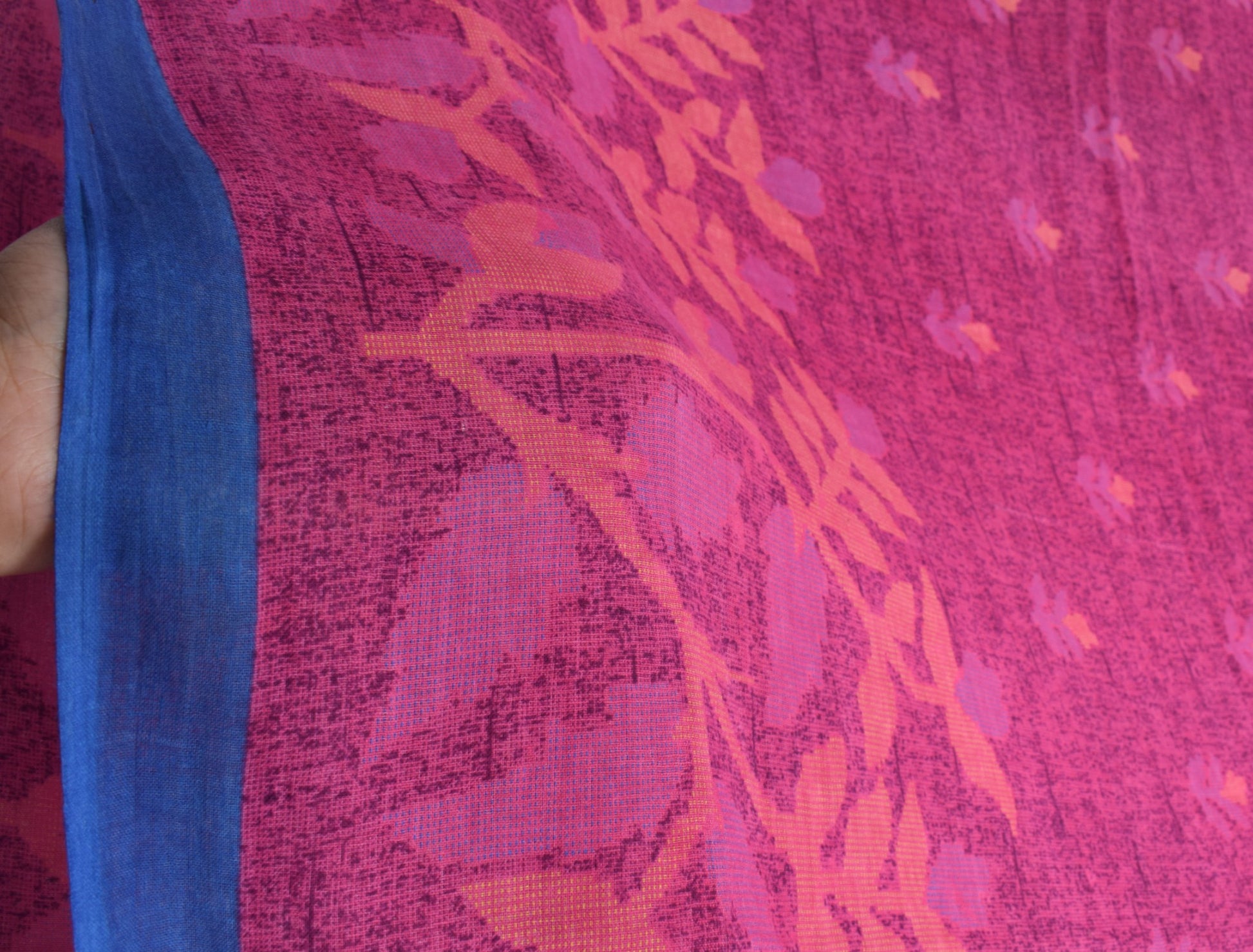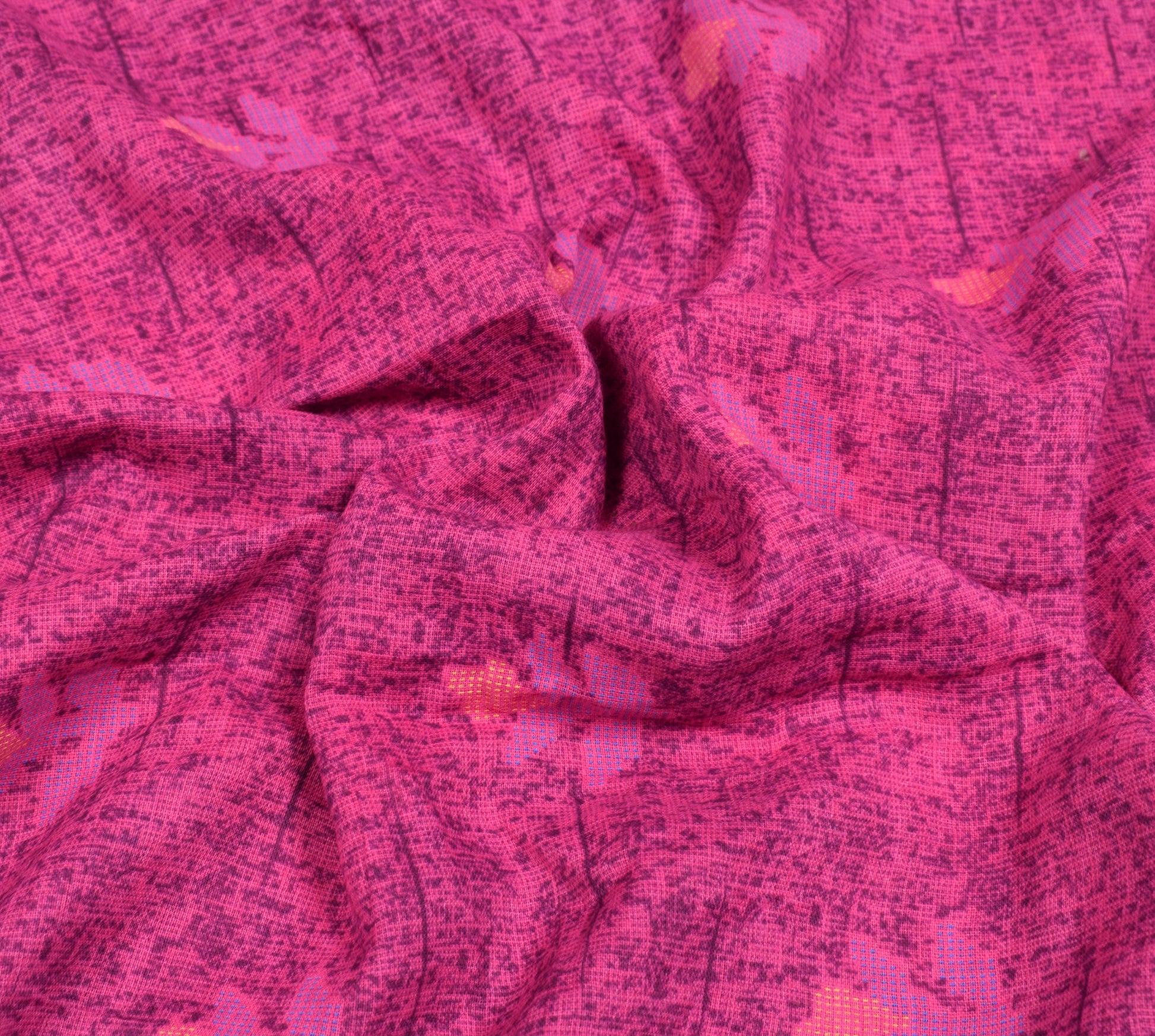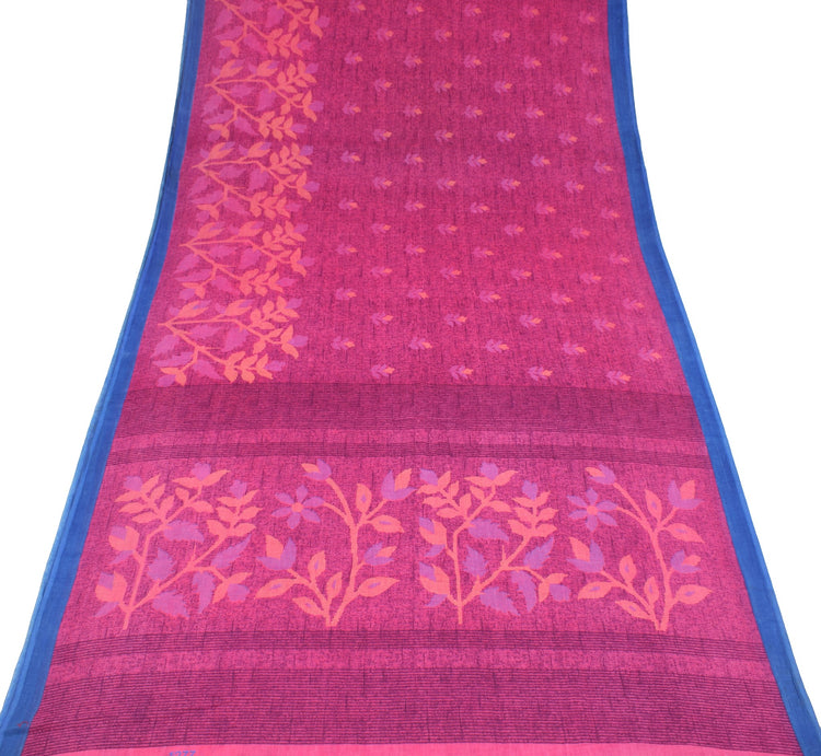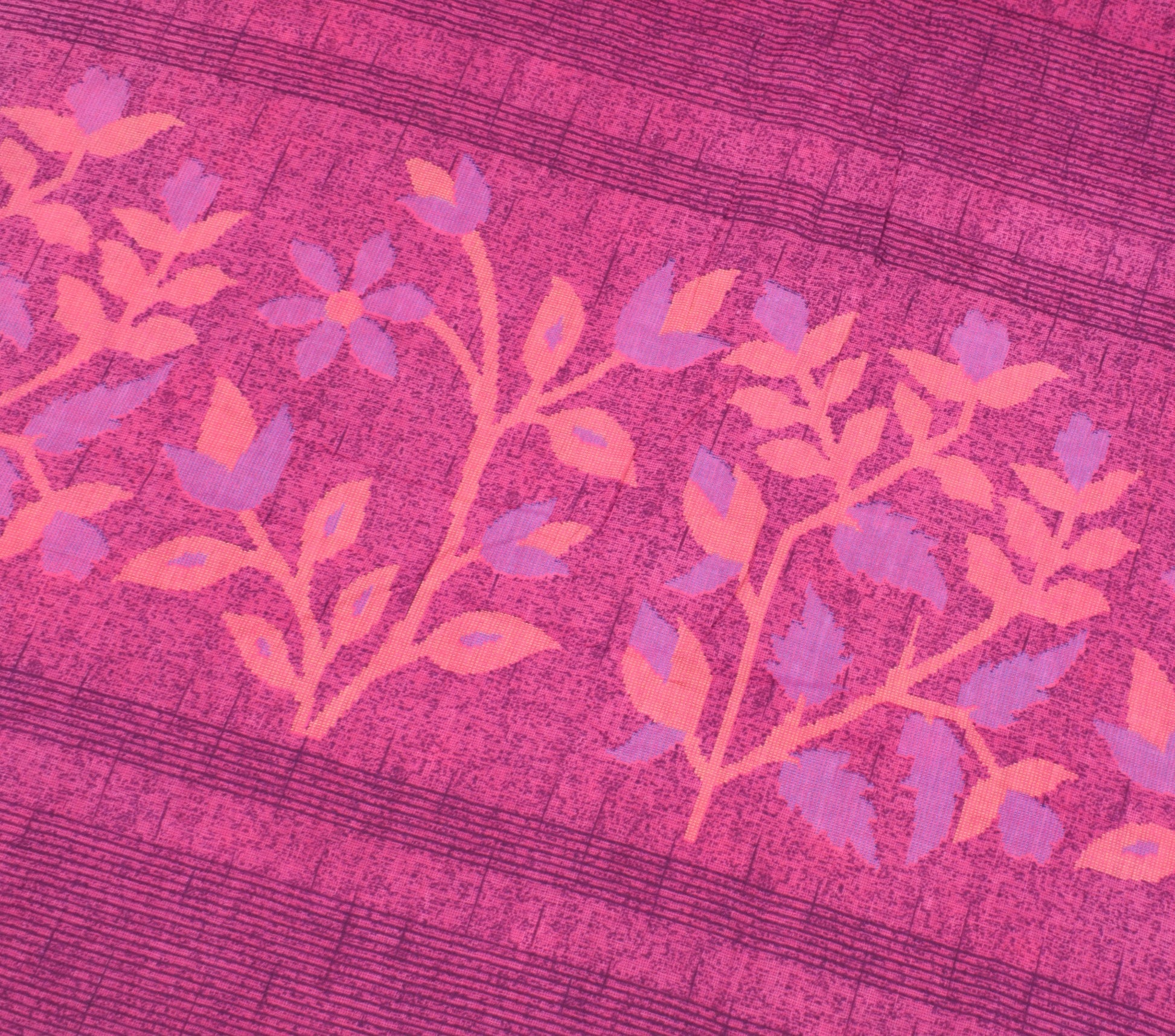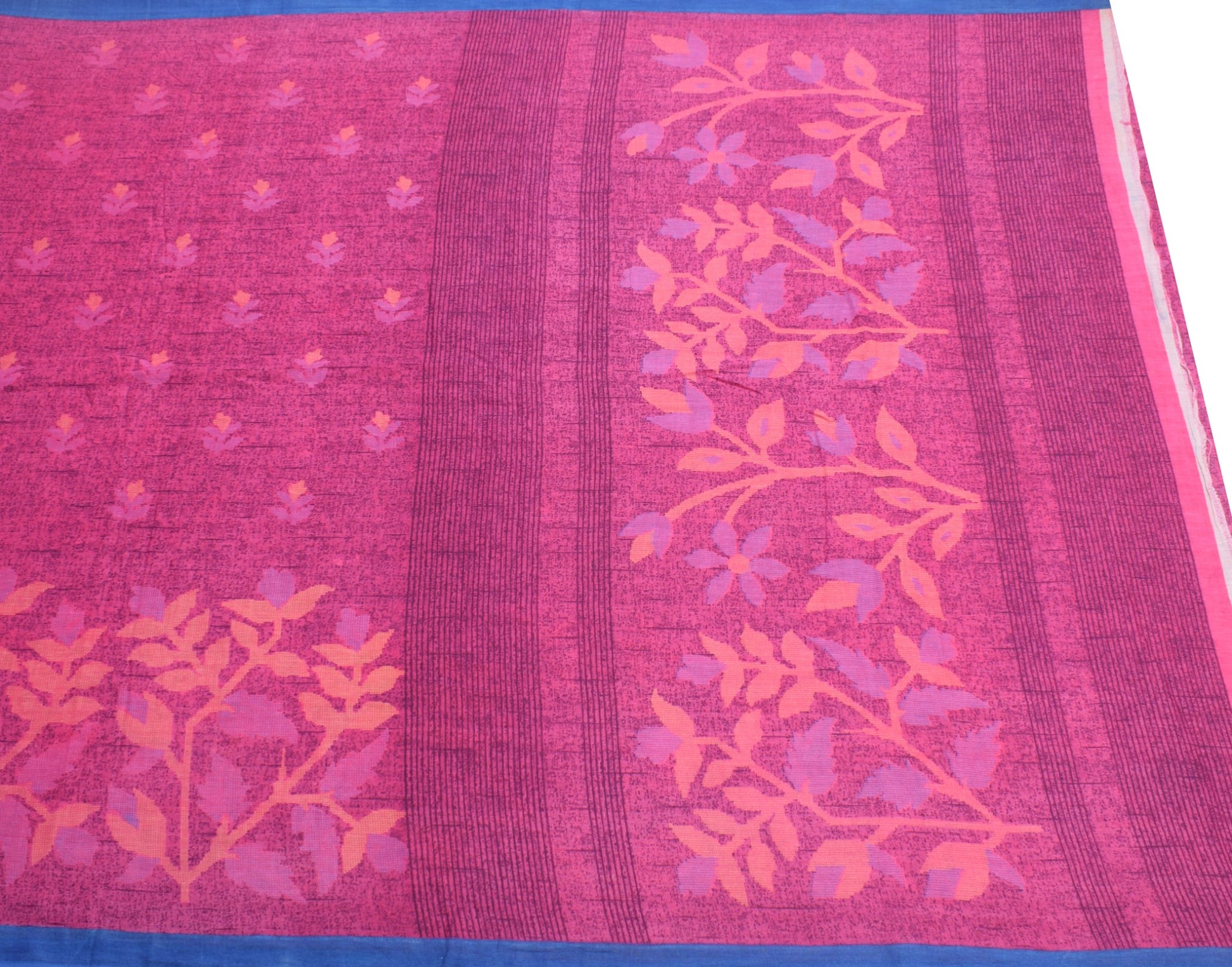 Sushila Vintage Pink Saree Soft Pure Cotton Printed Floral Indian Craft Fabric
