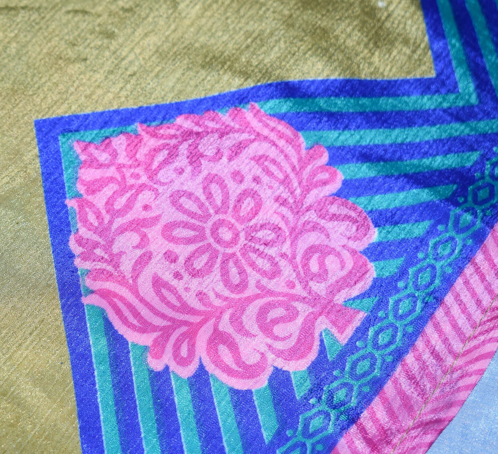 As this item is made from pre-owned vintage saree fabric, it may have minor imperfections, adding to its unique character.