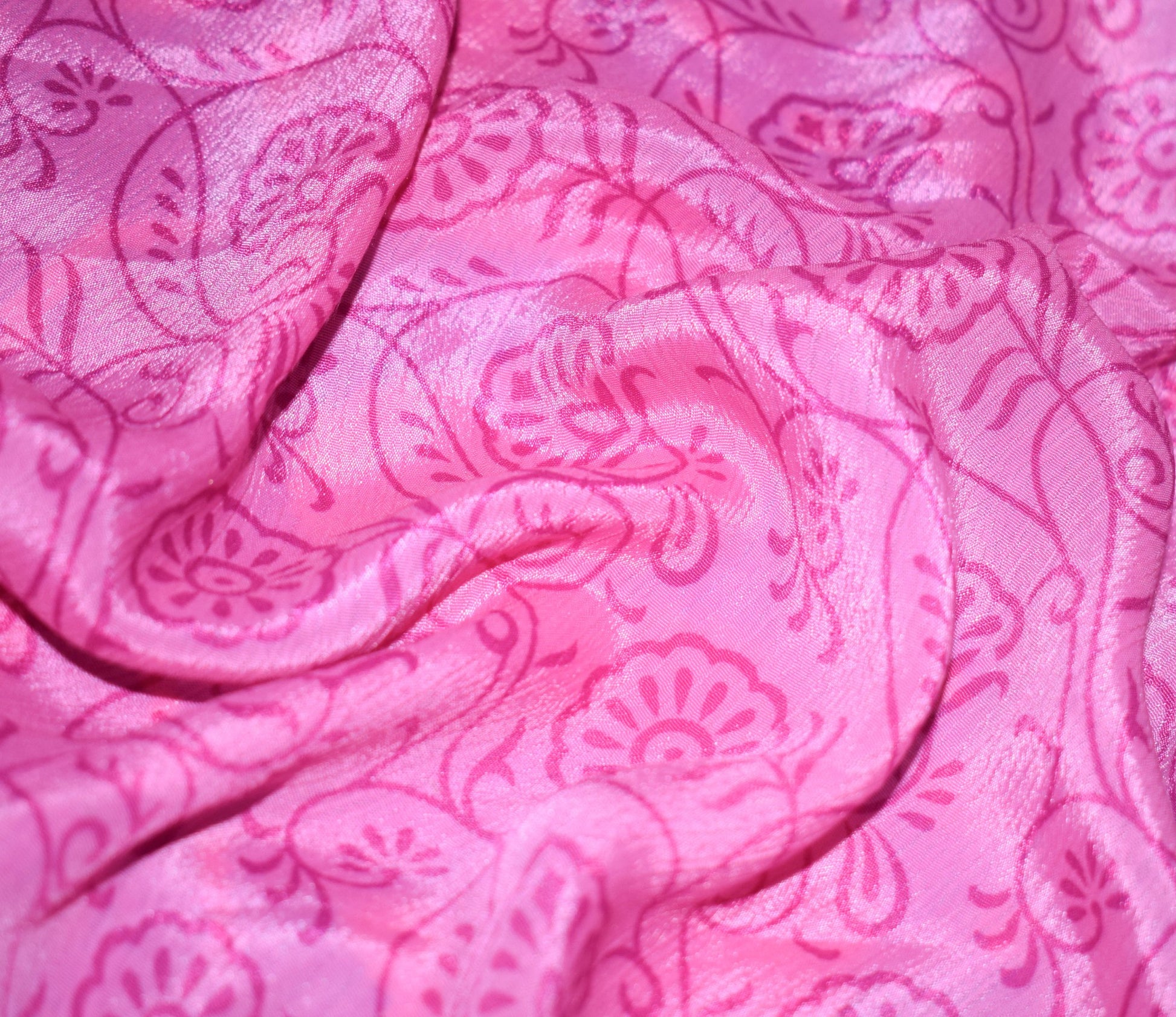 This reversible 2‑Layer Magic Wrap Skirt is crafted from pre‑owned vintage Art or Artificial Silk saree fabric, showcasing a charming pink floral pattern for a perfect blend of style and sustainability. Ideal for beach outings, casual wear, or versatile styling, these skirts are lightweight, comfortable, and uniquely patterned. The vibrant designs and flowing fabric make them ideal for pairing with shirts, T‑shirts, or Kurtis. These skirts can be styled in multiple ways, offering endless possibilities for fashion enthusiasts. For styling ideas, simply search for "magic wrap skirt tutorial" on YouTube.