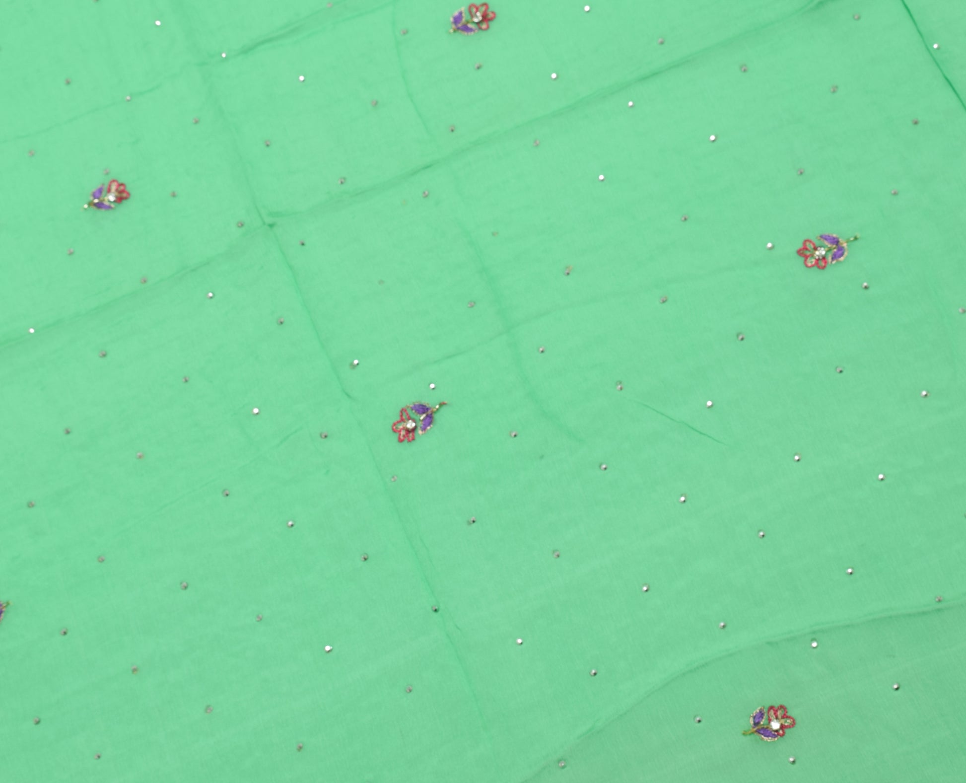 Step into a world of elegance with this richly textured Pista Green Floral Dupatta, Scarf, Indian Long Stole, Veil, or Hijab, perfect for those who appreciate fine craftsmanship. Made from premium Pure Chiffon Silk, this piece features intricate Beaded, Glass Beads, Stone Work & Embroidered work, adding a touch of traditional charm to any outfit. The Pista Green base beautifully complements the delicate Floral detailing, creating a truly timeless accessory.