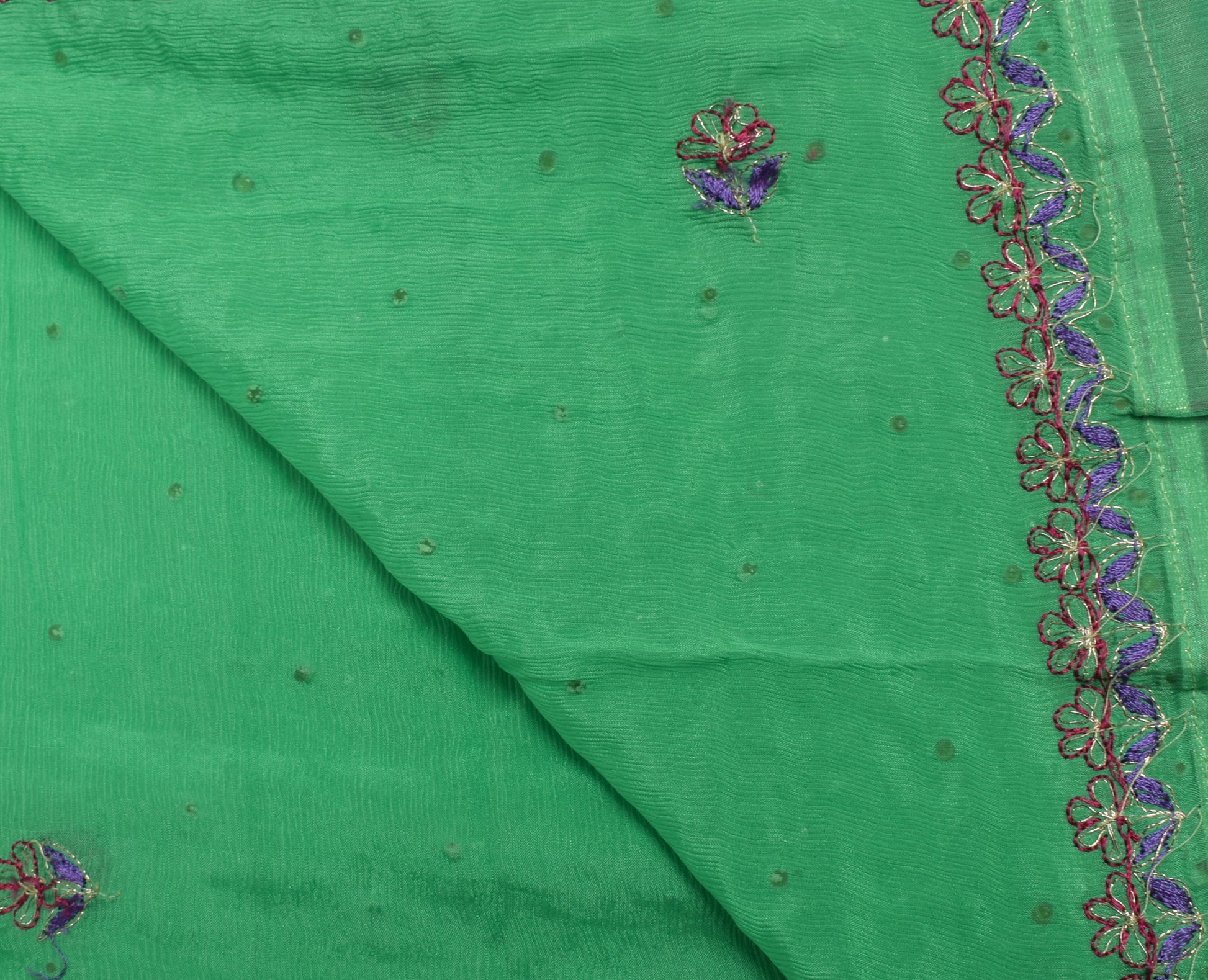 Sushila Vintage Pista Green Dupatta Pure Chiffon Silk Embroidered Long Stole