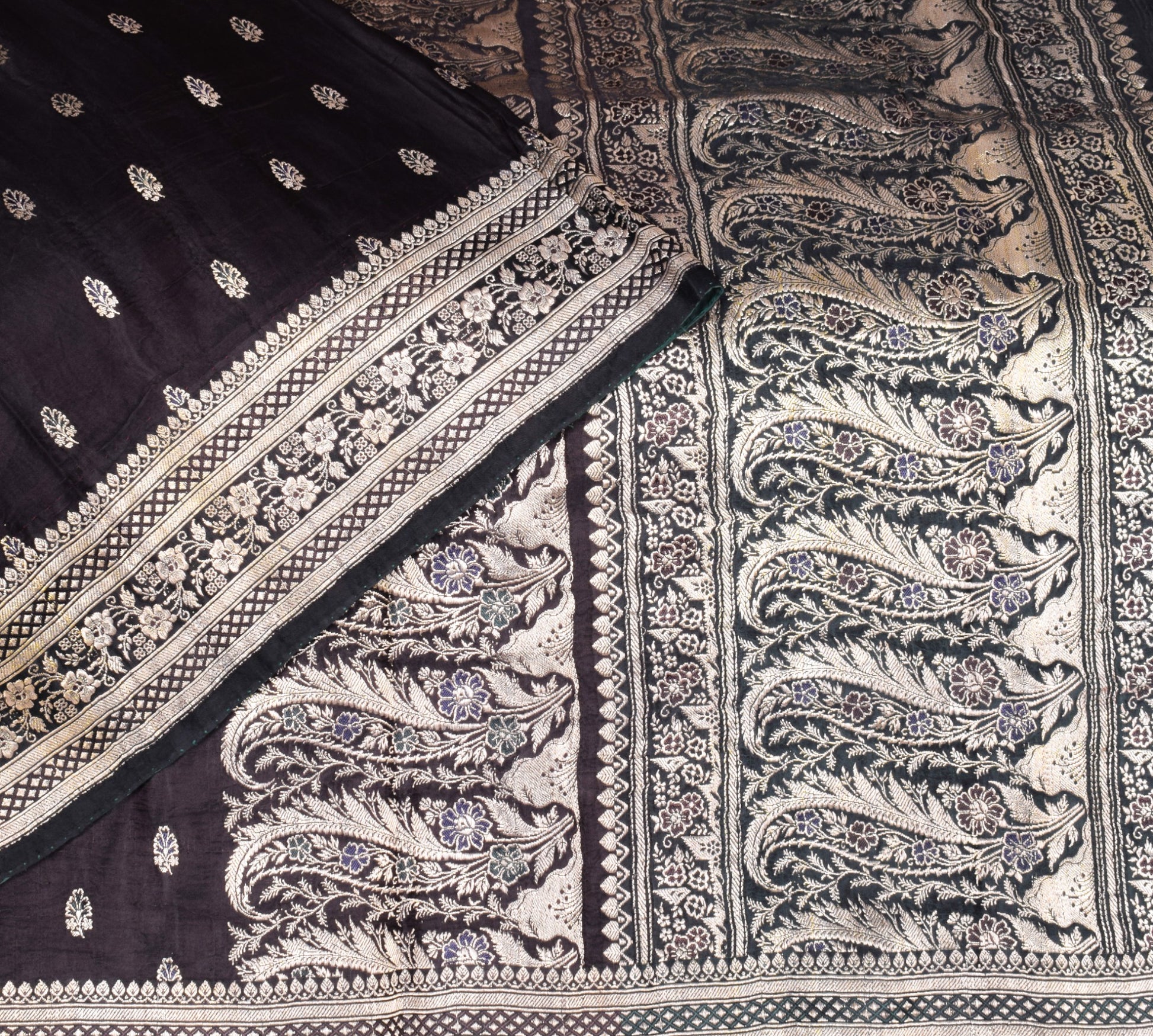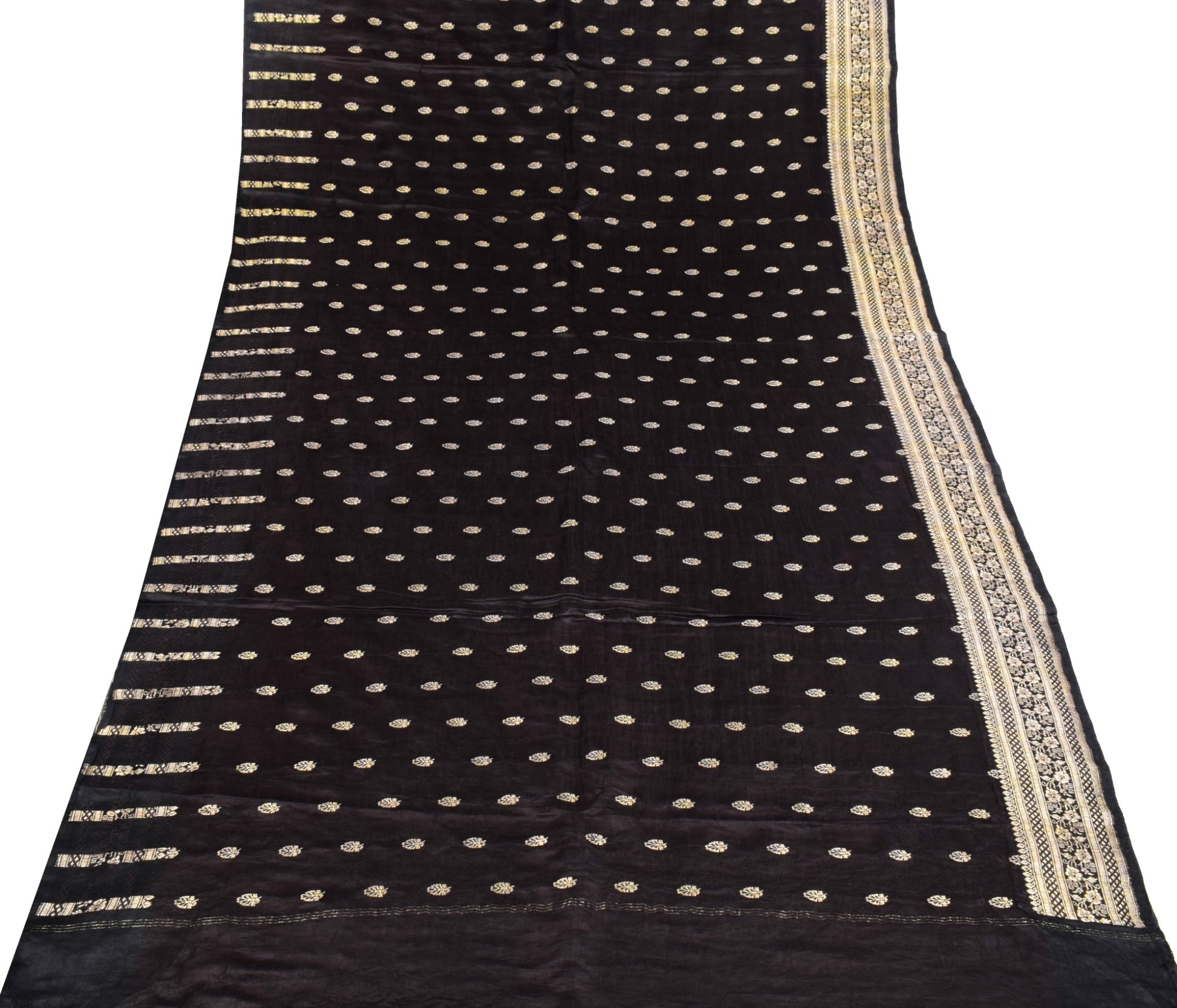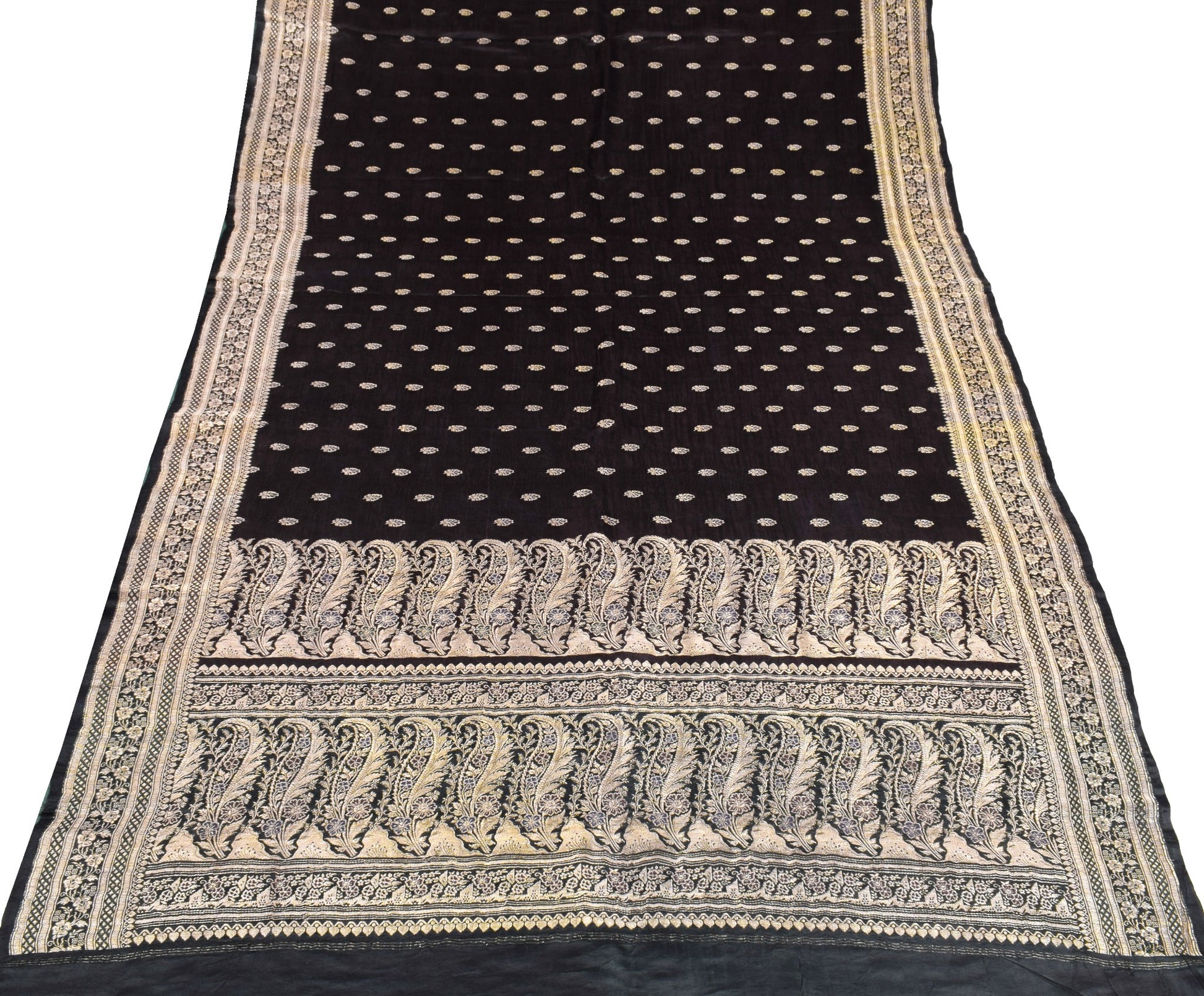 Sushila Vintage Premium Heavy Banarasi Saree Pure Satin Silk Brocade Black Sari