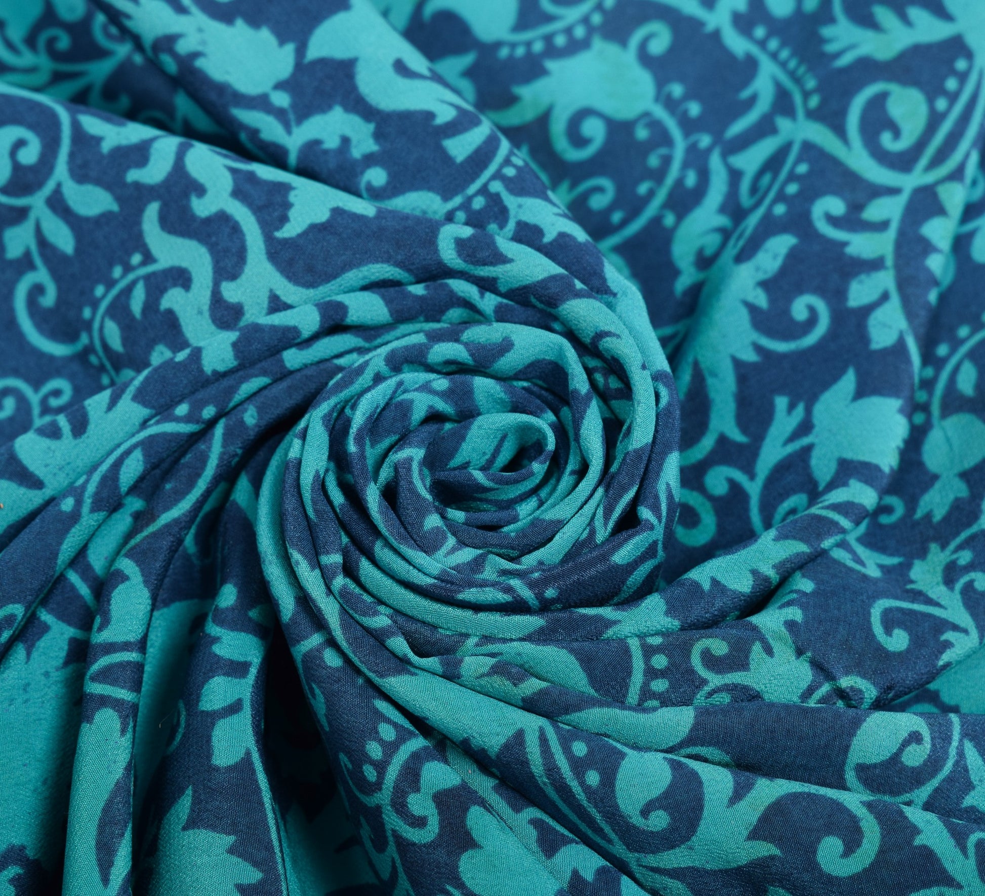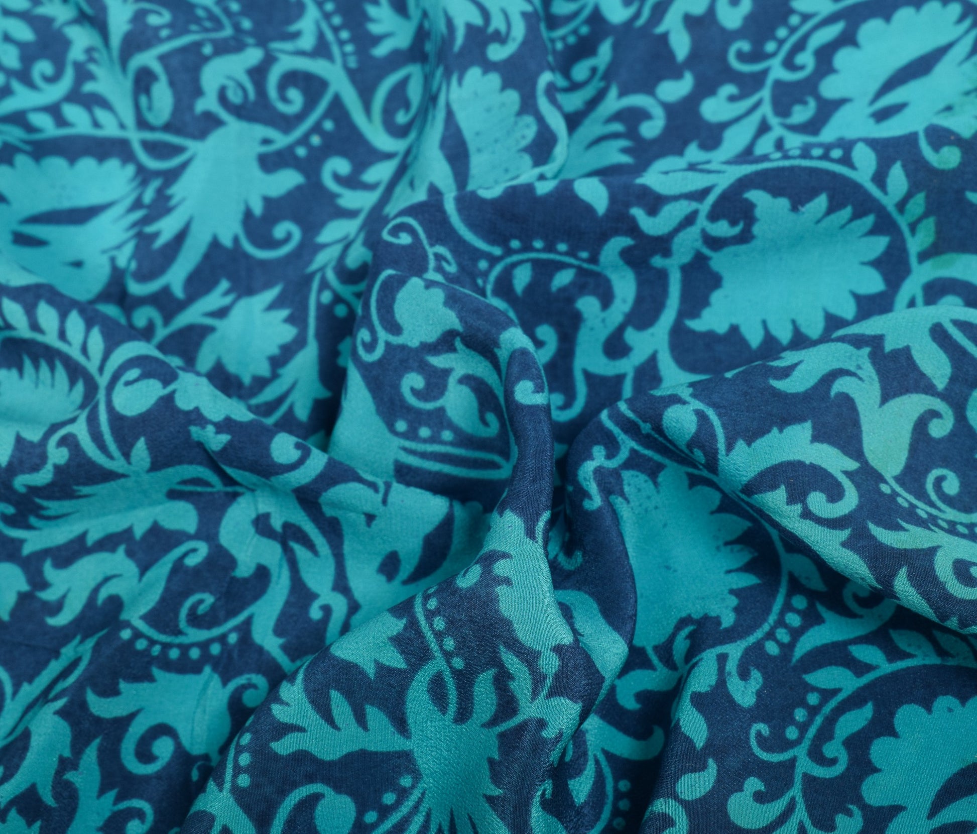 Add a touch of charm to your wardrobe with this Teal blue floral blouse fabric made from 100% Pure Crepe Silk. Lightweight and silky-smooth, it features an elegant printed floral design perfect for crafting stylish blouses with a fresh, modern vibe.