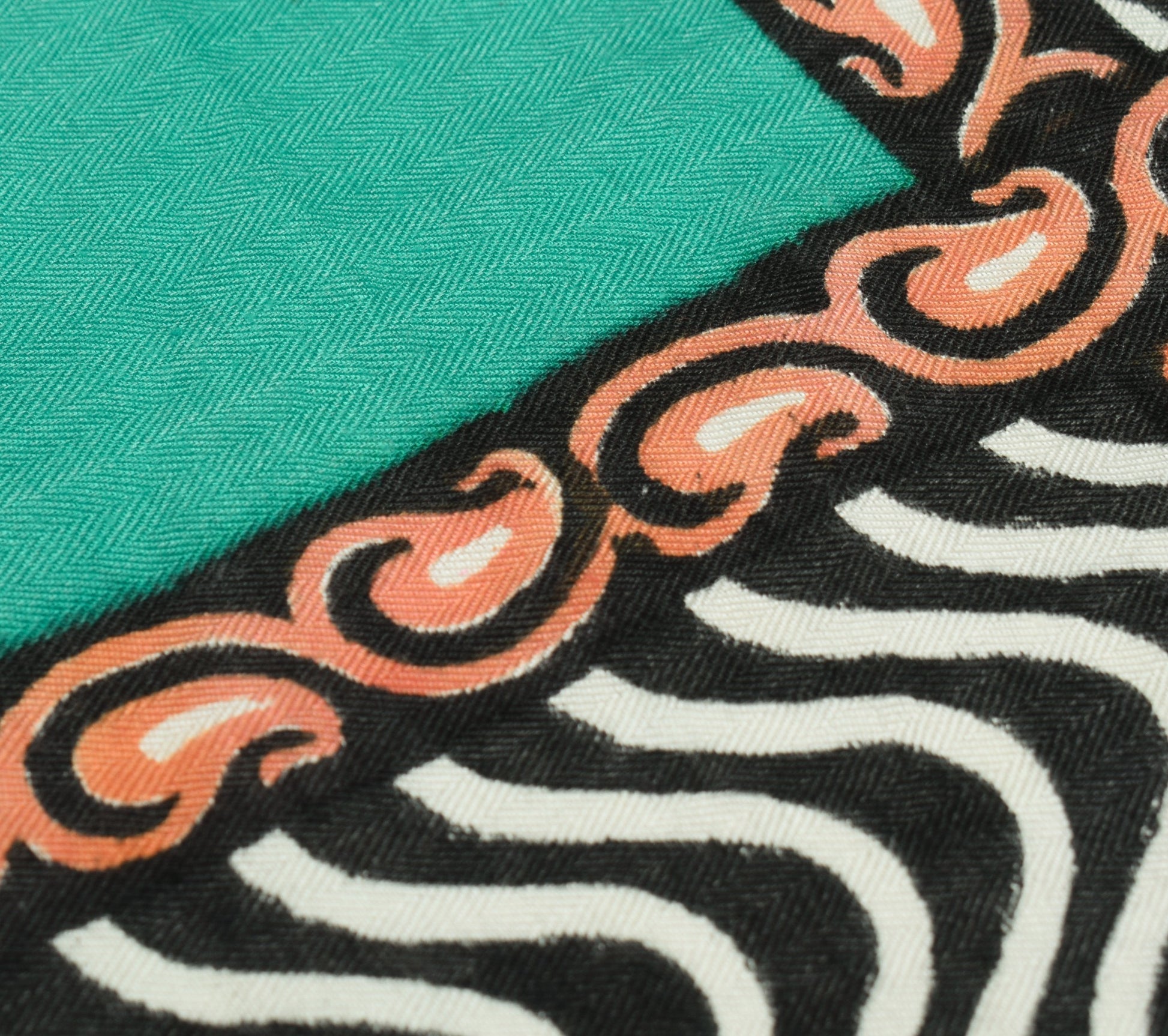 Sushila Vintage Pure Woolen Dupatta Teal Green Hand Block Printed Warm LongStole