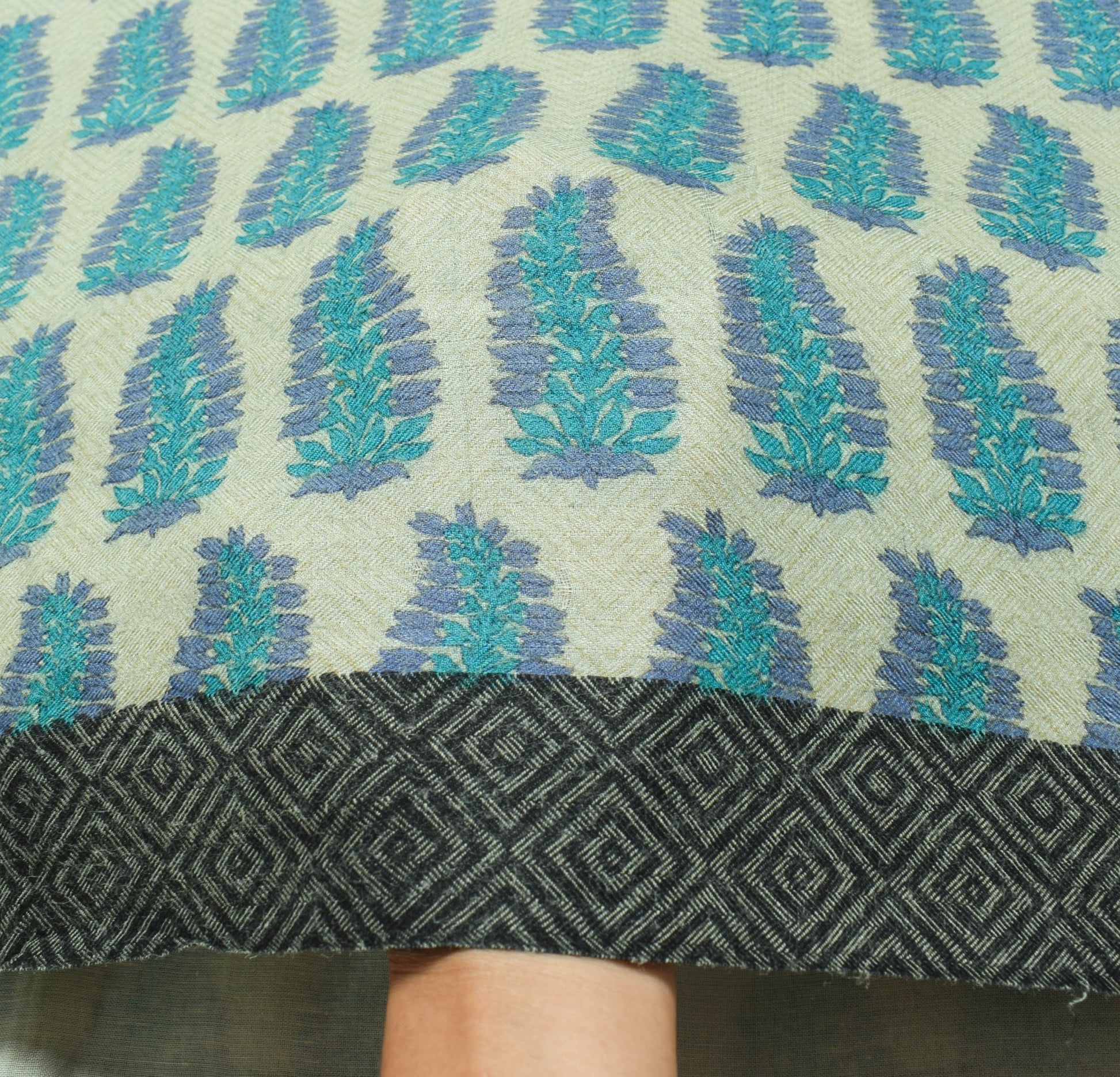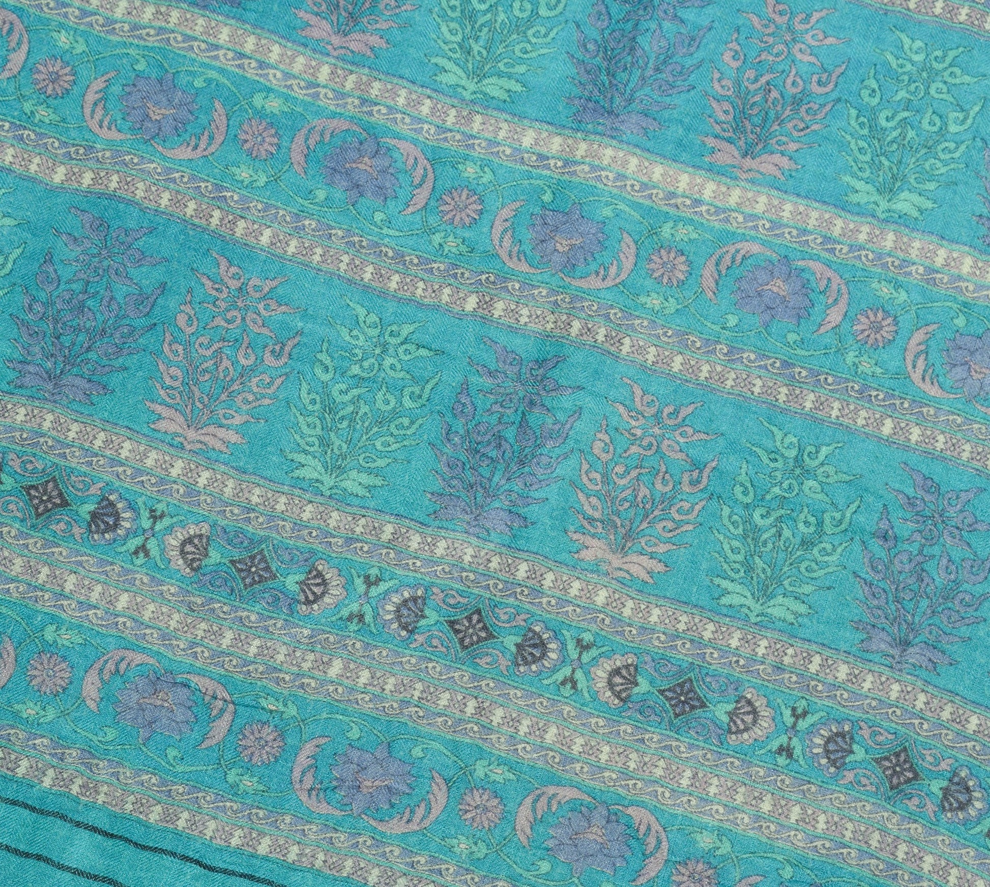 Sushila Vintage Pure Woolen Saree Floral Printed & Woven Soft Sari Craft Fabric