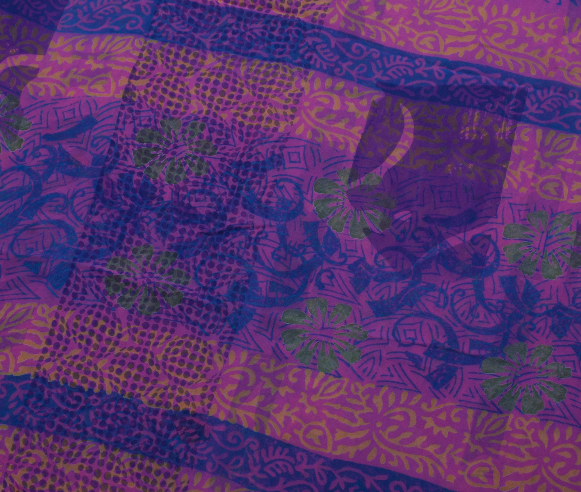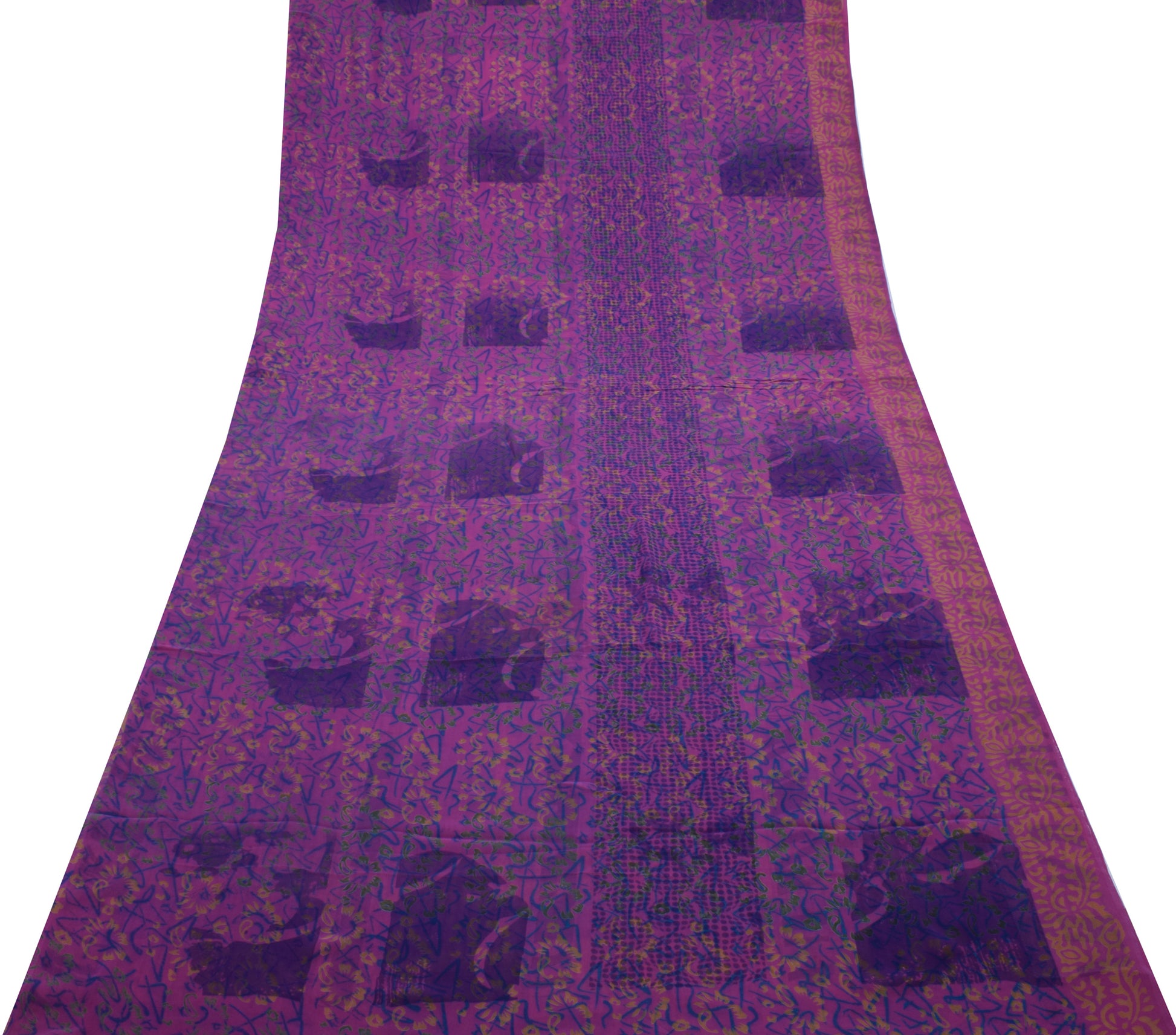 Sushila Vintage Purpl Saree 100% Pure Georgette Silk Printed Floral Craft Fabric