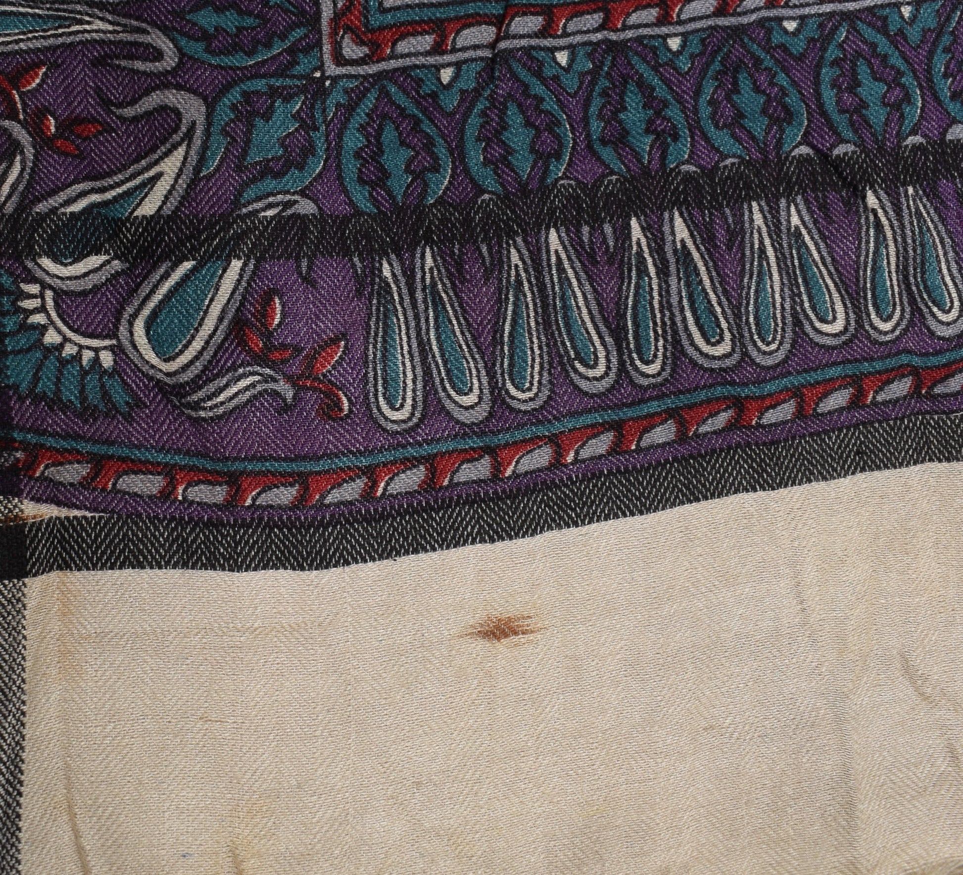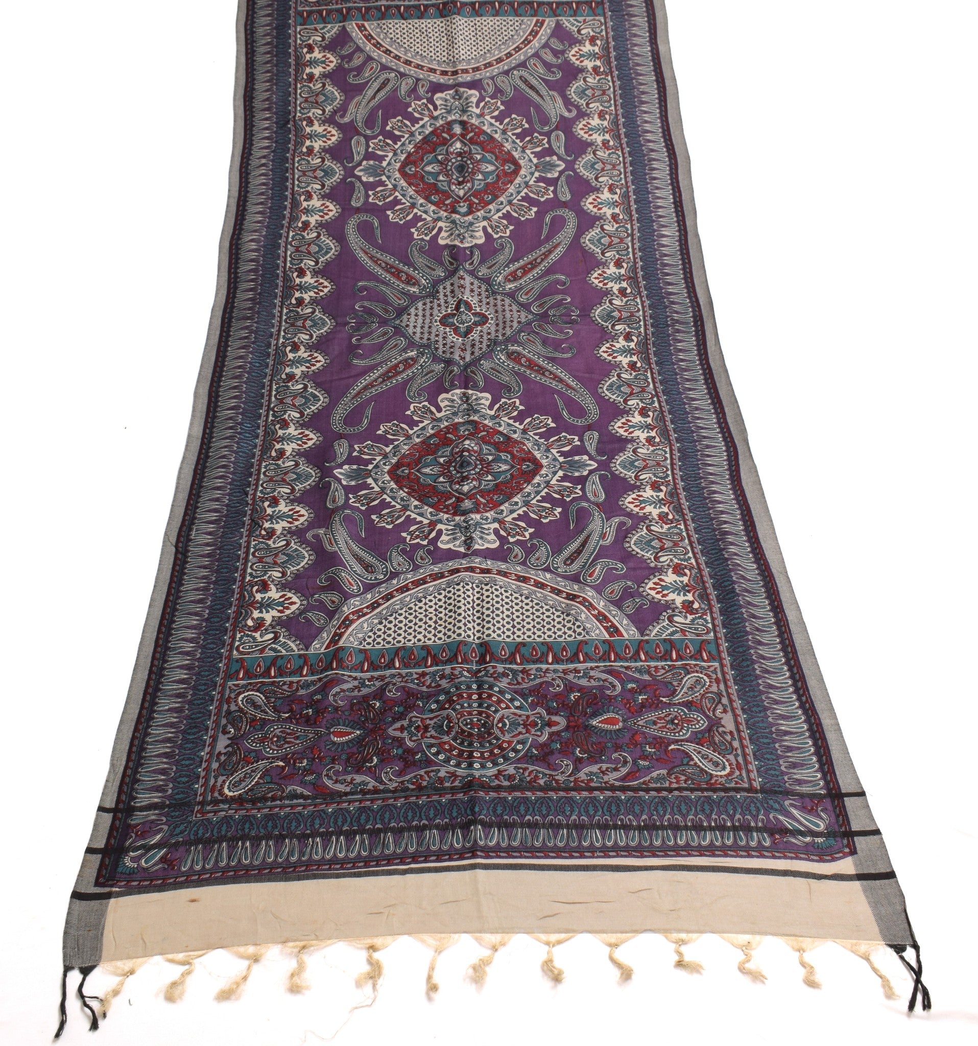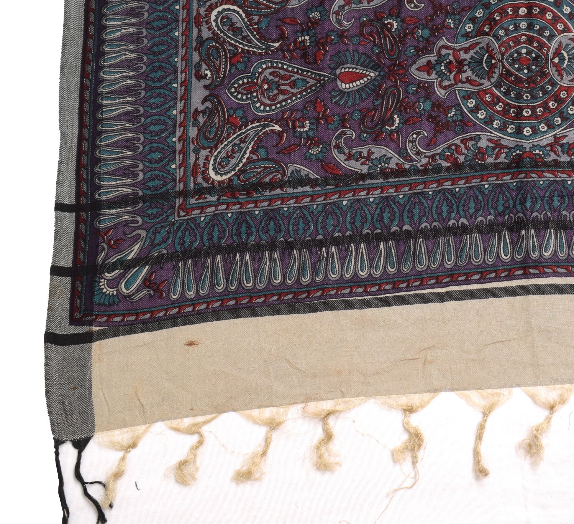 Sushila Vintage Purple Dupatta 100% Pure Woolen Woven Paisley Long Stole Shawl