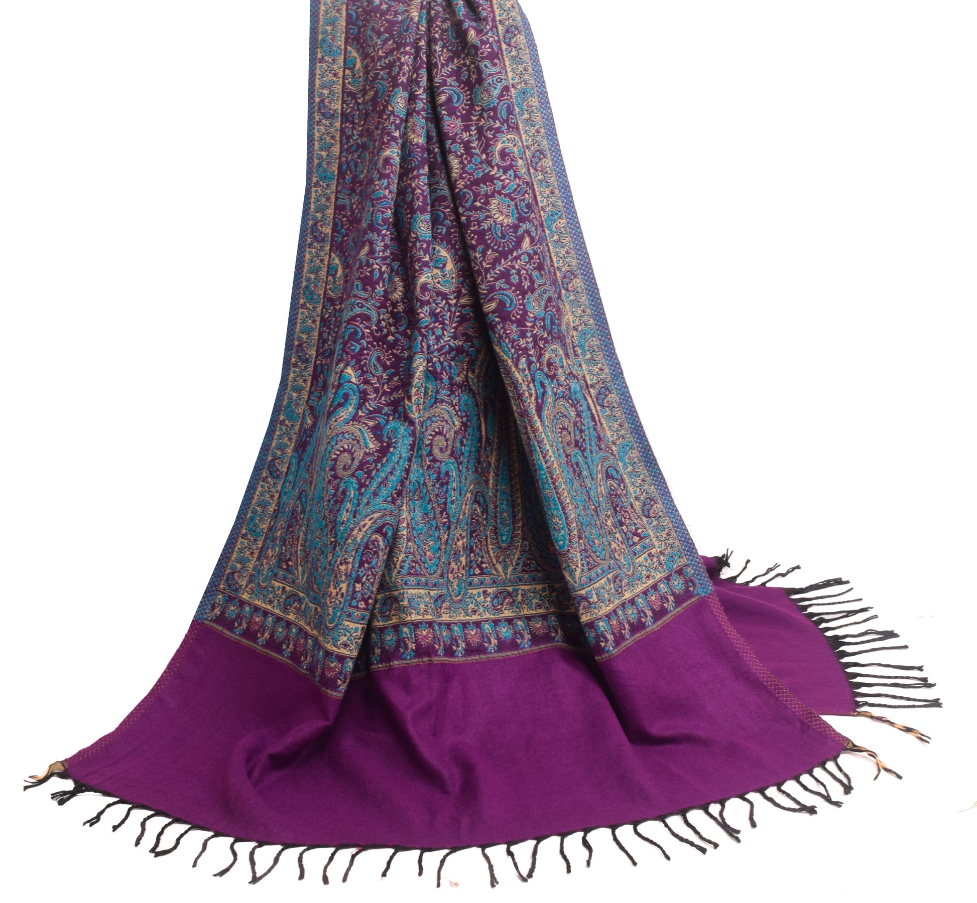 Experience the cozy luxury of this Purple Paisley woolen dupatta, perfect for winter wear or as a versatile Scarf, Indian Long Stole, Veil, or Hijab. Made from high-quality Blend Woolen, this piece features intricate Woven work, making it perfect for both special occasions and everyday wear. The Purple base beautifully complements the delicate Paisley detailing, adding a touch of traditional charm to any outfit.