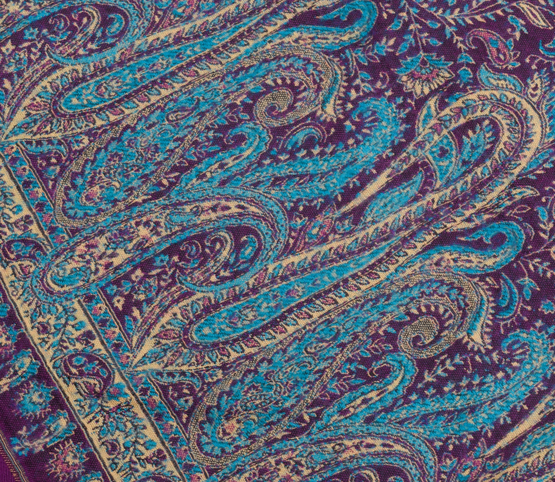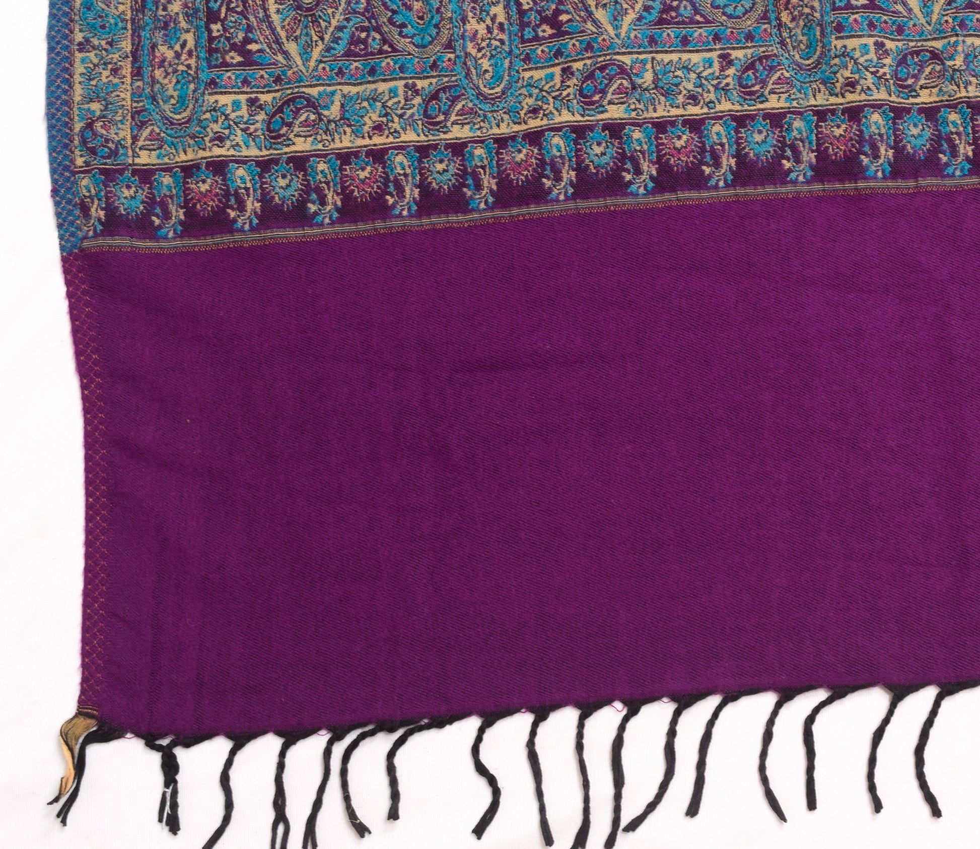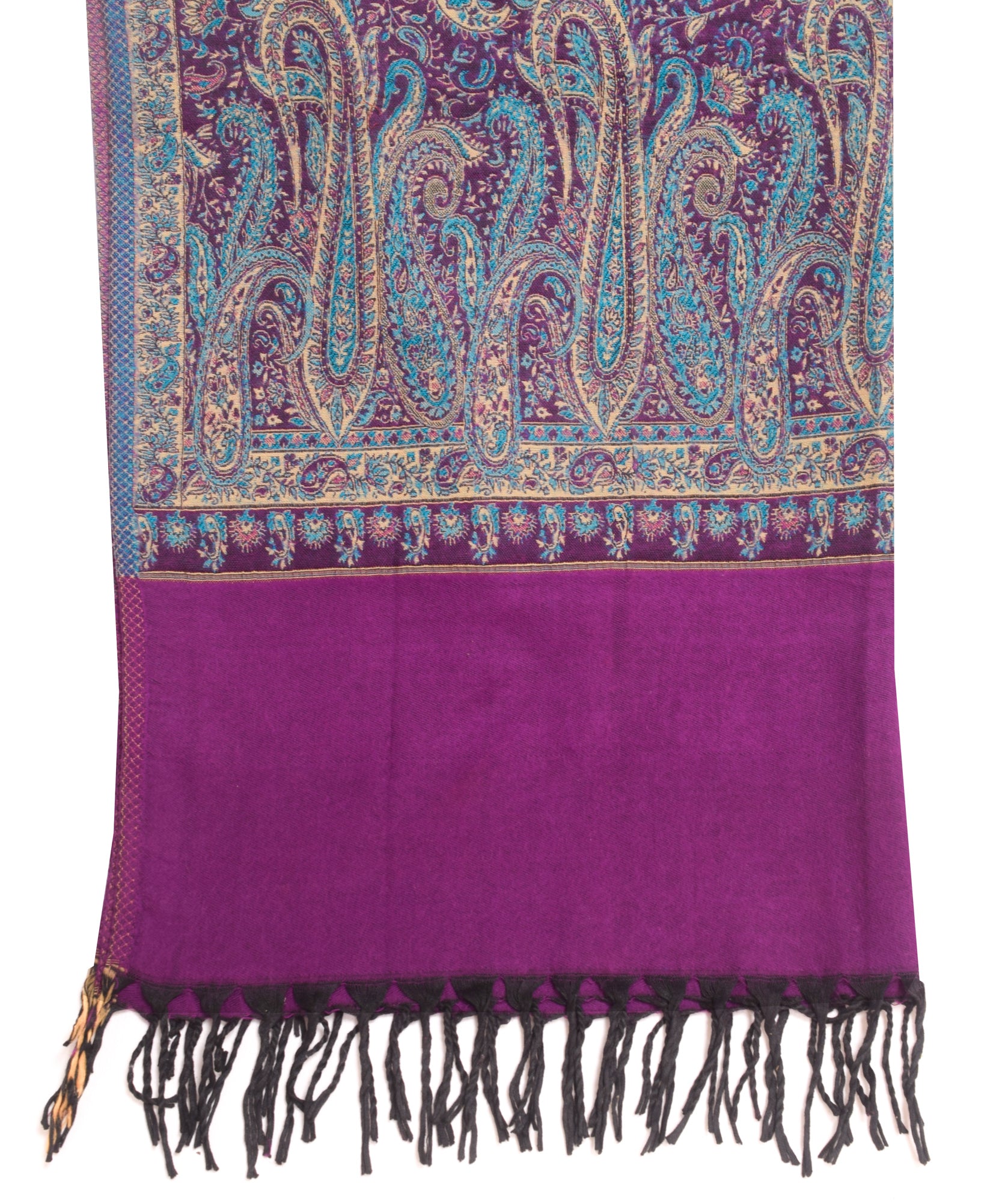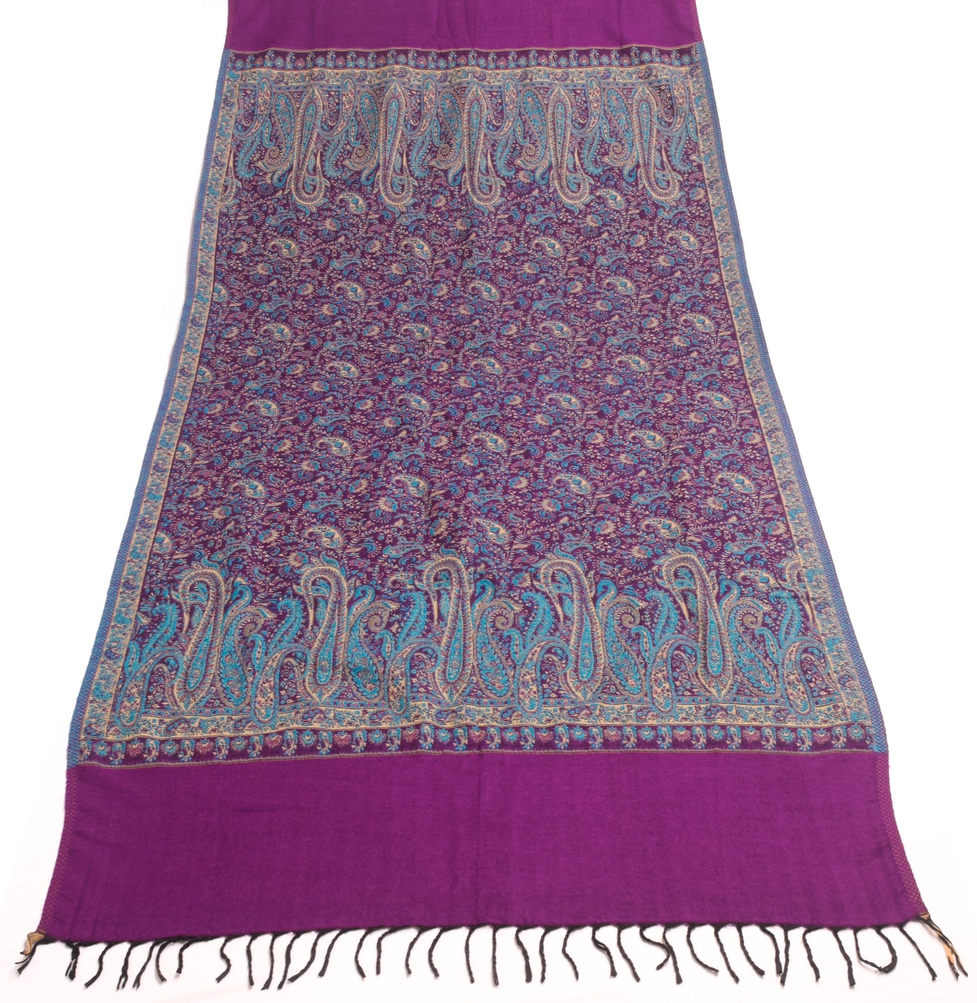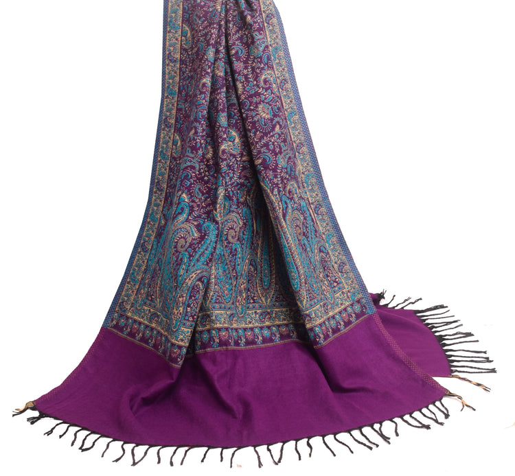 Sushila Vintage Purple Dupatta Blend Woolen Woven Paisley Long Stole Shawl