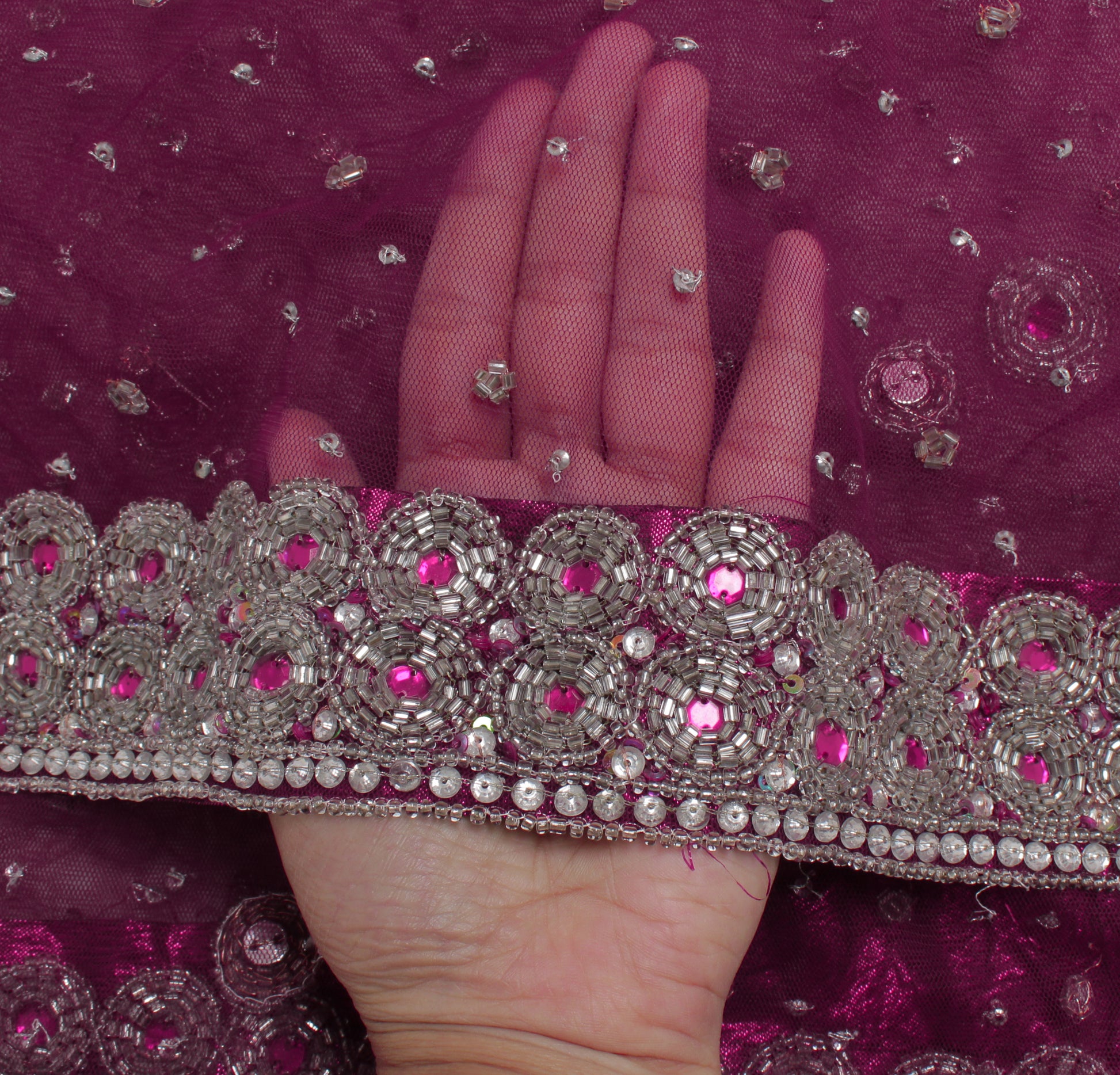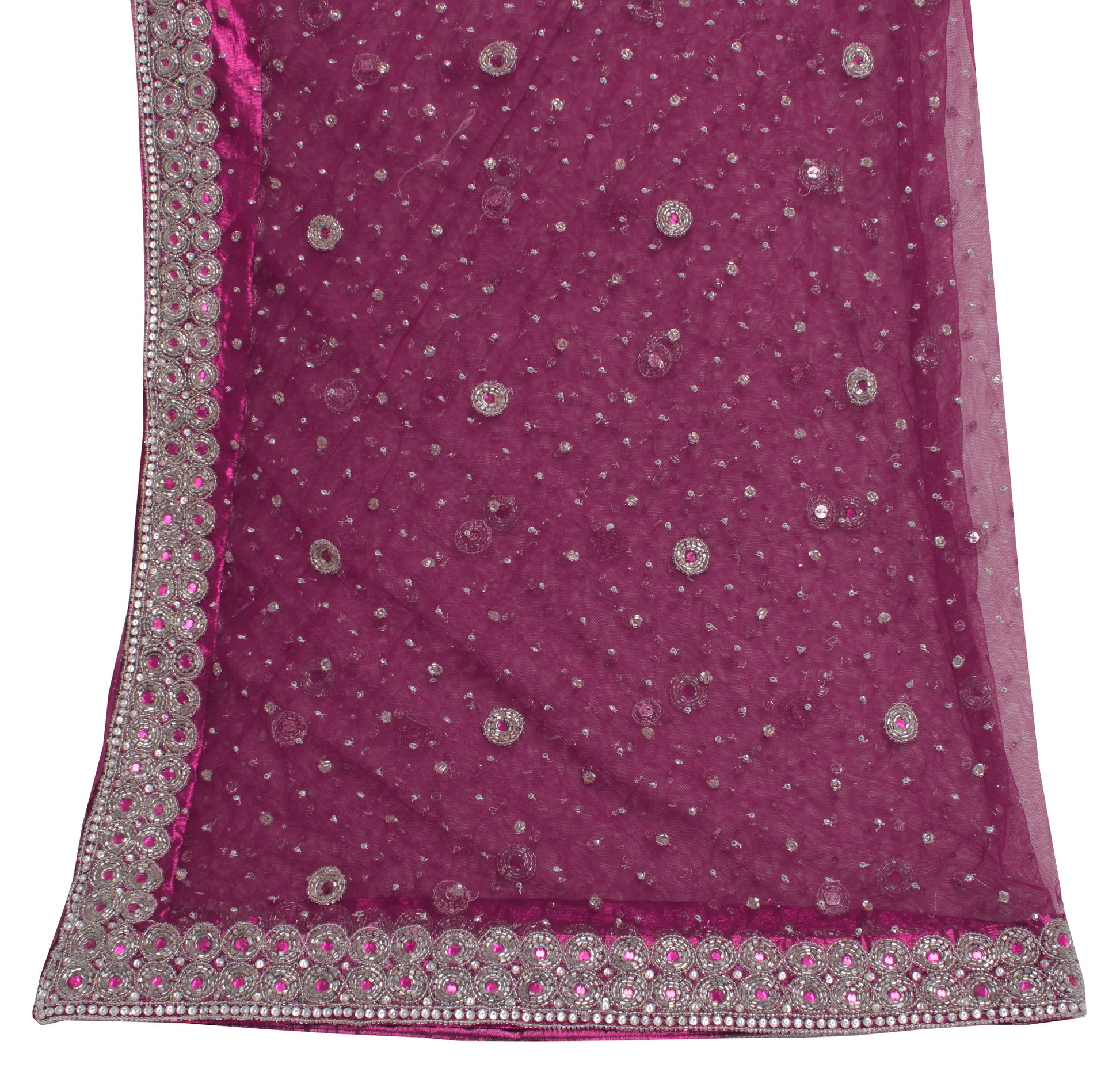 Sushila Vintage Purple Dupatta Net Mesh Embroidered Long Stole Veil Scarves