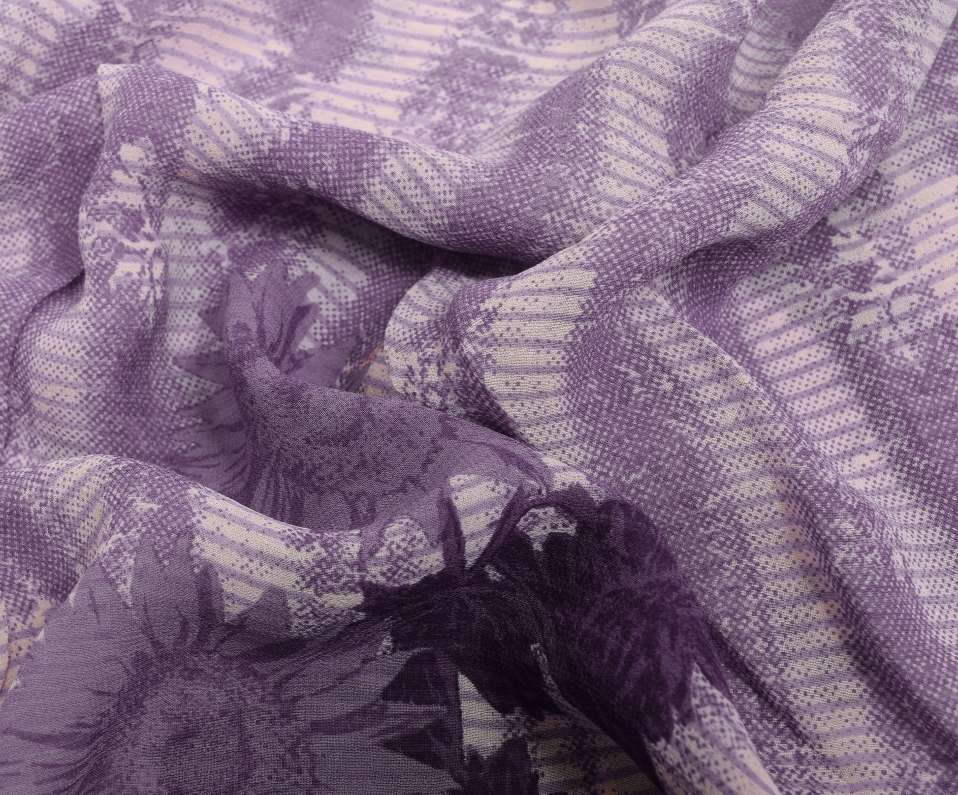 Celebrate traditional artistry with this exquisite Purple 100% Pure Georgette Silk saree, known for its timeless Floral designs and fine Printed work. It is perfect for special occasions, creative repurposing, or as a beautiful heirloom gift. Measuring approximately 214 Inch in length and 44 Inch in width, this sari offers versatile styling options. It is lightweight, weighing just 366 Grams (Actual Product weight), making it easy to drape and carry for long hours. The natural breathability and luxurious drape of 100% pure georgette silk make it a prized choice for those who appreciate fine craftsmanship and vintage fashion.