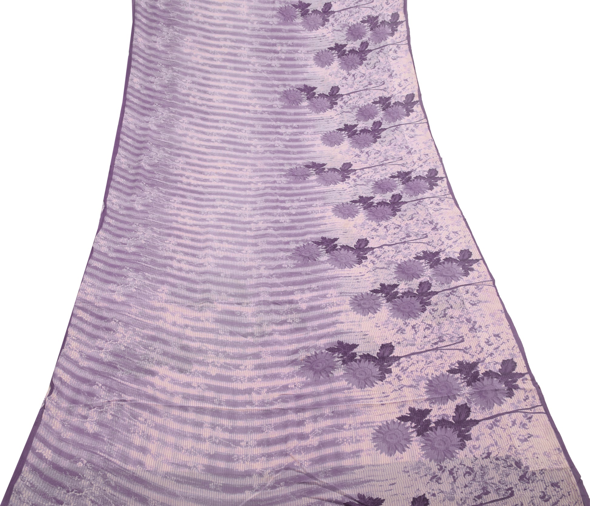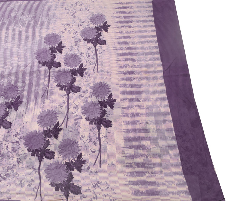 Sushila Vintage Purple Floral Saree 100%Pure Georgette Silk Printed Craft Fabric