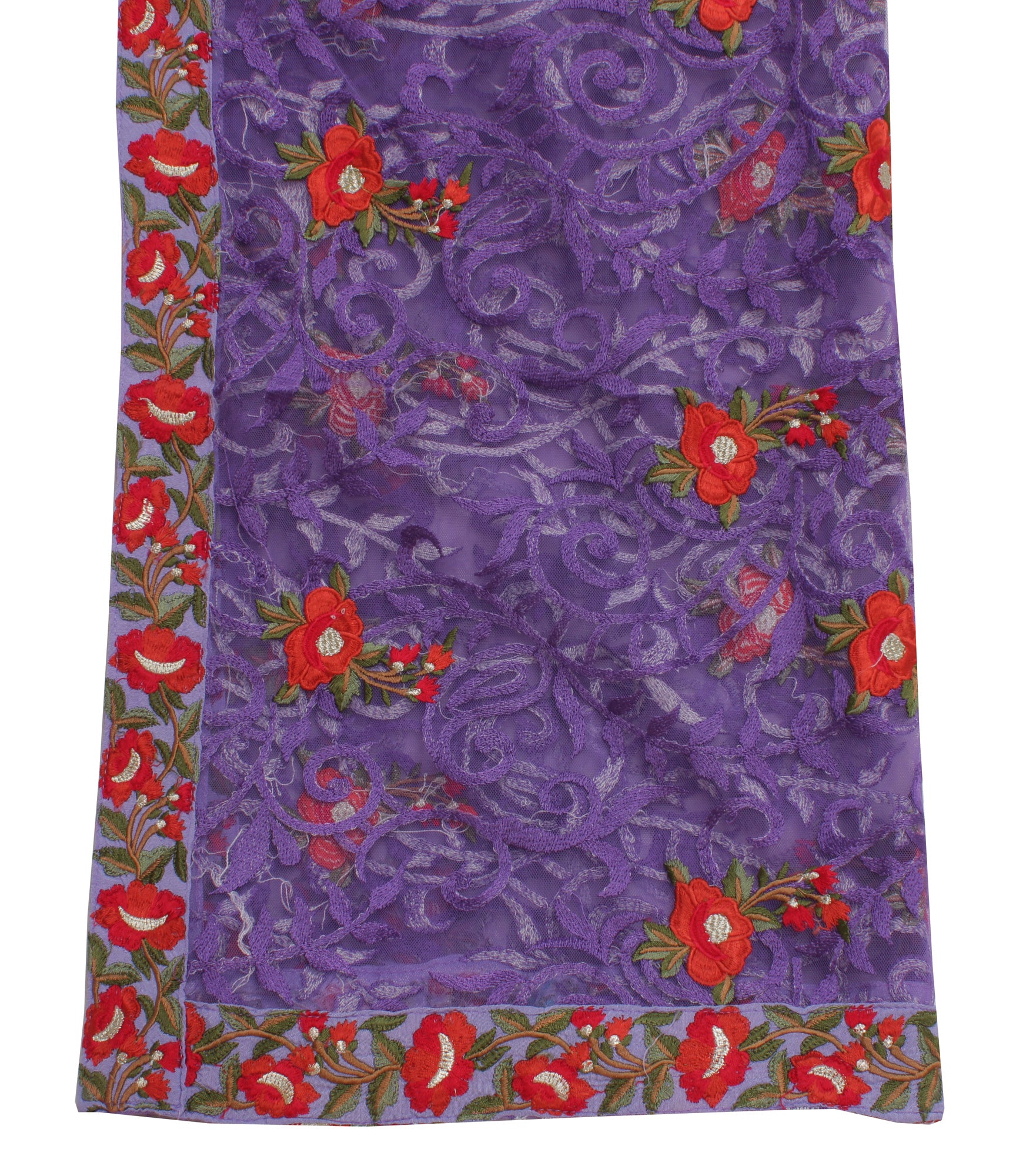 Sushila Vintage Purple Indian Dupatta Net Mesh Hand Embroidered Long Stole Veil