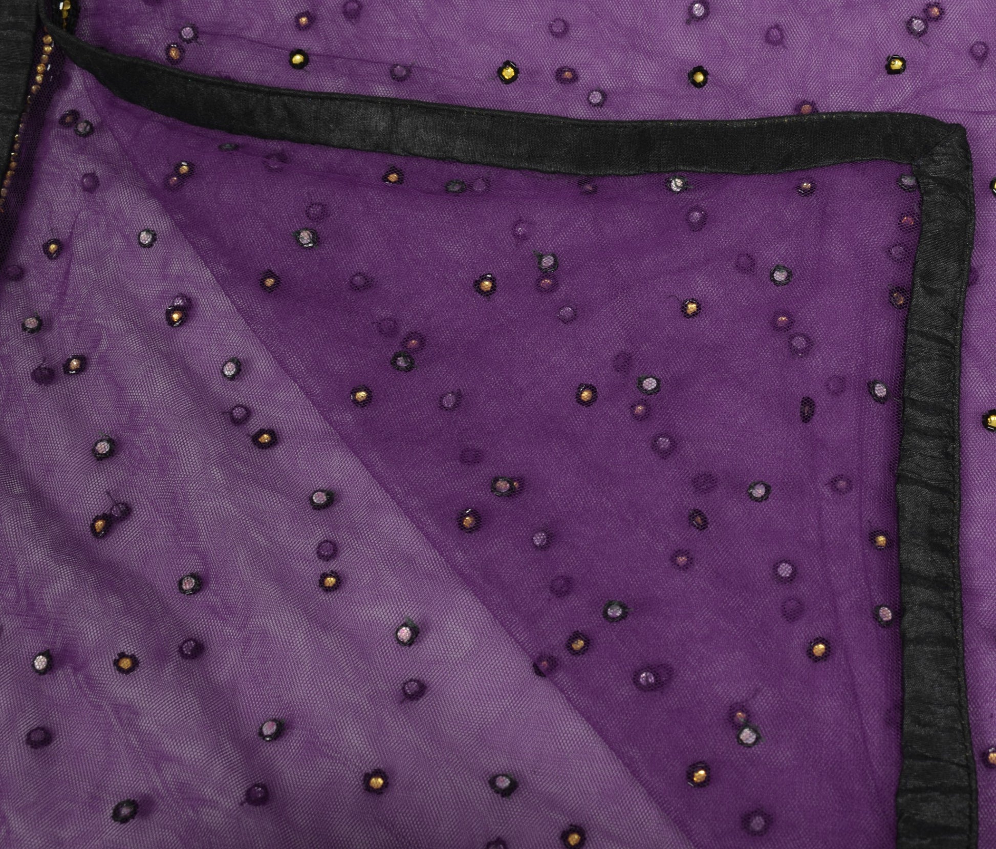 Sushila Vintage Purple Net Mesh Dupatta Glass Beads Embellish Fancy Long Stole