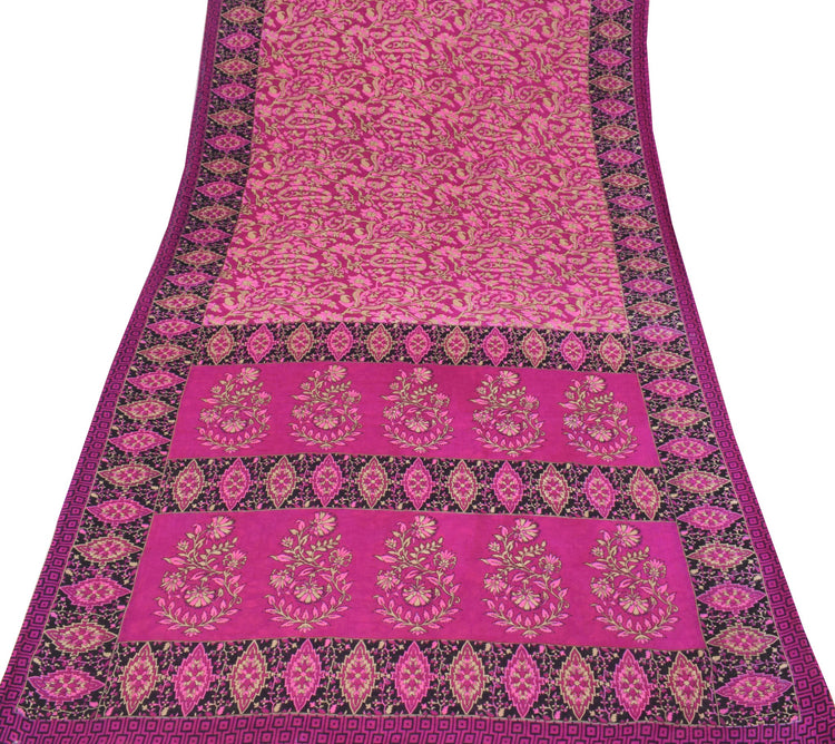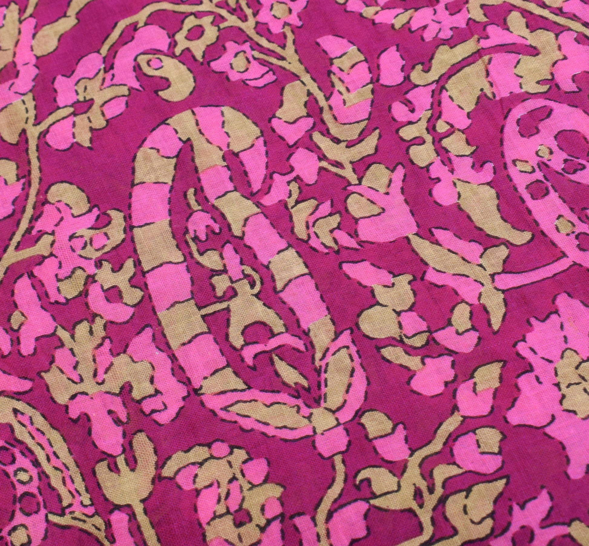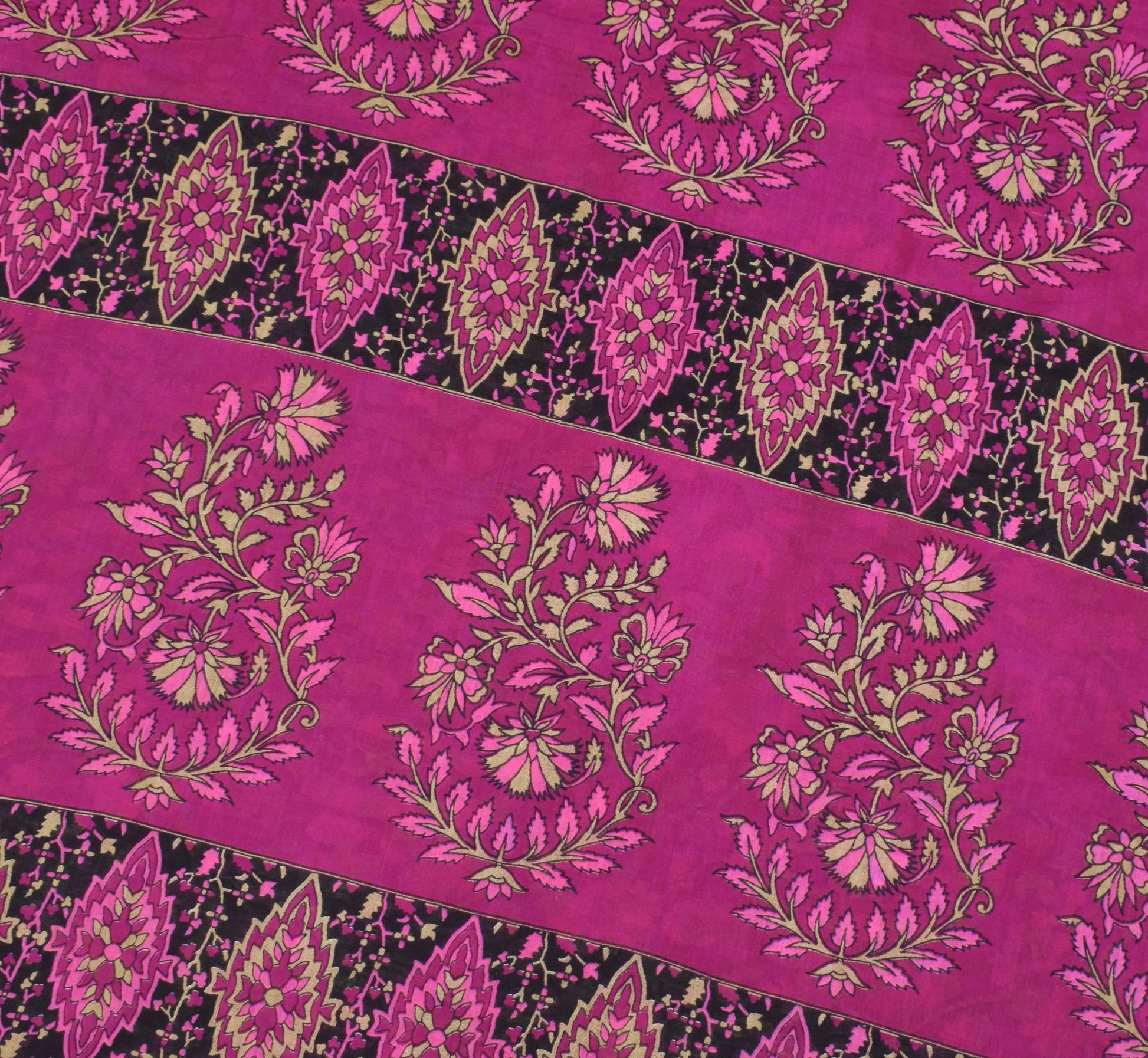 Sushila Vintage Purple Saree 100% Pure Cotton Paisley Printed Soft Craft Fabric