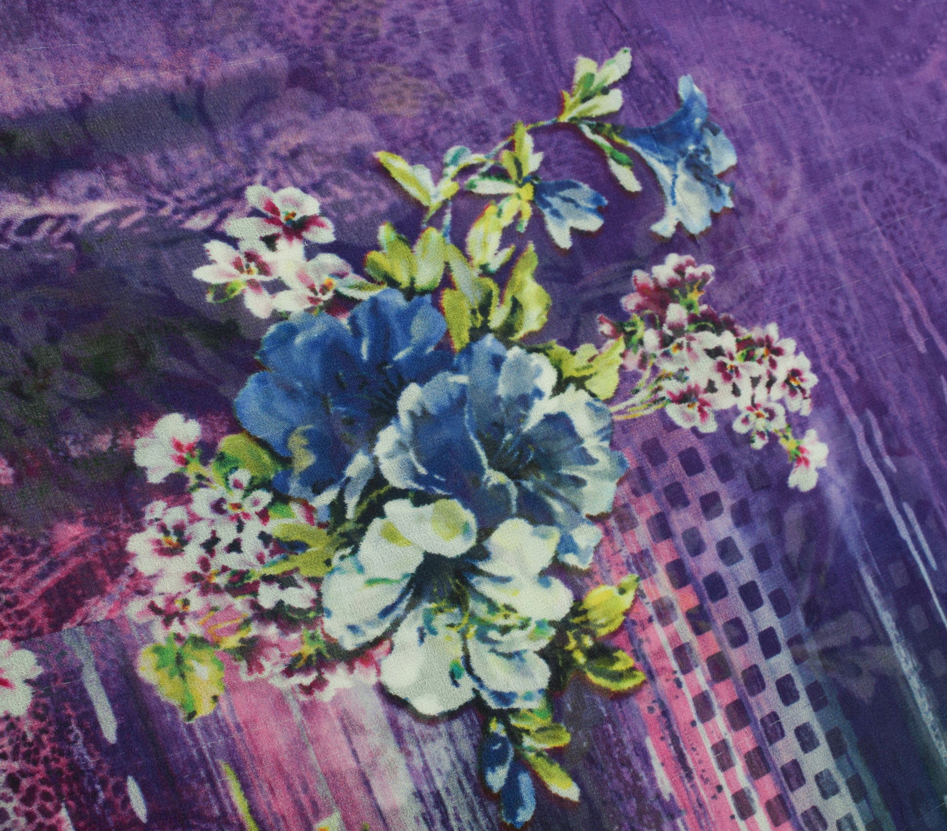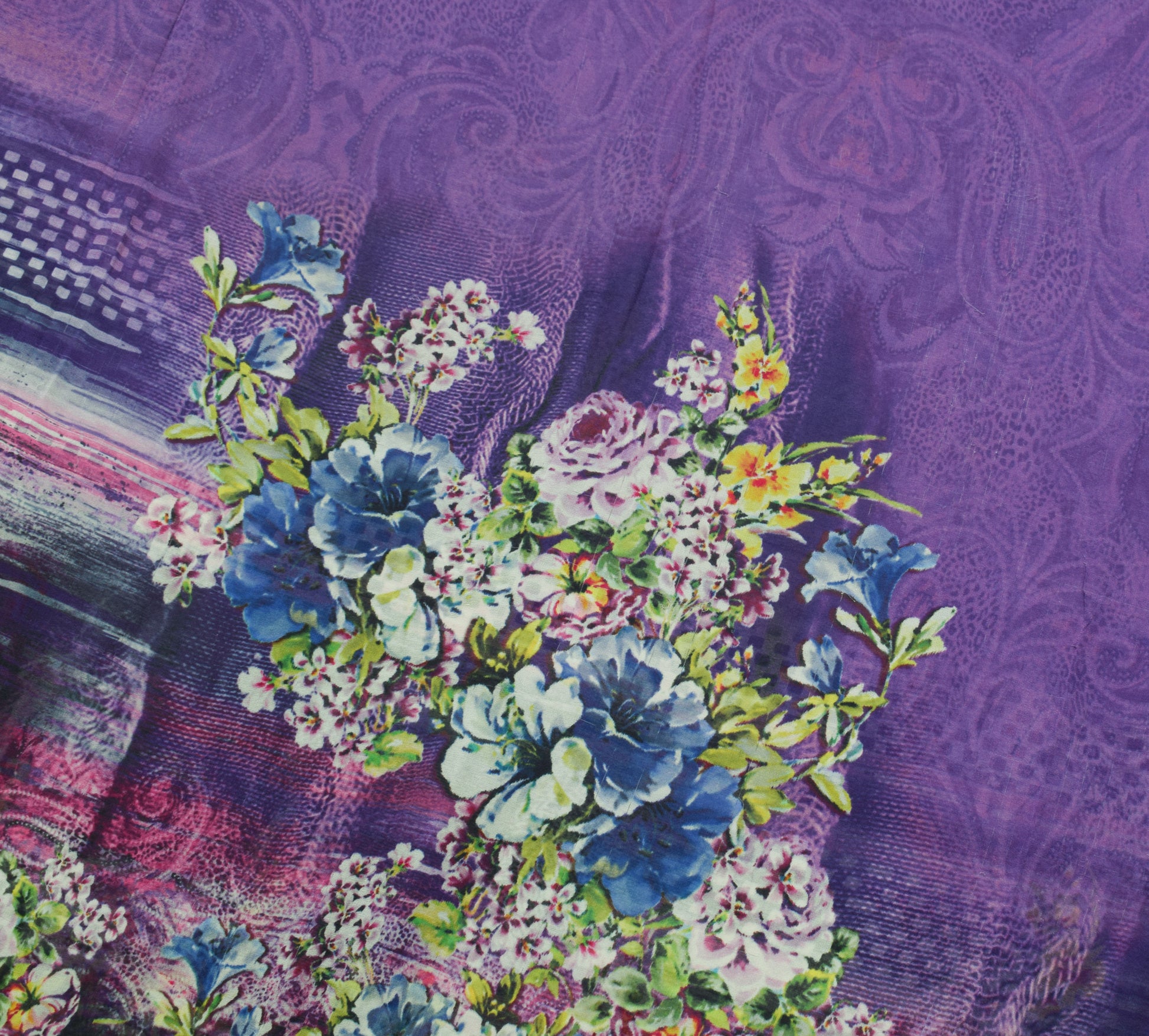 Celebrate traditional artistry with this exquisite Purple 100% Pure Georgette Silk saree, known for its timeless Floral designs and fine Printed work. It is perfect for special occasions, creative repurposing, or as a beautiful heirloom gift. Measuring approximately 192 Inch in length and 41 Inch in width, this sari offers versatile styling options. It is lightweight, weighing just 465 Grams (Actual Product weight), making it easy to drape and carry for long hours. The natural breathability and luxurious drape of 100% pure georgette silk make it a prized choice for those who appreciate fine craftsmanship and vintage fashion.