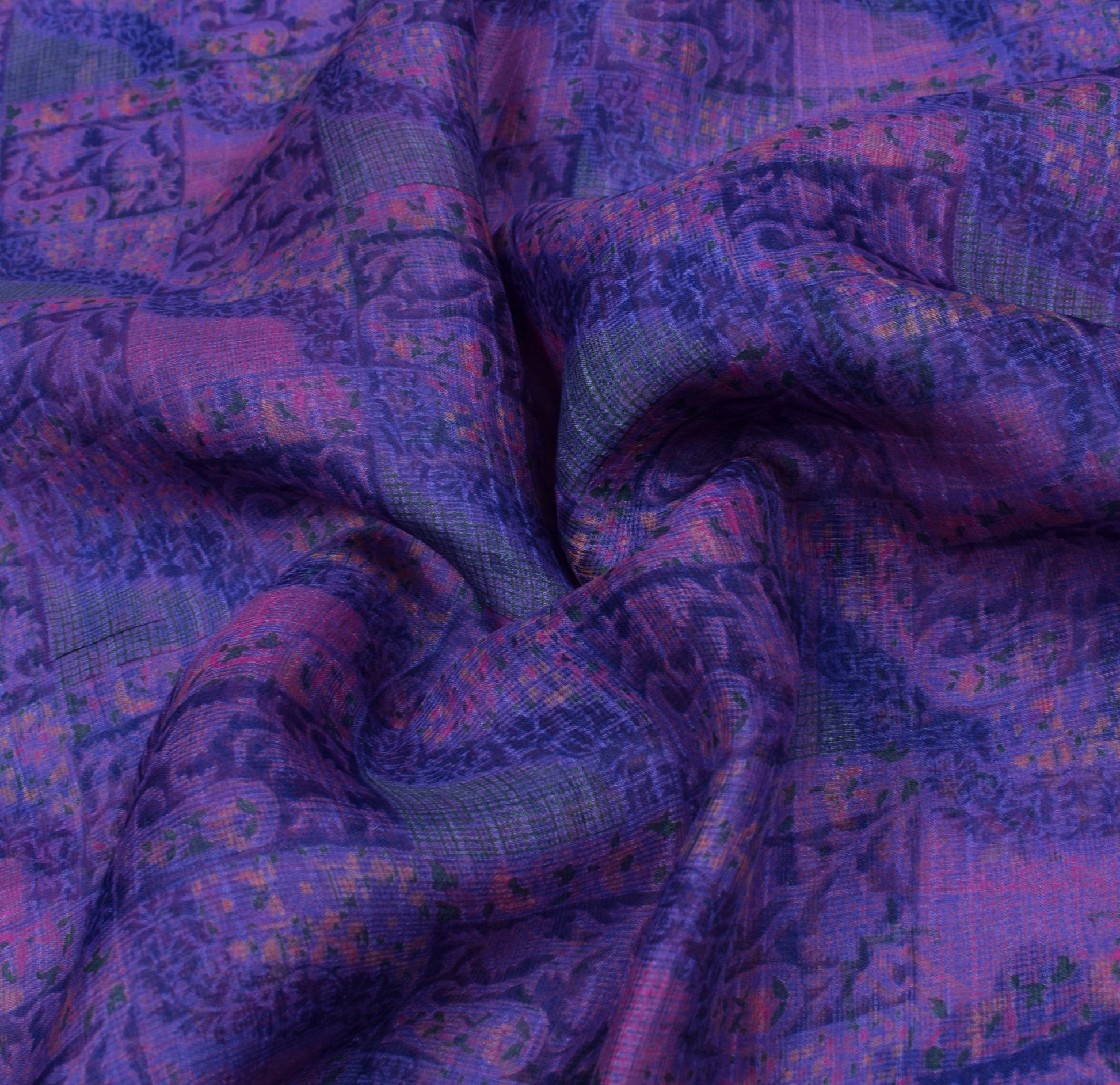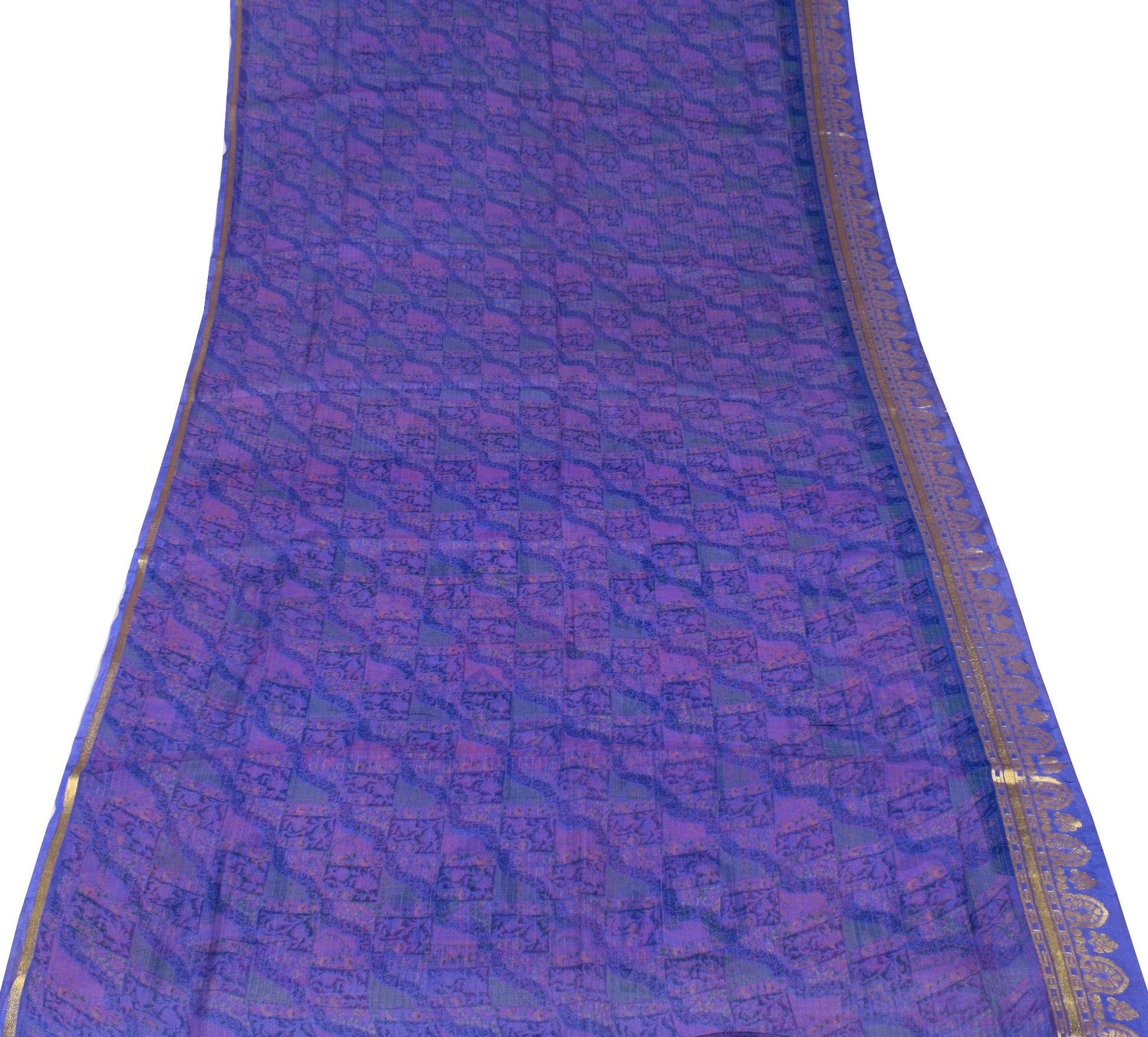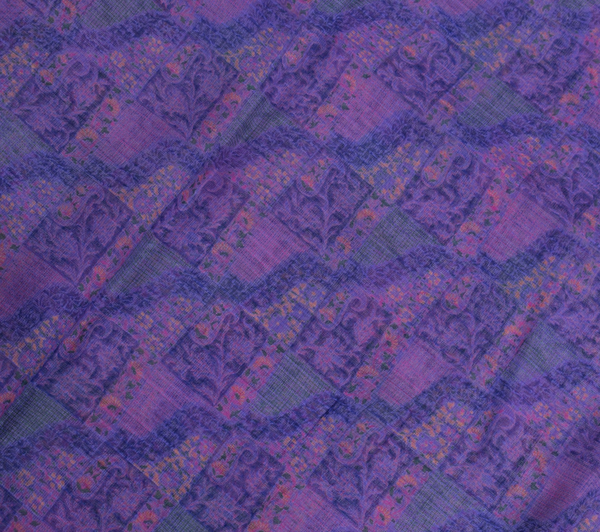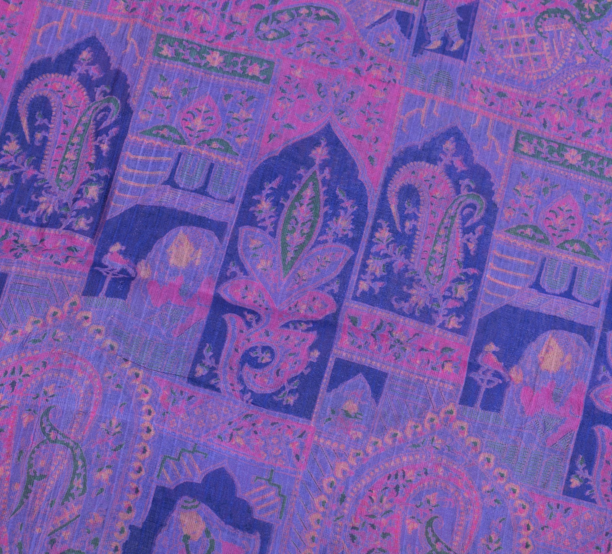 Sushila Vintage Purple Saree 100% Pure Silk Printed Zari Woven Soft Craft Fabric
