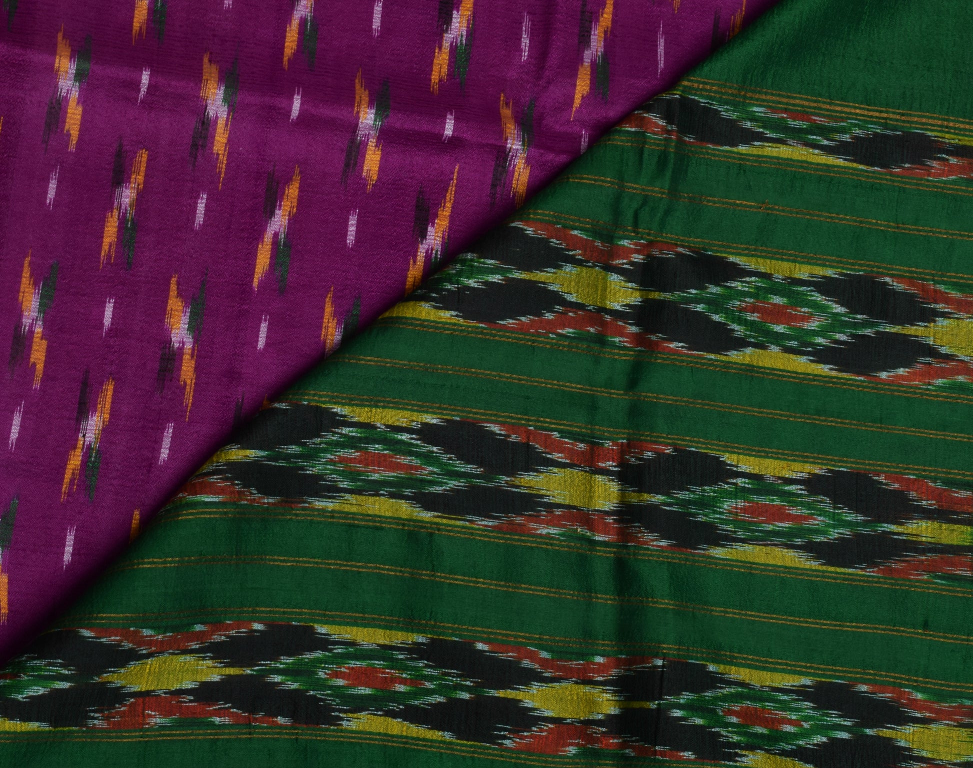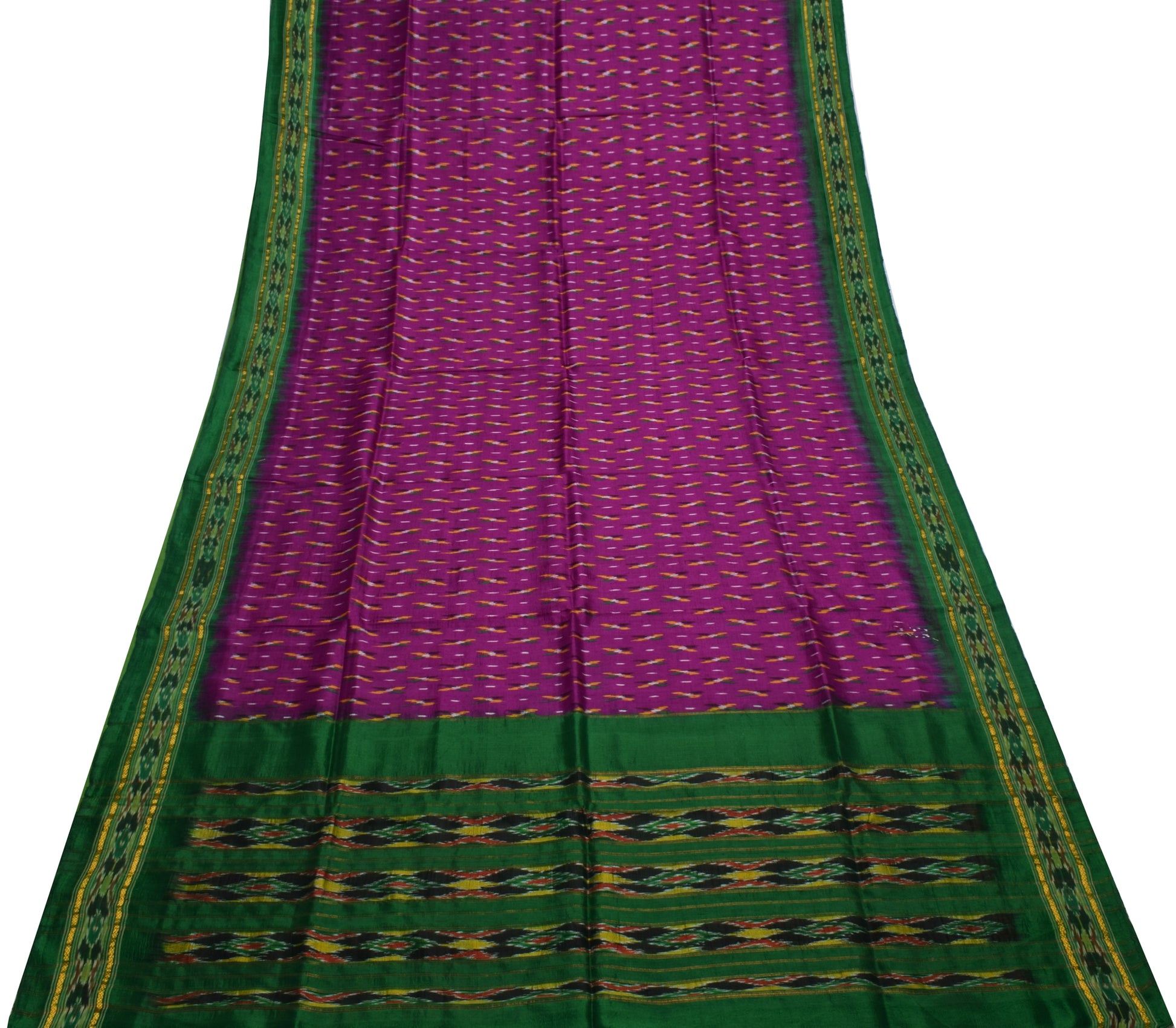 Sushila Vintage Purple Saree Pure Silk Hand Woven Ikat Patola Sari Craft Fabric