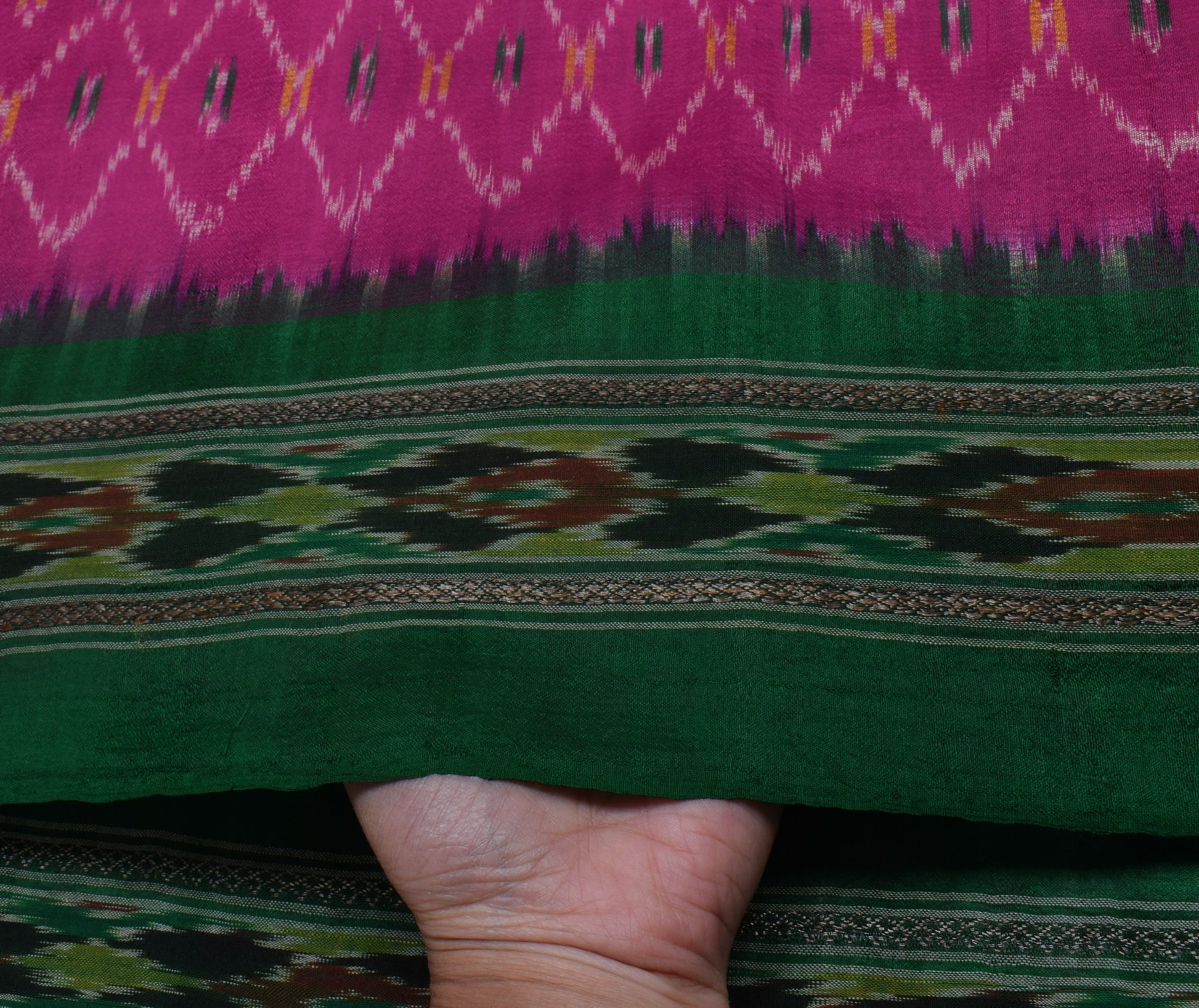 Celebrate the artistry of double Ikat weaving with this dark pink Ikat Patola 100% pure silk saree, showcasing bold as per images motifs and refined woven work. Measuring approximately 184 inch in length and 44 inch in width, this sari provides a generous amount of fabric for versatile styling. It weighs just 300 grams (actual product weight), making it a comfortable choice for long wear. this sari is not pre-finished, with fall is not attached and pico is not done, allowing for complete customization. Whether worn traditionally, transformed into unique dresses, or upcycled into beautiful home décor, this Ikat Patola saree is a versatile addition to your collection.