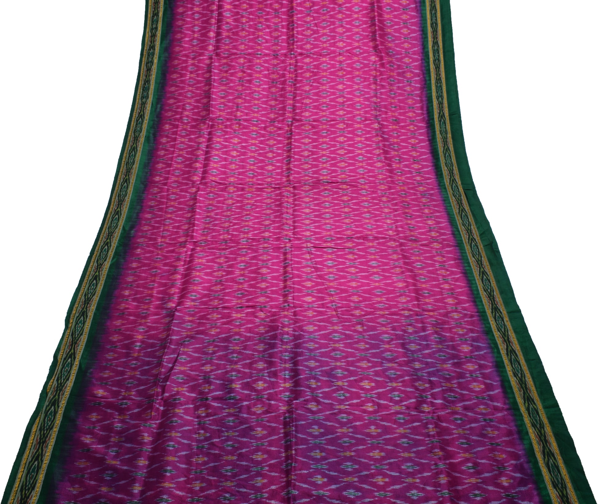 Sushila Vintage Purple Saree Pure Silk Hand Woven Ikat Patola Sari Craft Fabric