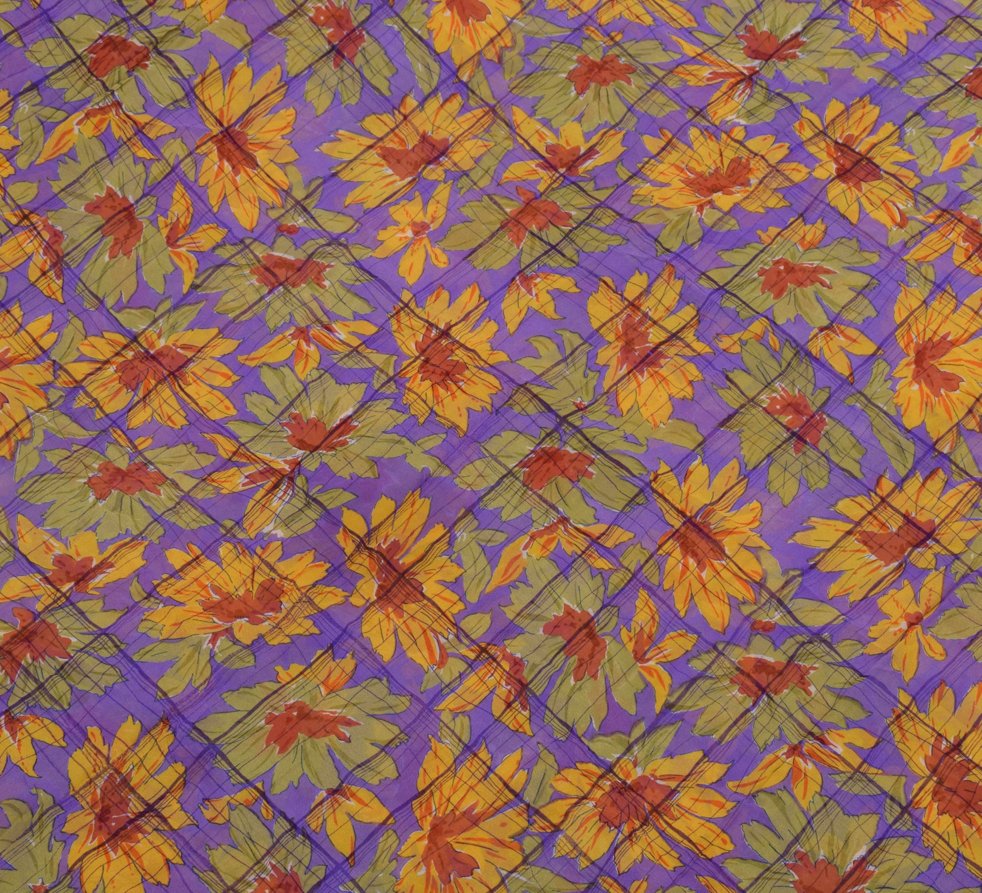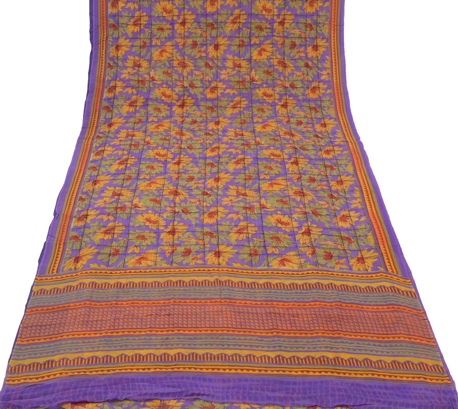 Sushila Vintage Purple Sari 100% Pure Georgette Silk Printed Floral Craft Fabric