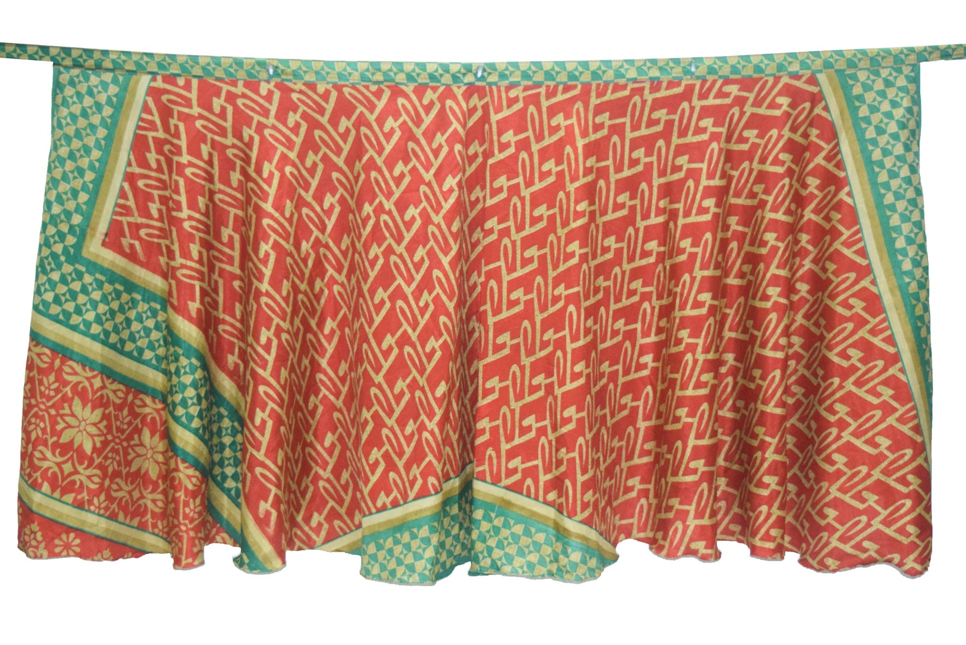 This reversible 2‑Layer Magic Wrap Skirt is crafted from pre‑owned vintage Art or Artificial Silk saree fabric, showcasing a charming purple paisley pattern for a perfect blend of style and sustainability. Ideal for beach outings, casual wear, or versatile styling, these skirts are lightweight, comfortable, and uniquely patterned. The vibrant designs and flowing fabric make them ideal for pairing with shirts, T‑shirts, or Kurtis. These skirts can be styled in multiple ways, offering endless possibilities for fashion enthusiasts. For styling ideas, simply search for "magic wrap skirt tutorial" on YouTube.