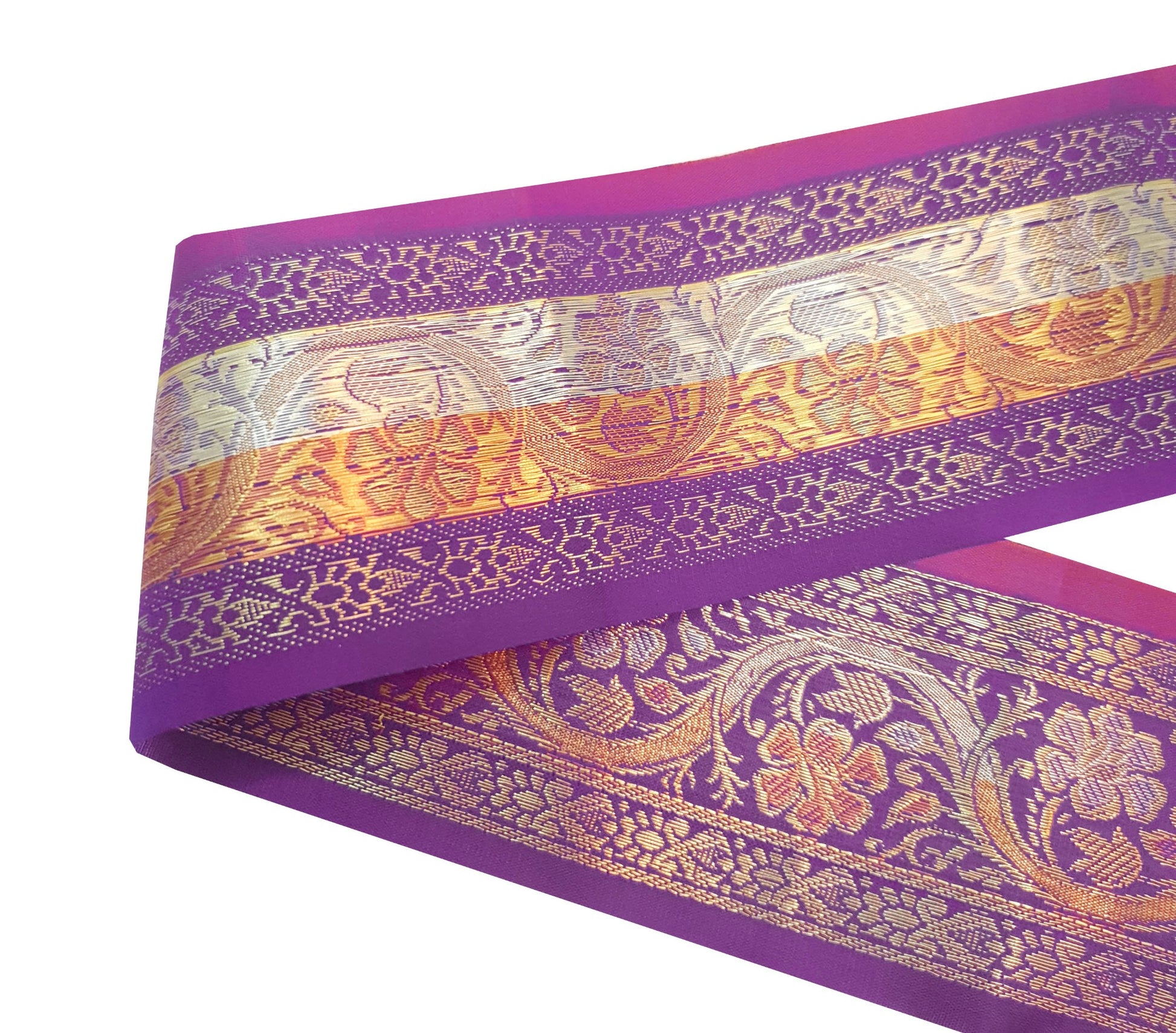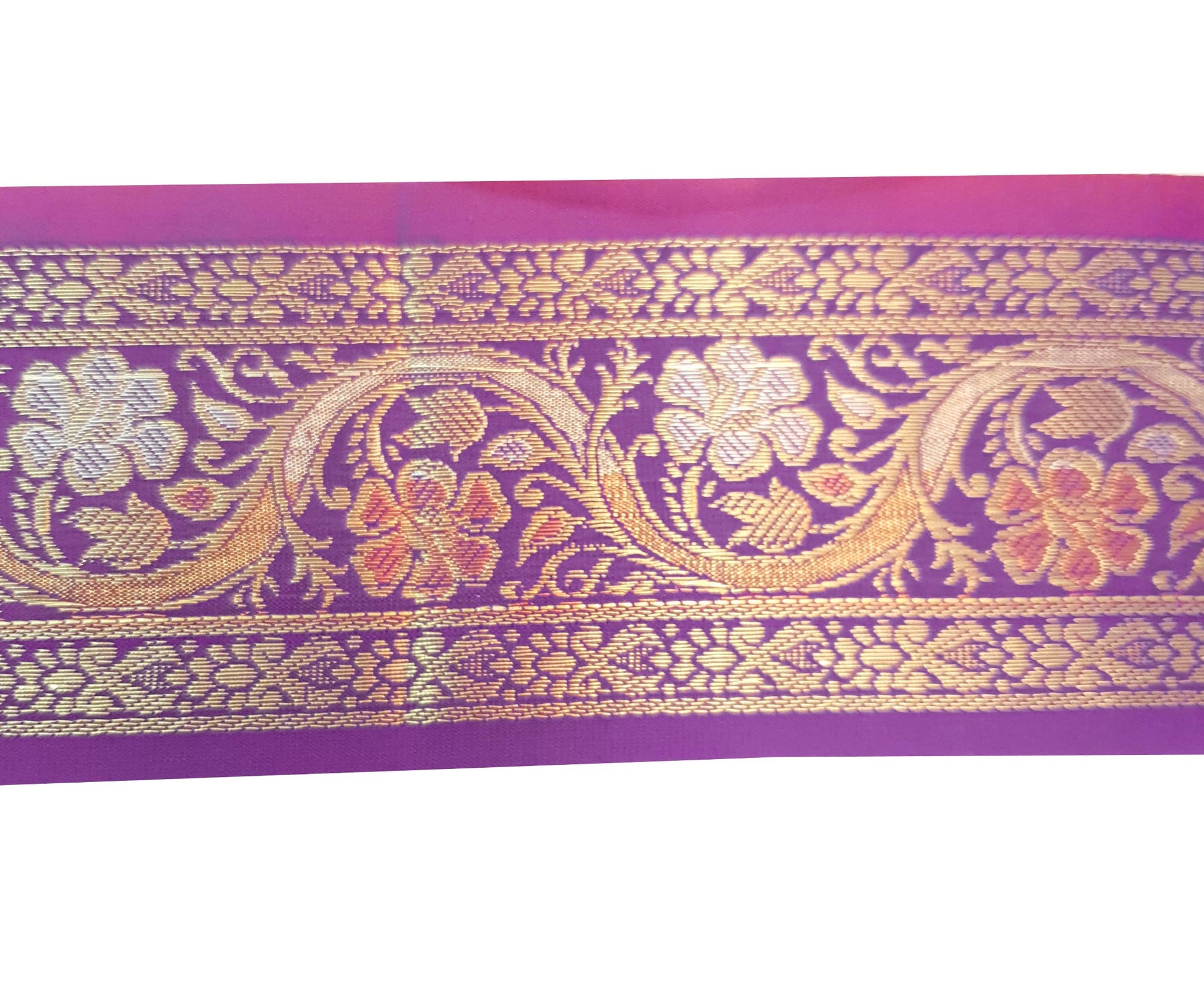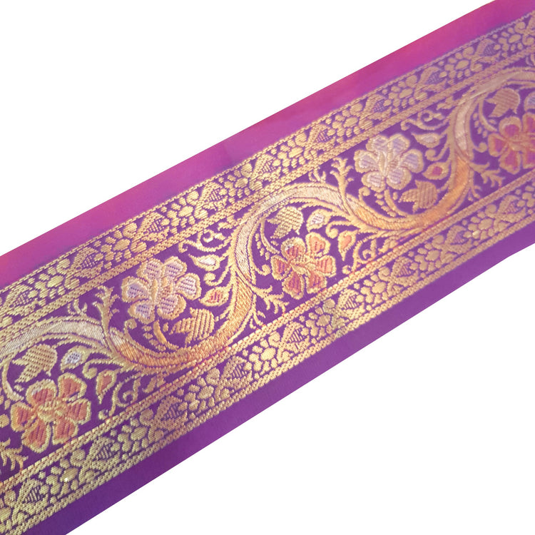 Sushila Vintage Purple Zari Brocade Sari Border Floral Swing Trim 3 Yard Lace