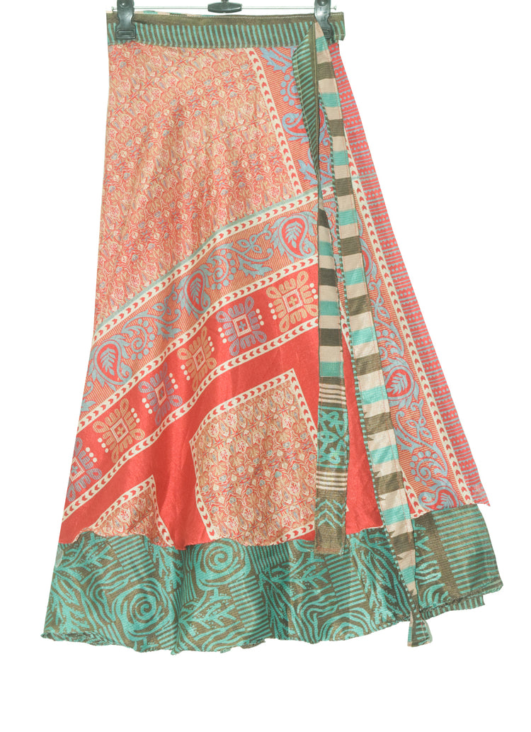 This reversible 2‑Layer Magic Wrap Skirt is crafted from pre‑owned vintage Art or Artificial Silk saree fabric, showcasing a charming red floral pattern for a perfect blend of style and sustainability. Ideal for beach outings, casual wear, or versatile styling, these skirts are lightweight, comfortable, and uniquely patterned. The vibrant designs and flowing fabric make them ideal for pairing with shirts, T‑shirts, or Kurtis. These skirts can be styled in multiple ways, offering endless possibilities for fashion enthusiasts. For styling ideas, simply search for "magic wrap skirt tutorial" on YouTube.