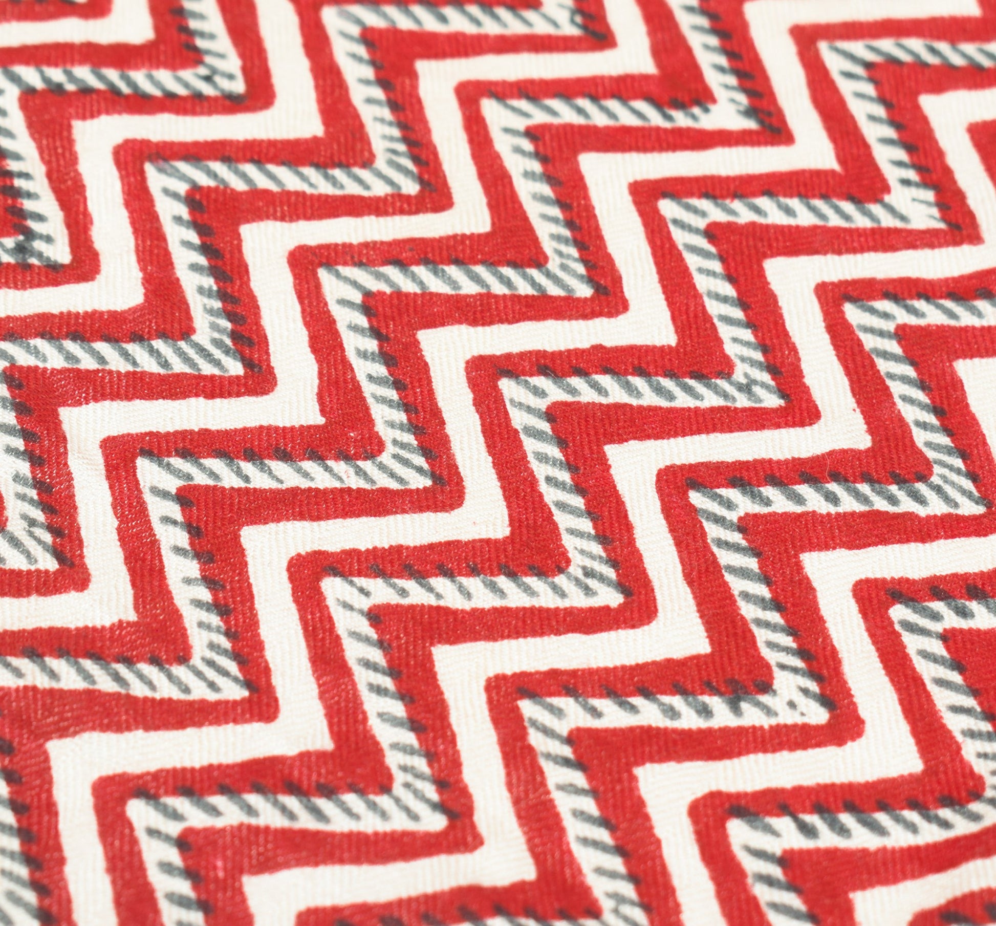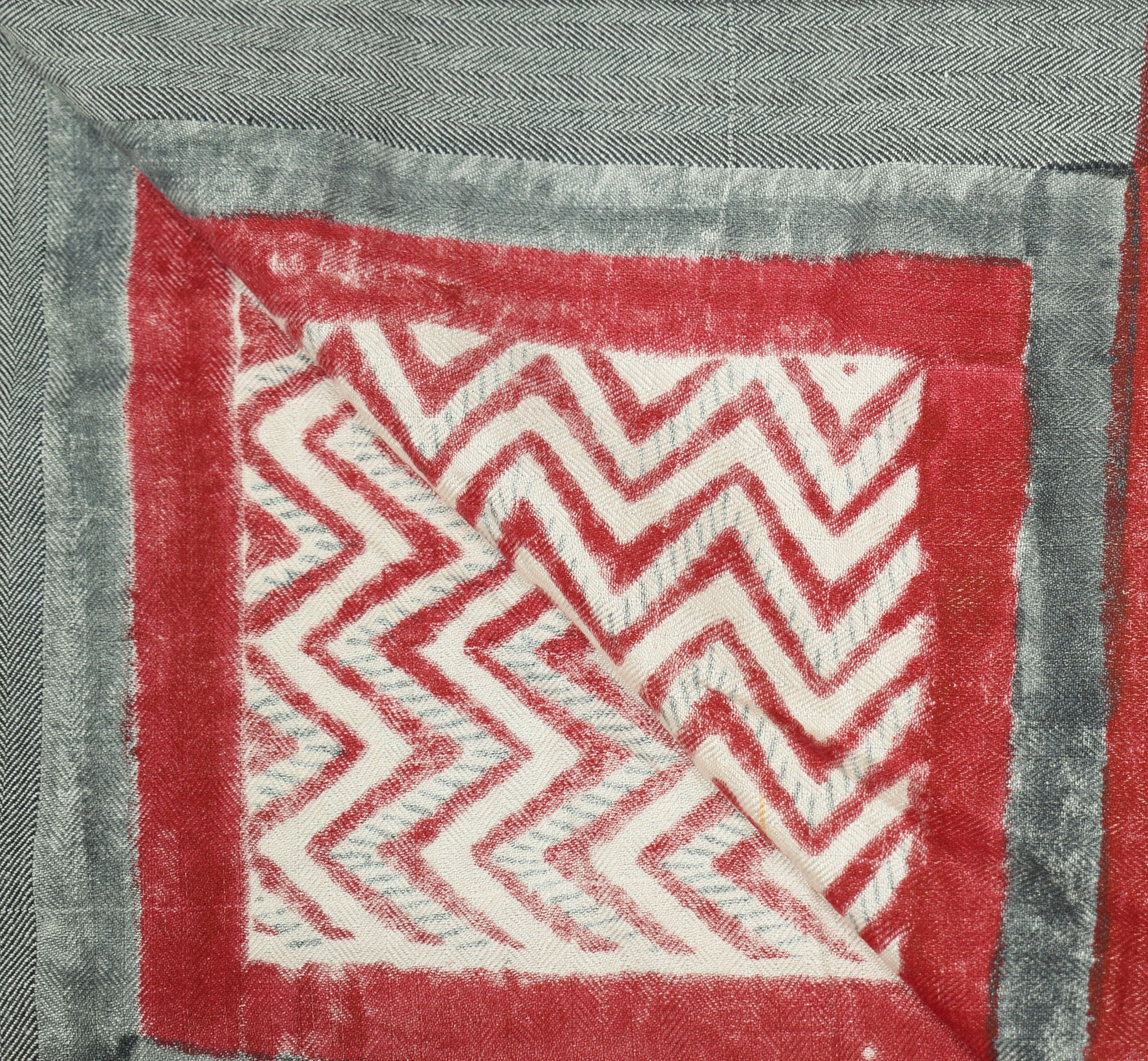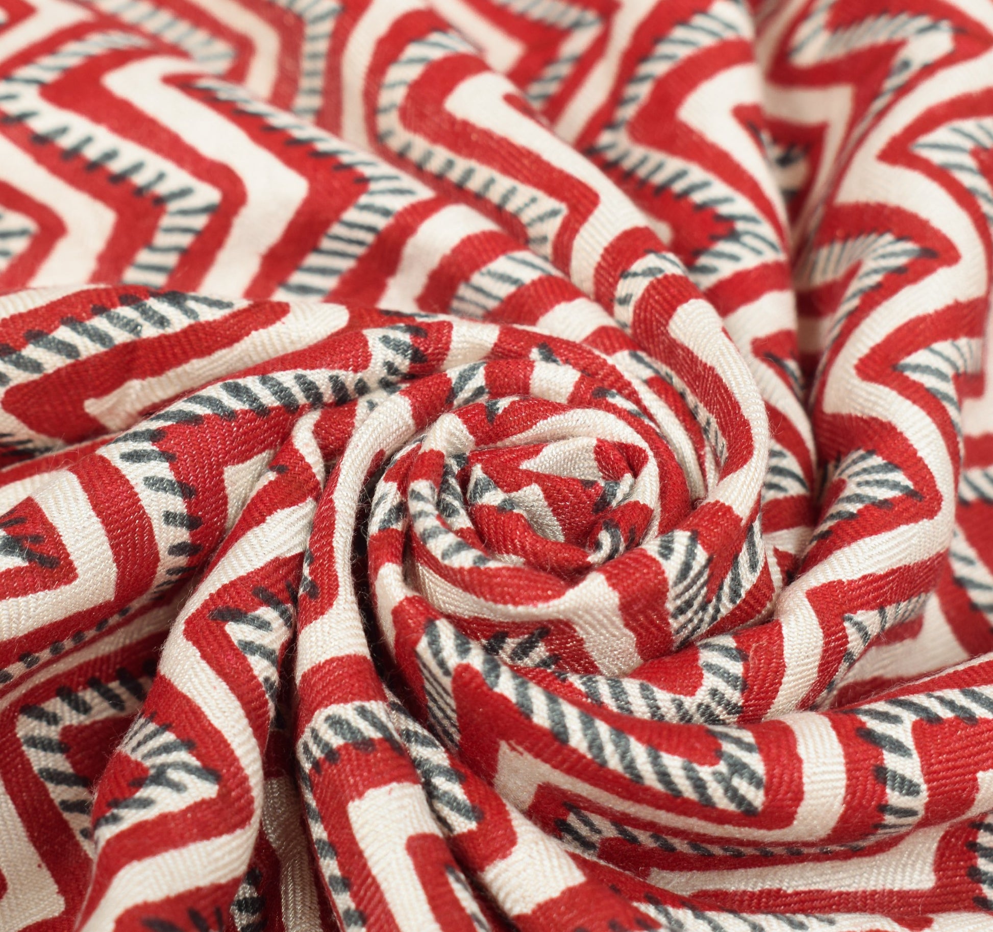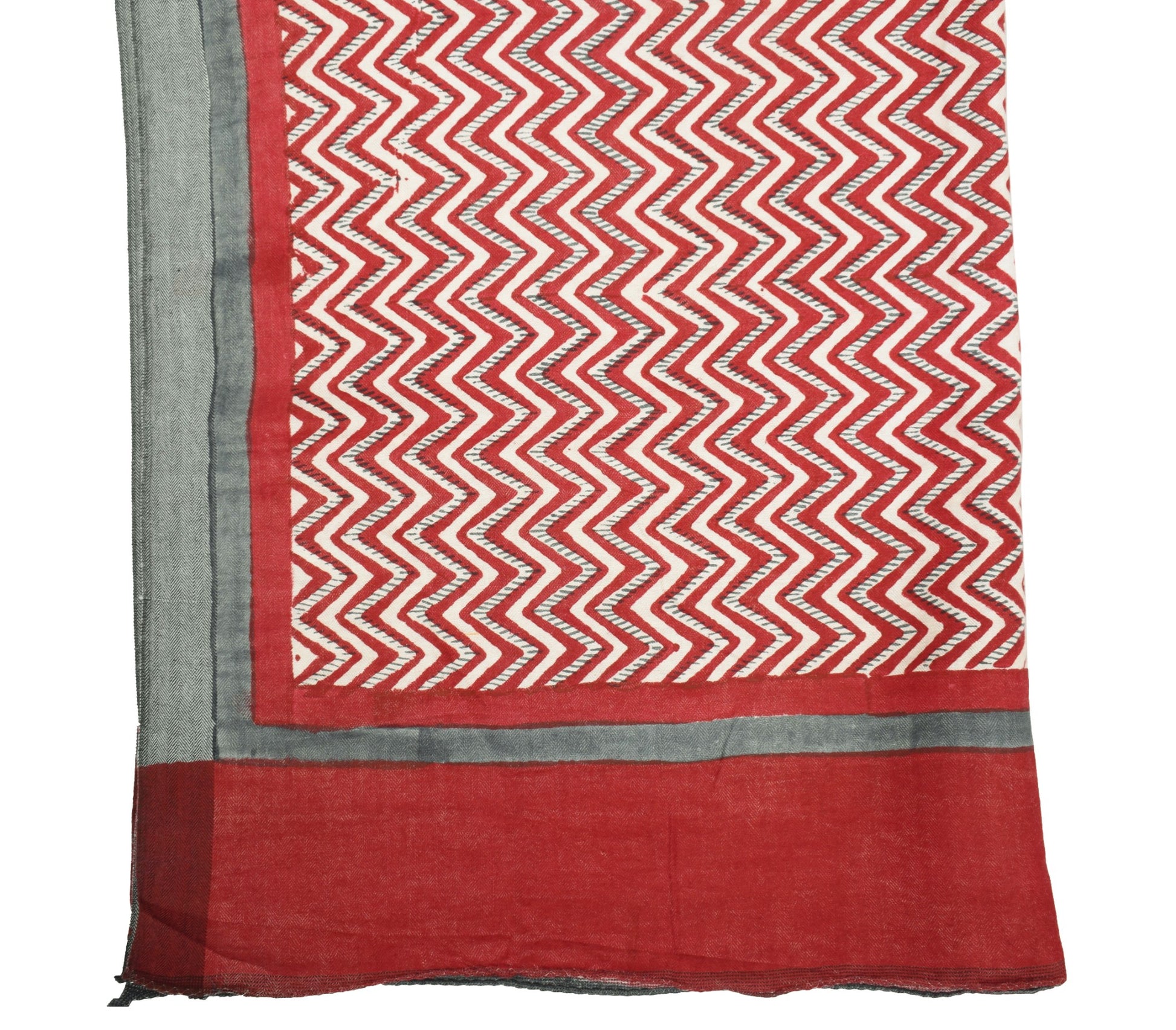 Sushila Vintage Red Cream Dupatta Pure Woolen Hand Printed Zig-Zag Long Stole