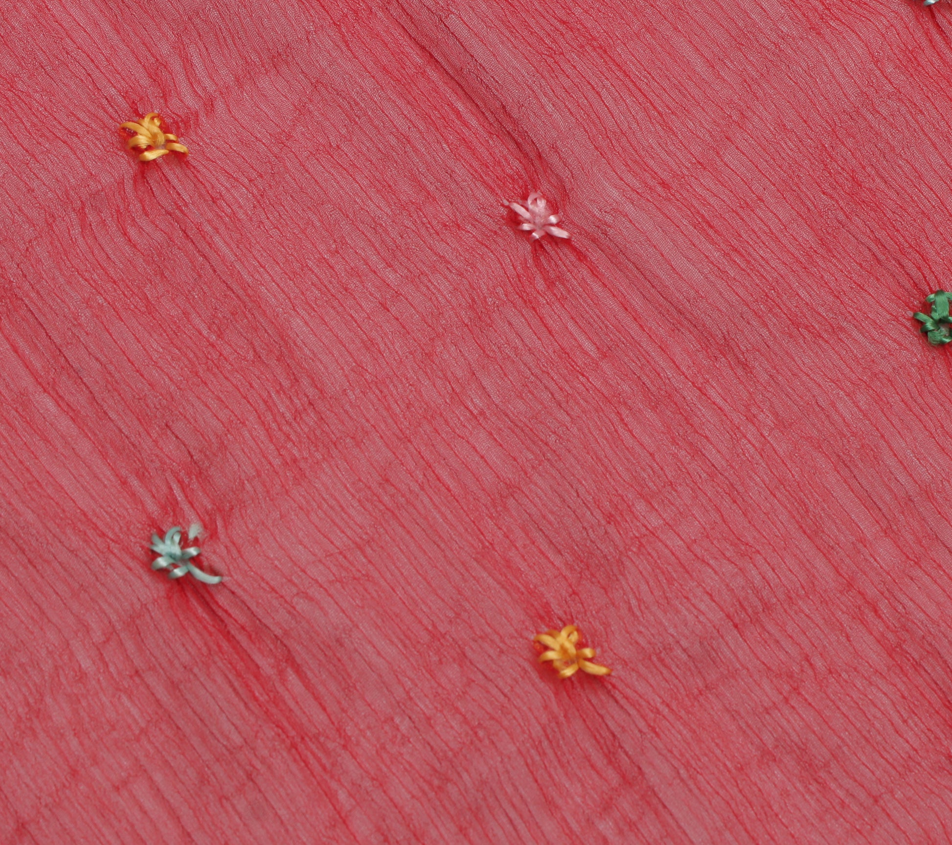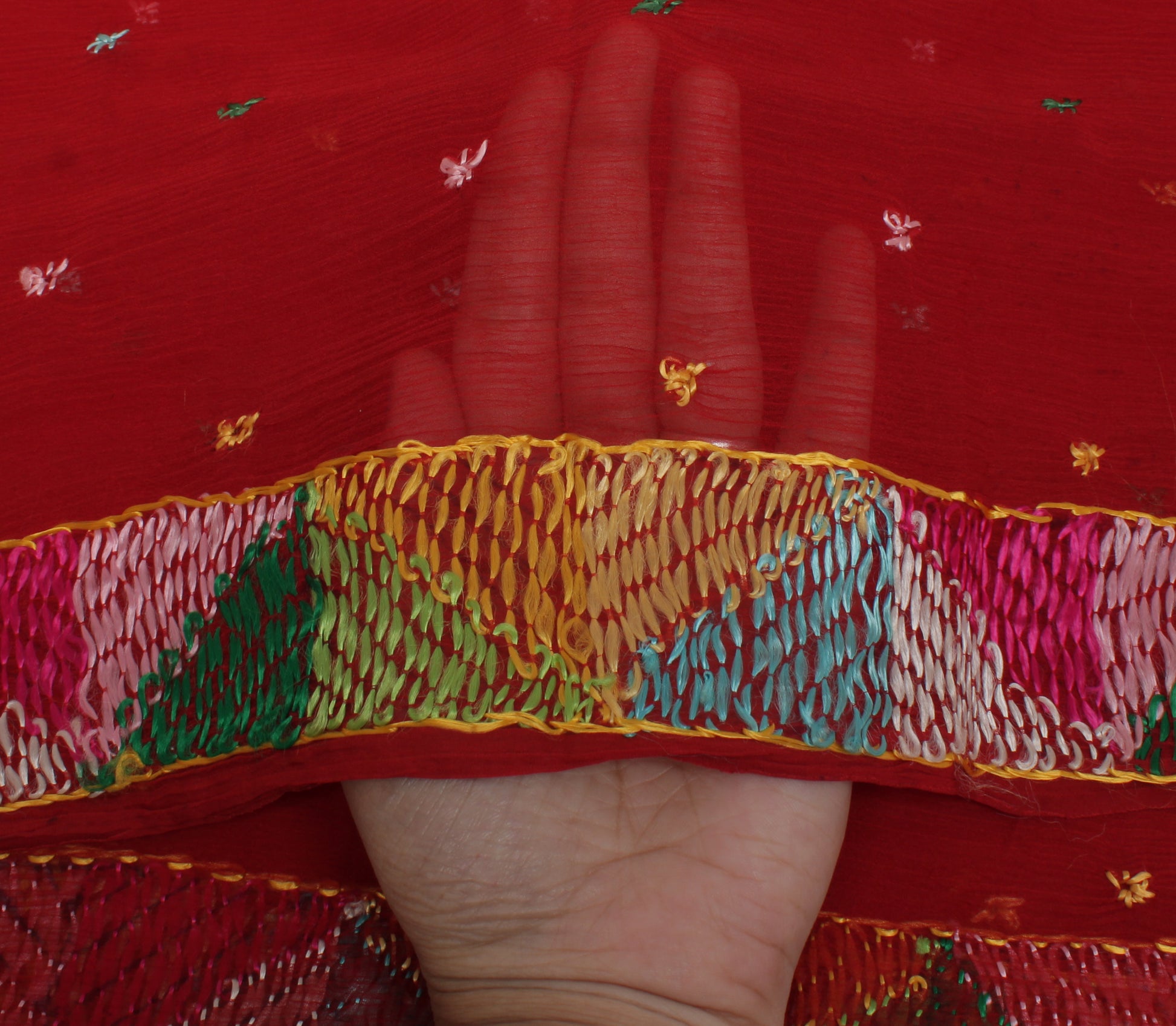 Sushila Vintage Red Dupatta Blend Chiffon Silk Hand Embroidered Long Stole Veil