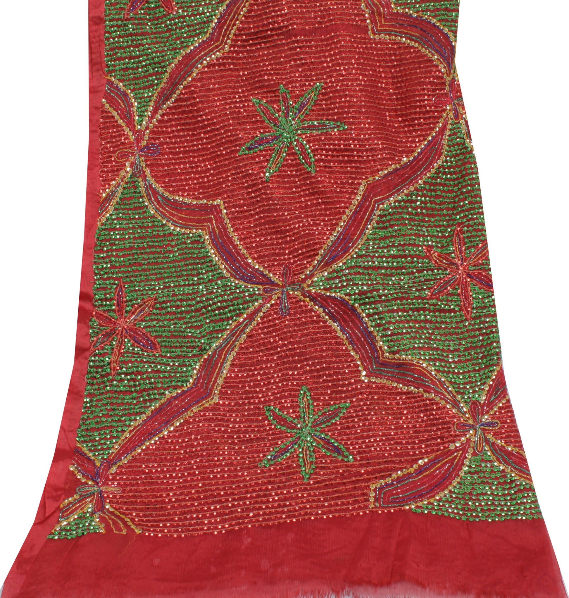 Sushila Vintage Red Dupatta Blend Chiffon Silk Sequins Embroidered Long Stole