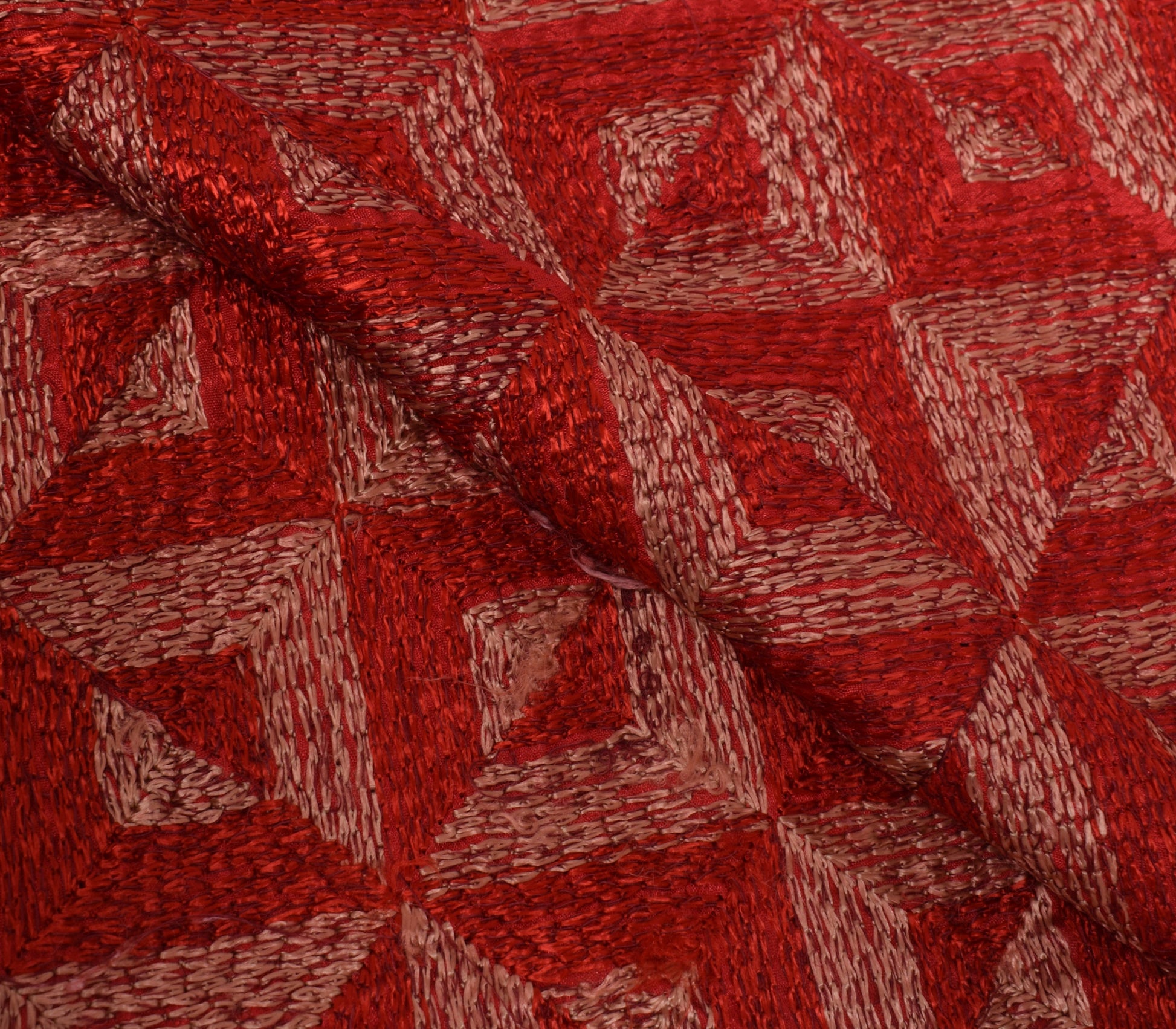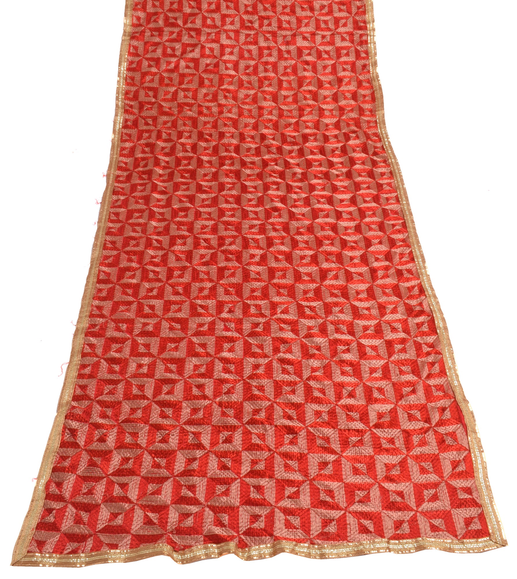 Sushila Vintage Red Dupatta Blend Silk Phulkari Embroidered Long Stole Scarves