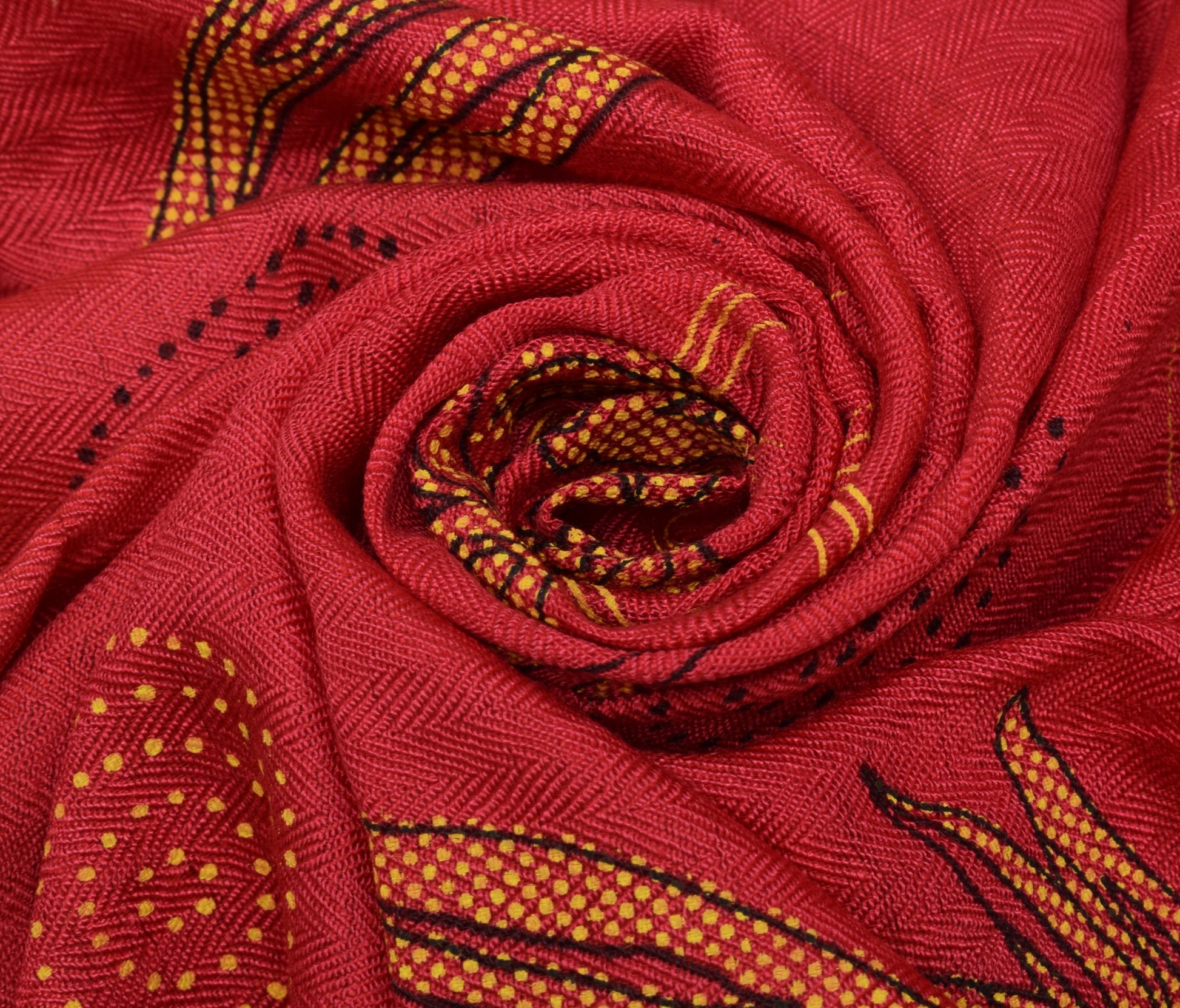 Sushila Vintage Red Dupatta Blend Woolen Printed & Woven Long Stole Hijab Veil