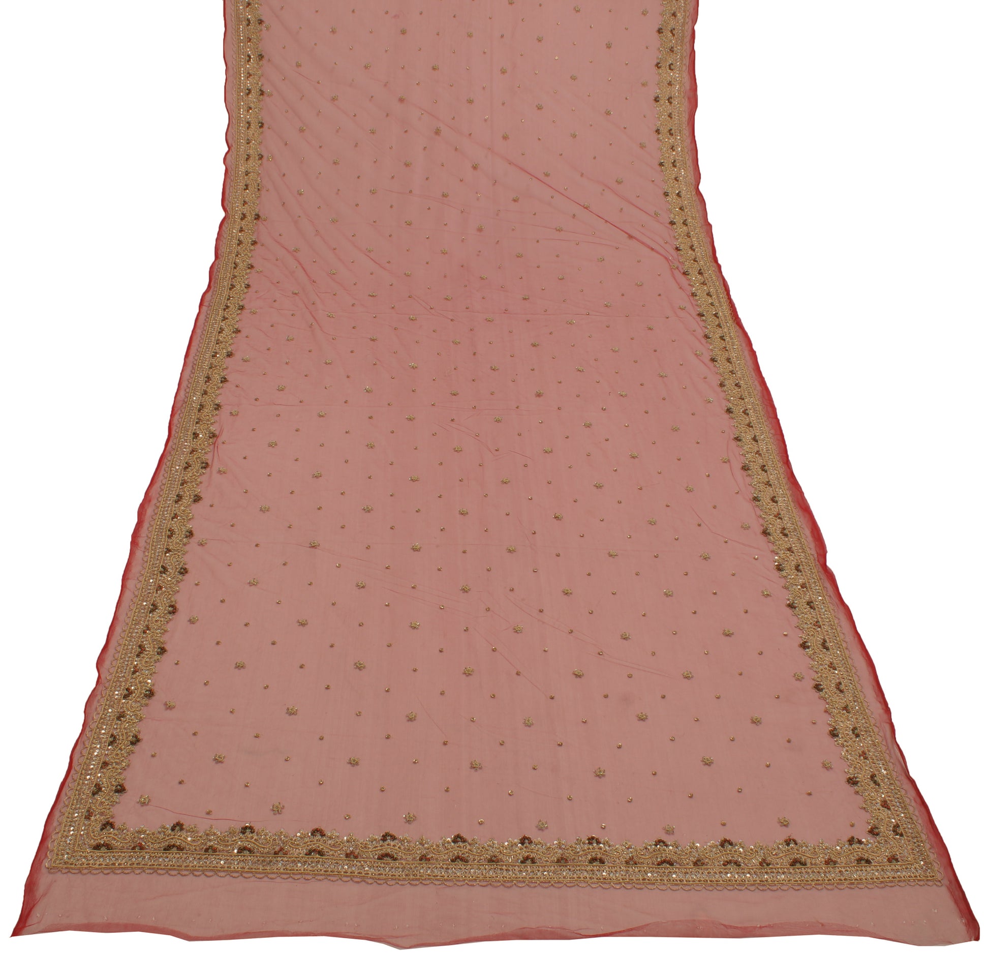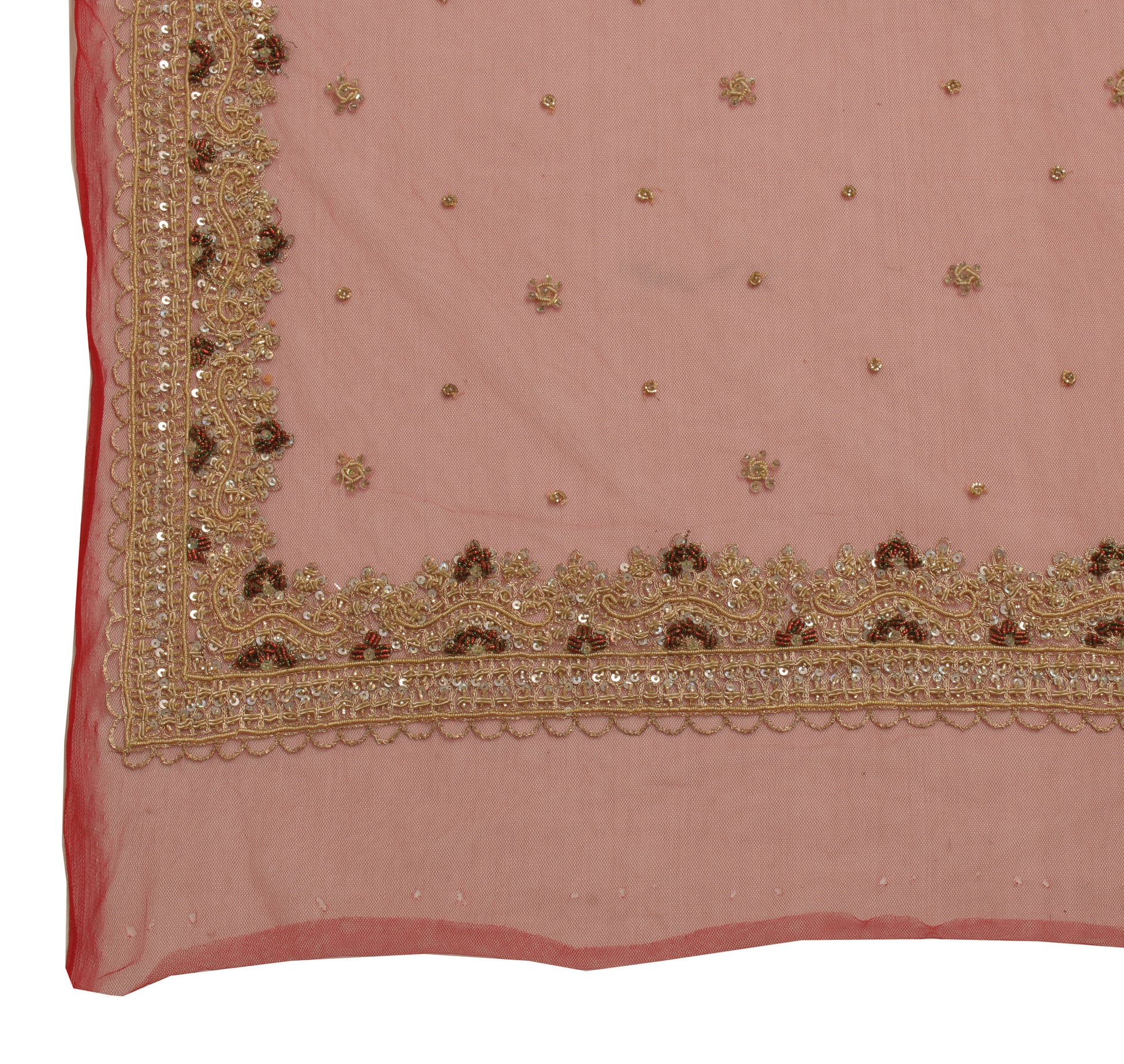 Sushila Vintage Red Dupatta Net Mesh Hand Beaded Zardozi Long Stole Wrap Scarves