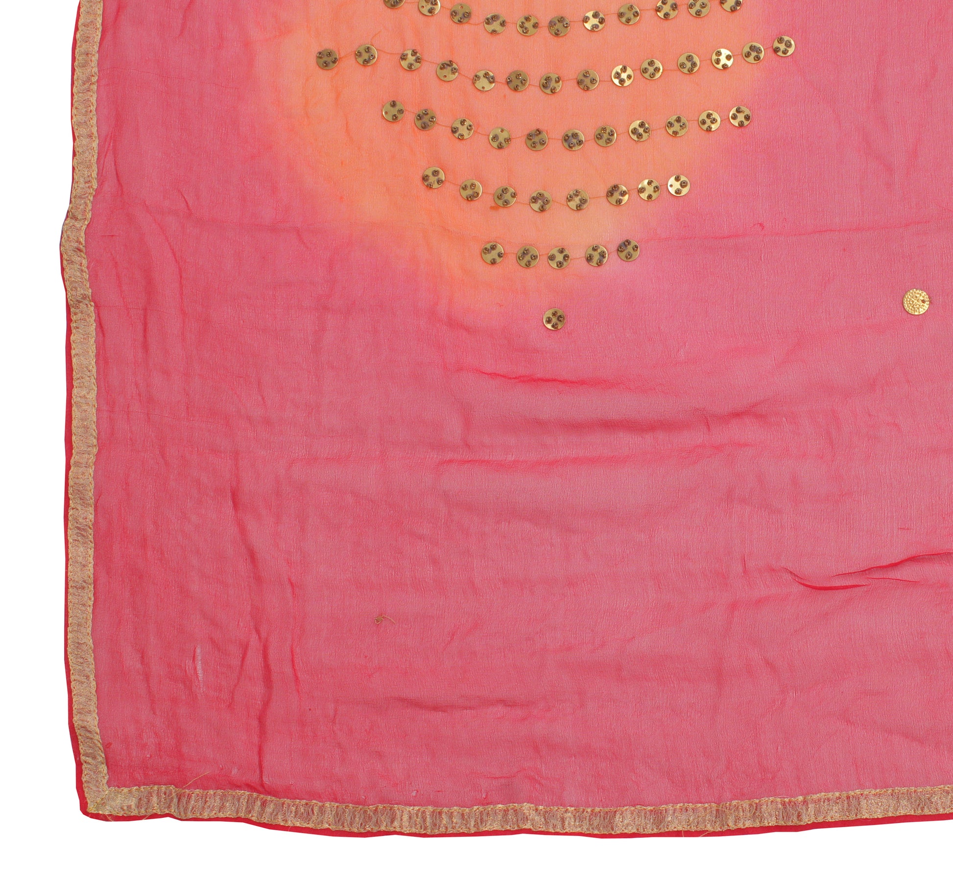 Sushila Vintage Red Dupatta Pure Georgette Hand Beaded Long Stole Scarves Veil