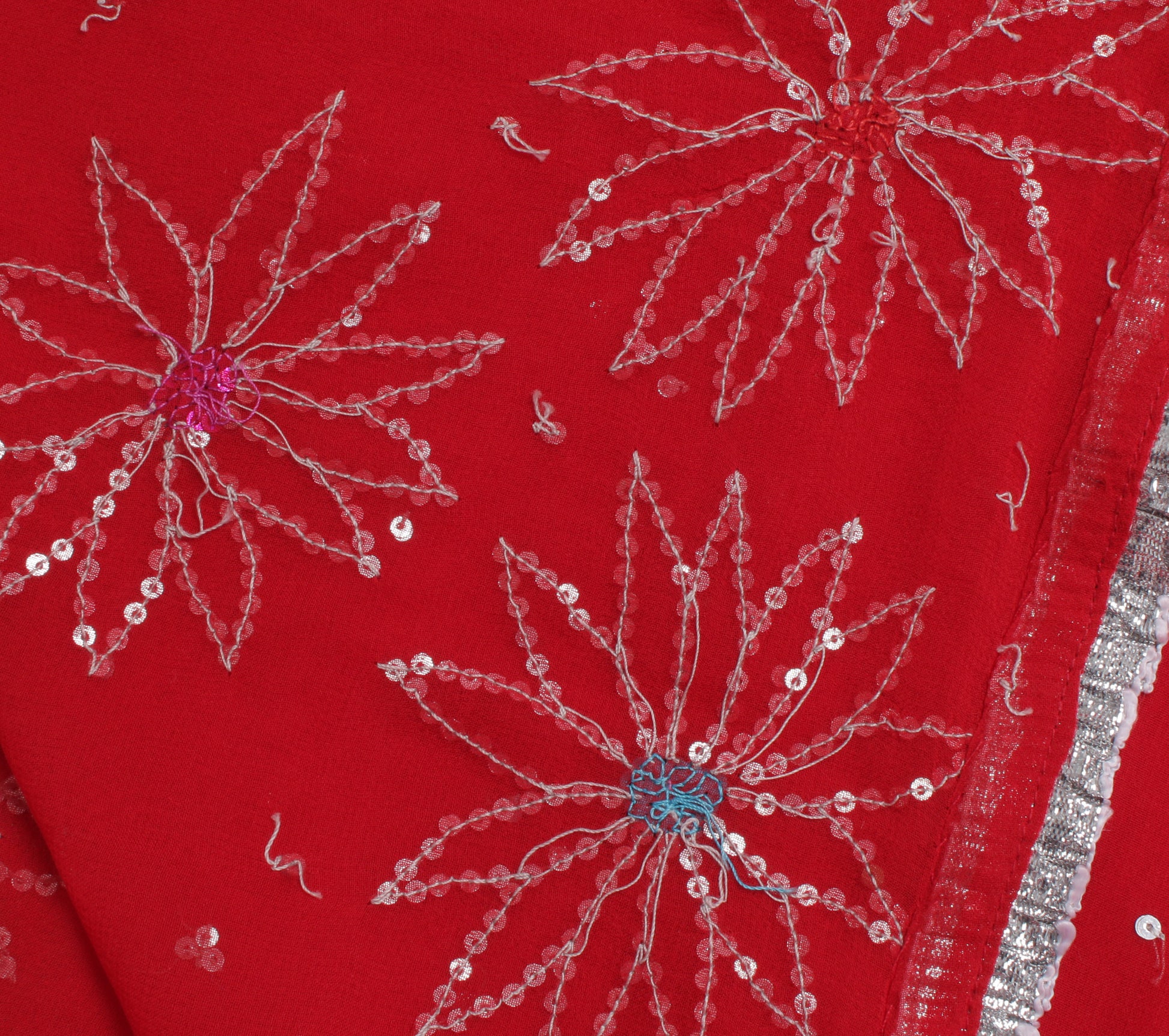 Step into a world of elegance with this richly textured Red Floral Dupatta, Scarf, Indian Long Stole, Veil, or Hijab, perfect for those who appreciate fine craftsmanship. Made from premium Pure Georgette Silk, this piece features intricate Sequins Embroidered work, adding a touch of traditional charm to any outfit. The Red base beautifully complements the delicate Floral detailing, creating a truly timeless accessory.