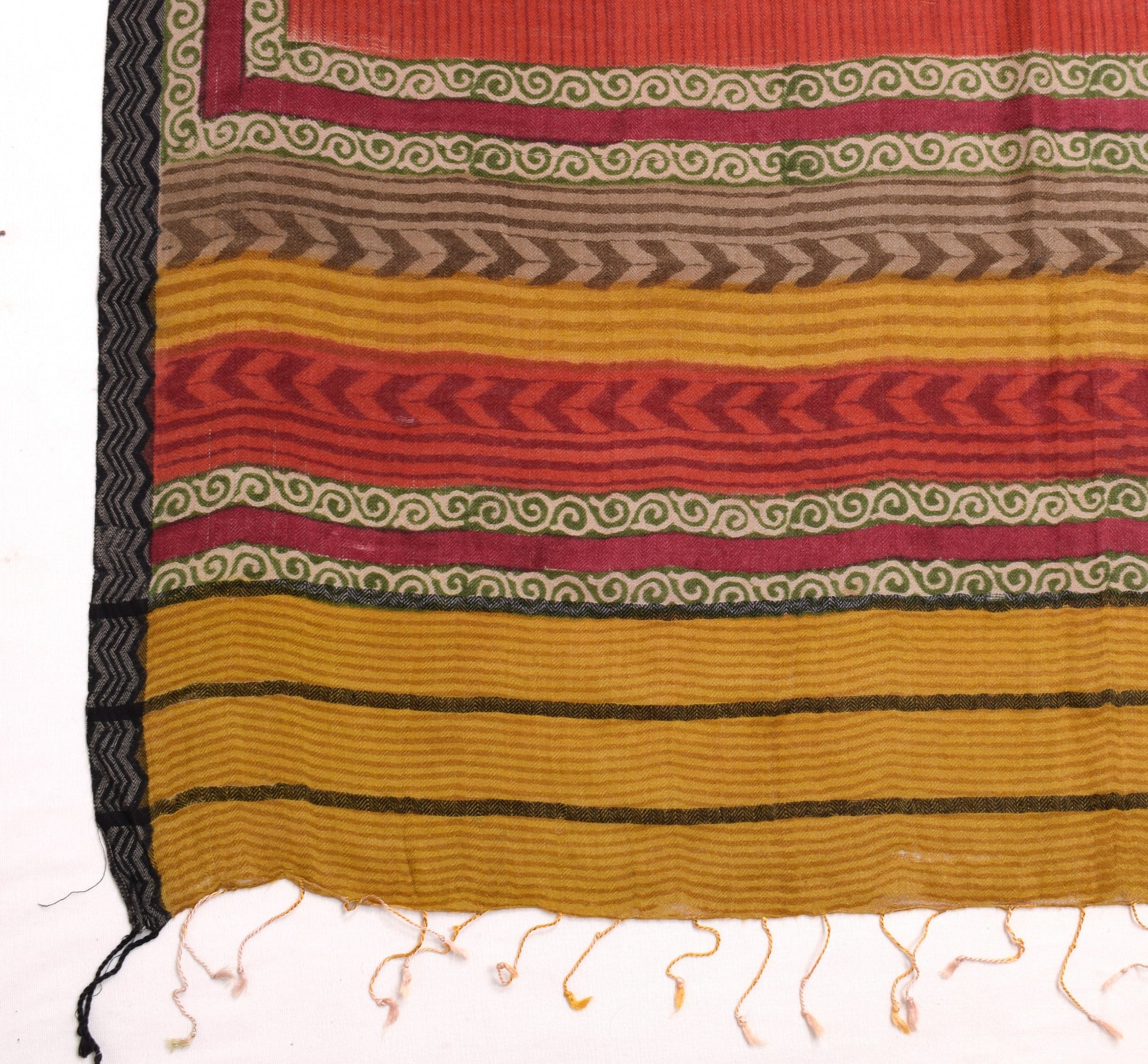 Make a statement with this beautifully woven Red woolen dupatta, perfect as a Scarf, Indian Long Stole, Veil, or Hijab for any occasion. Made from high-quality 100% Pure Woolen, this piece features intricate Hand Block Printed & Woven work, making it perfect for both special occasions and everyday wear. The Red base beautifully complements the delicate Stripes detailing, adding a touch of traditional charm to any outfit.