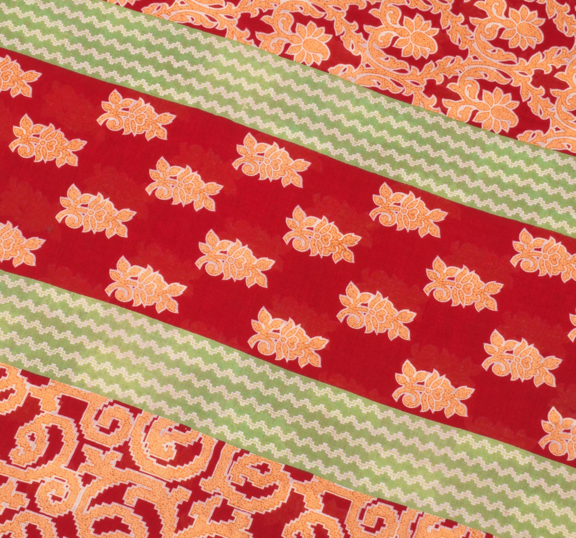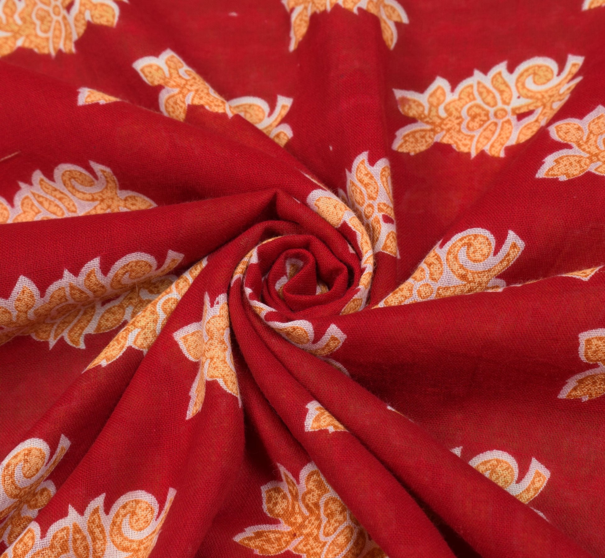 Sushila Vintage Red Floral Saree 100% Pure Cotton Printed Soft Craft Fabric