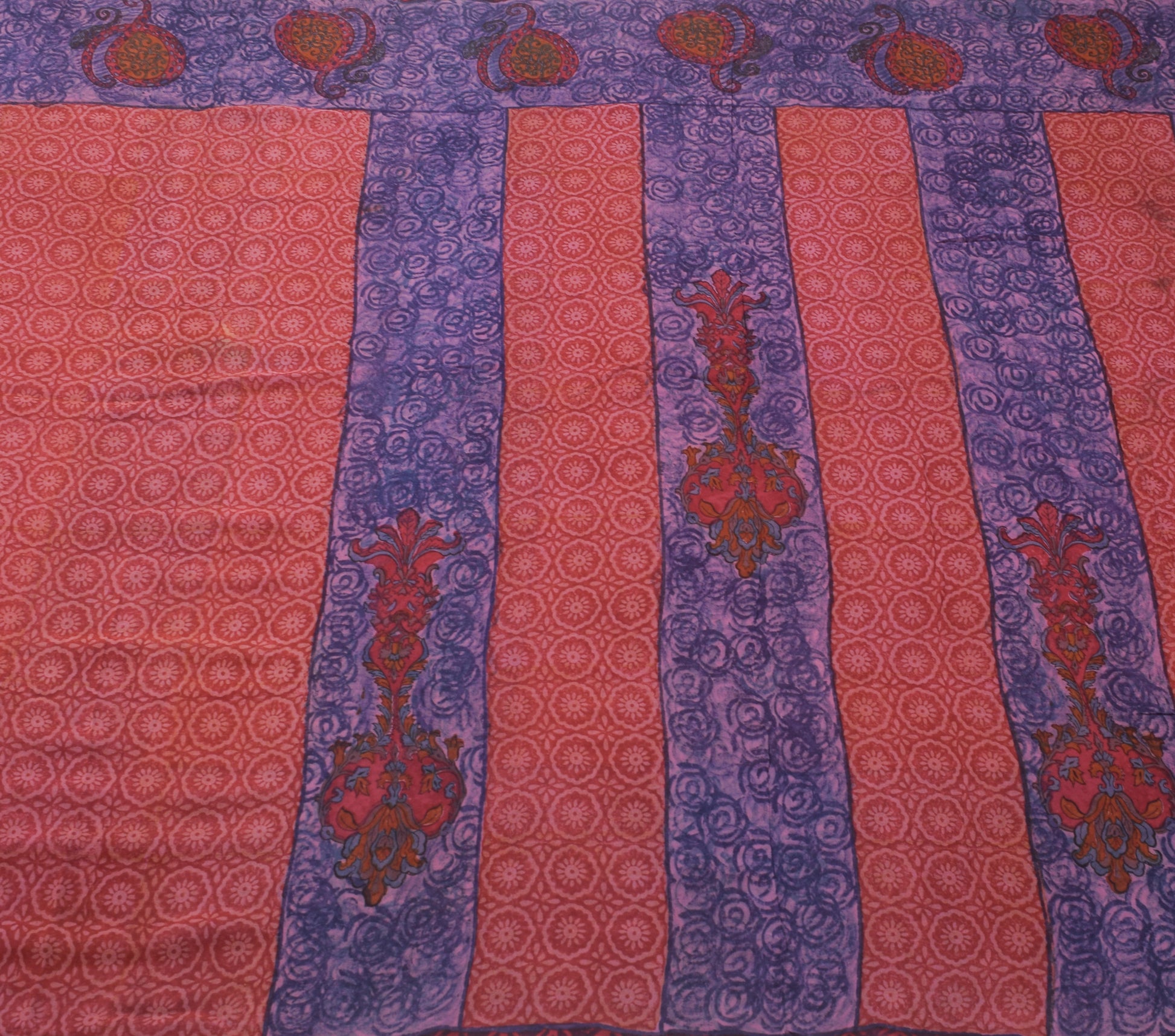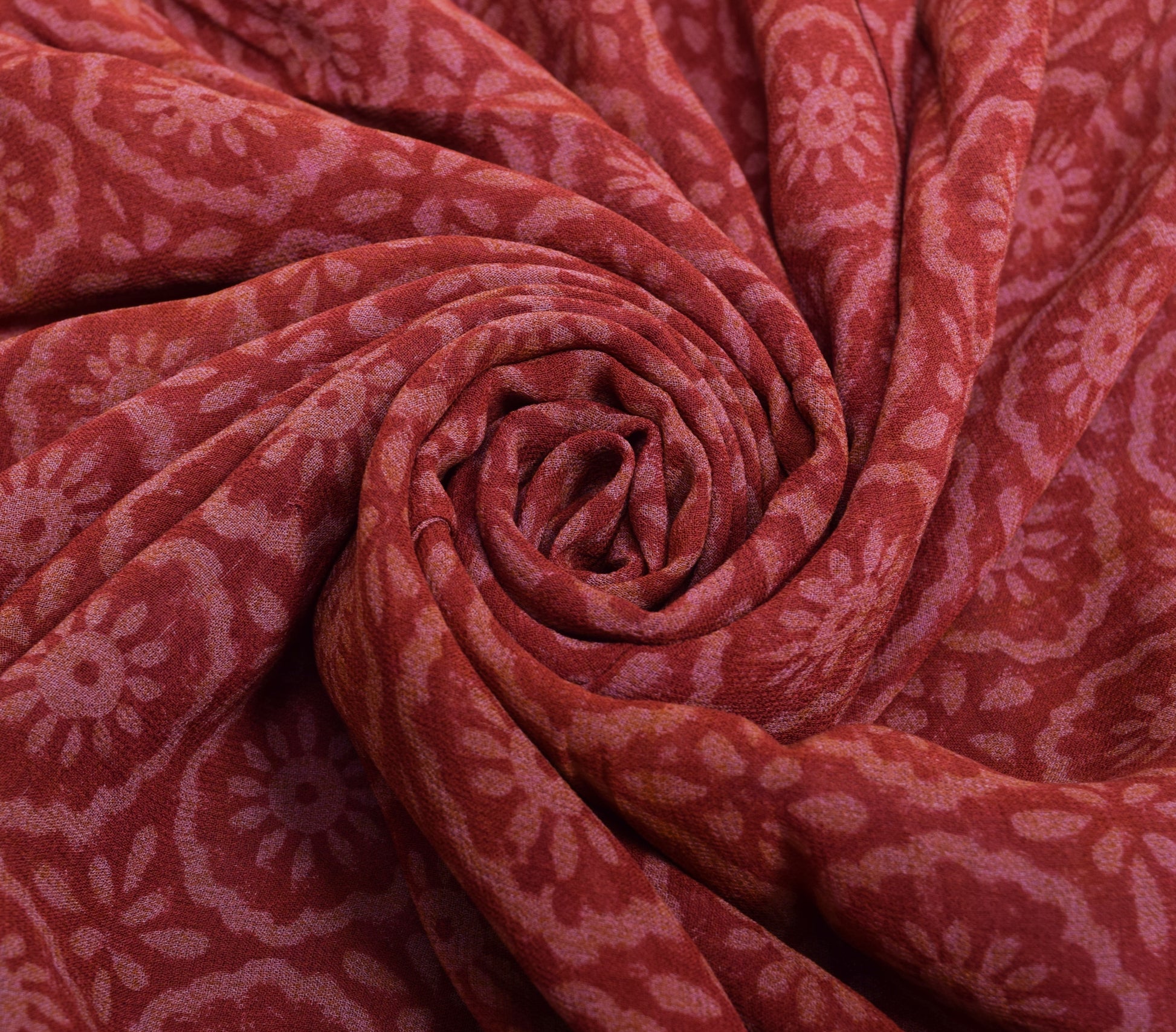 Sushila Vintage Red Floral Saree 100% Pure Georgette Silk Printed Craft Fabric